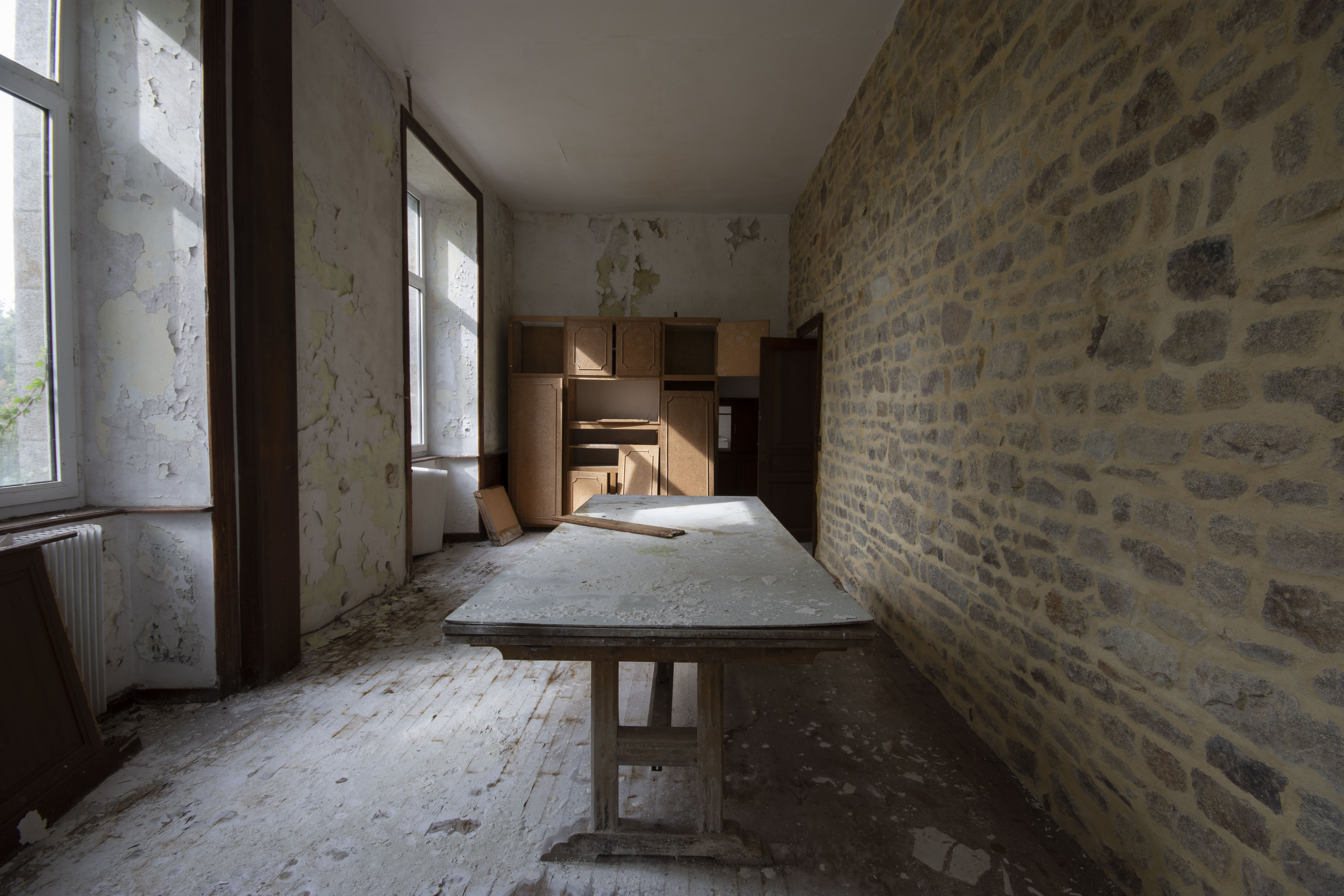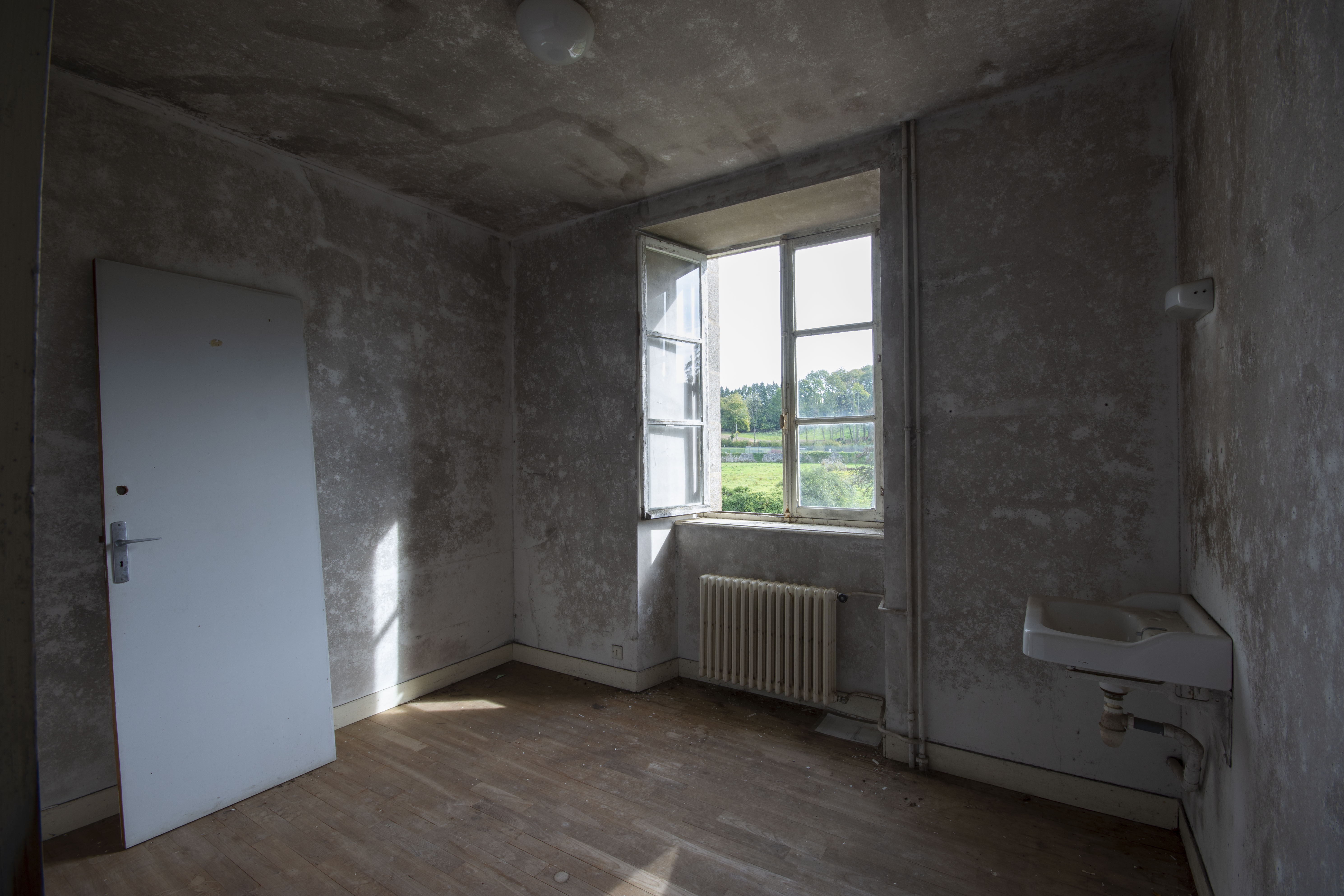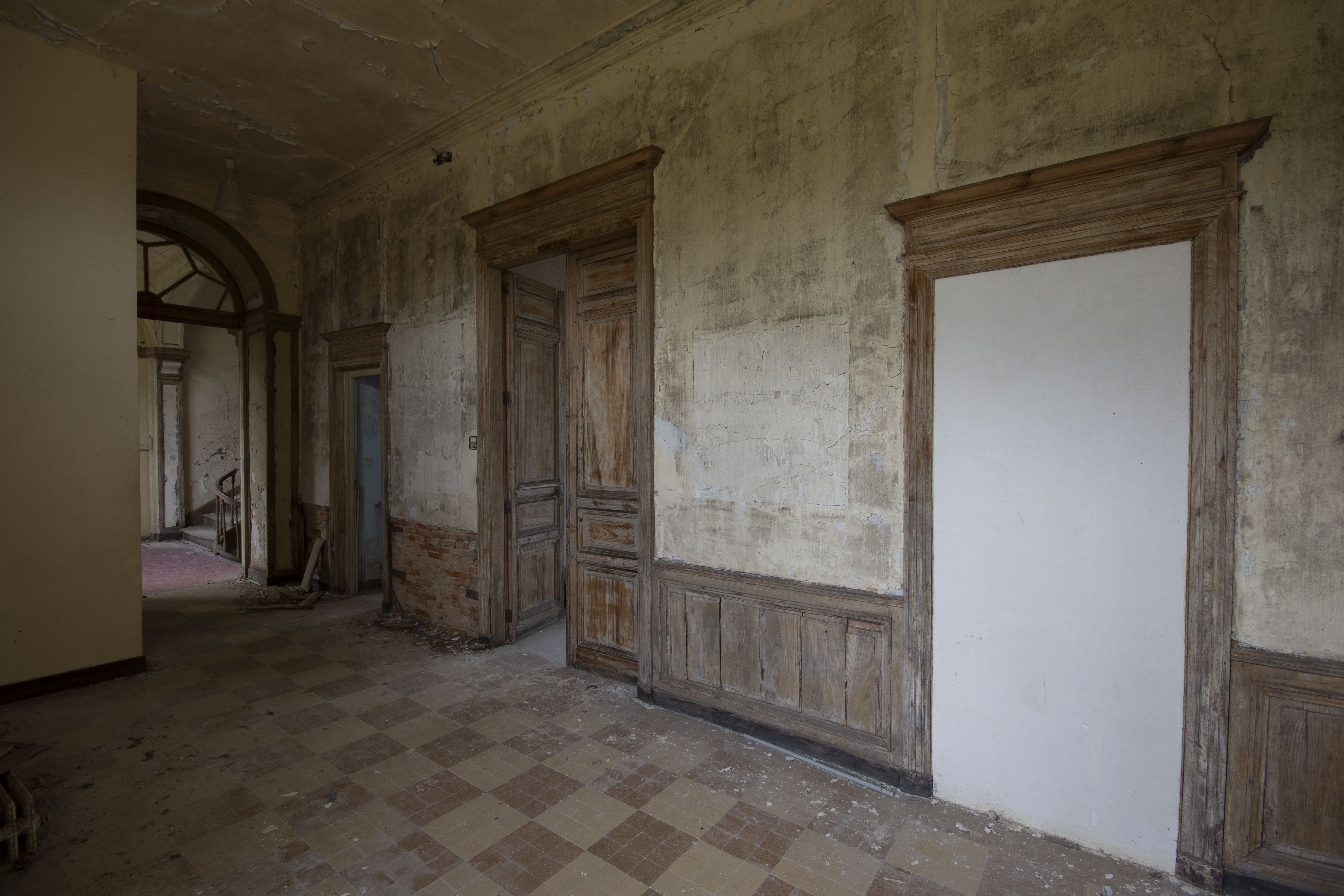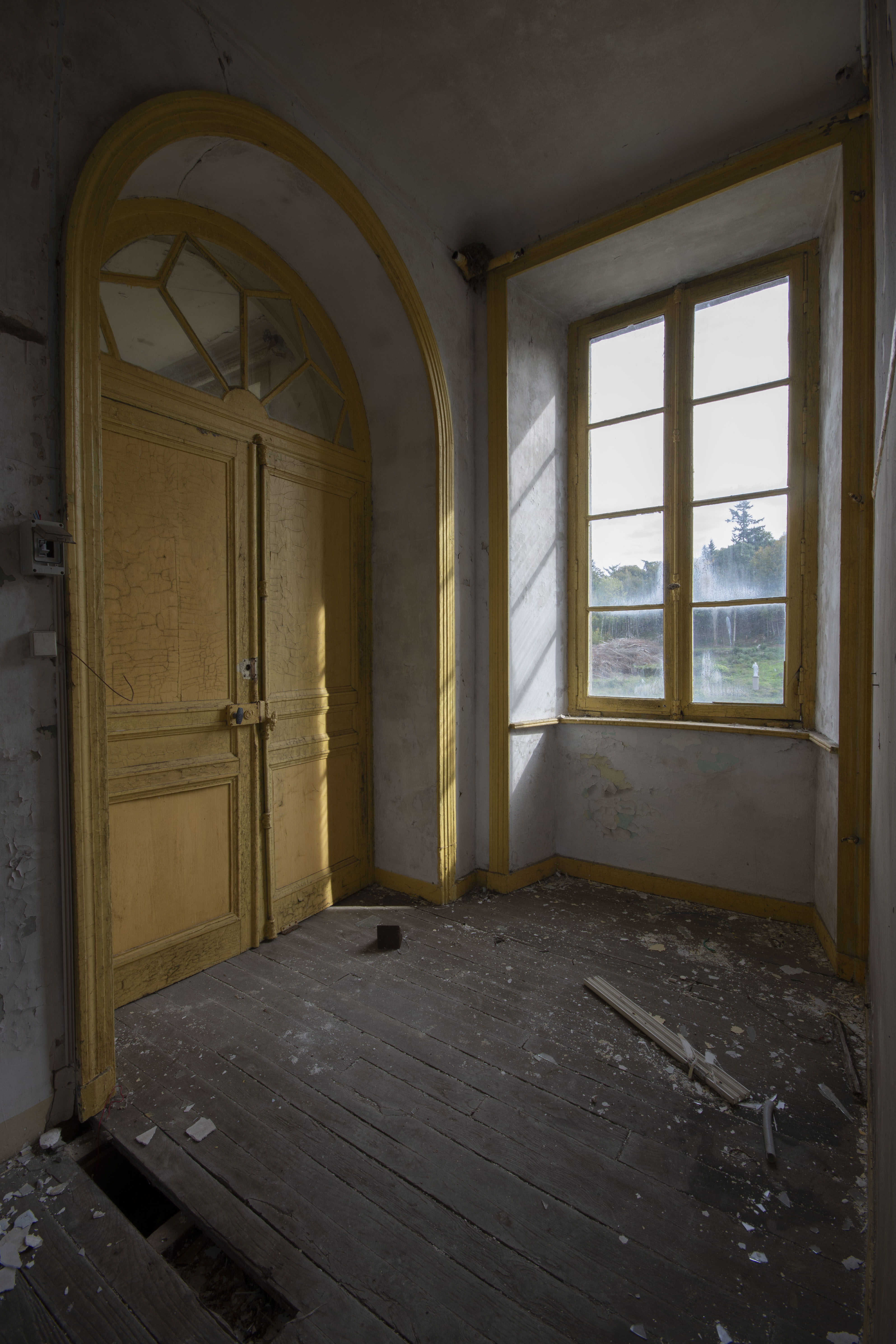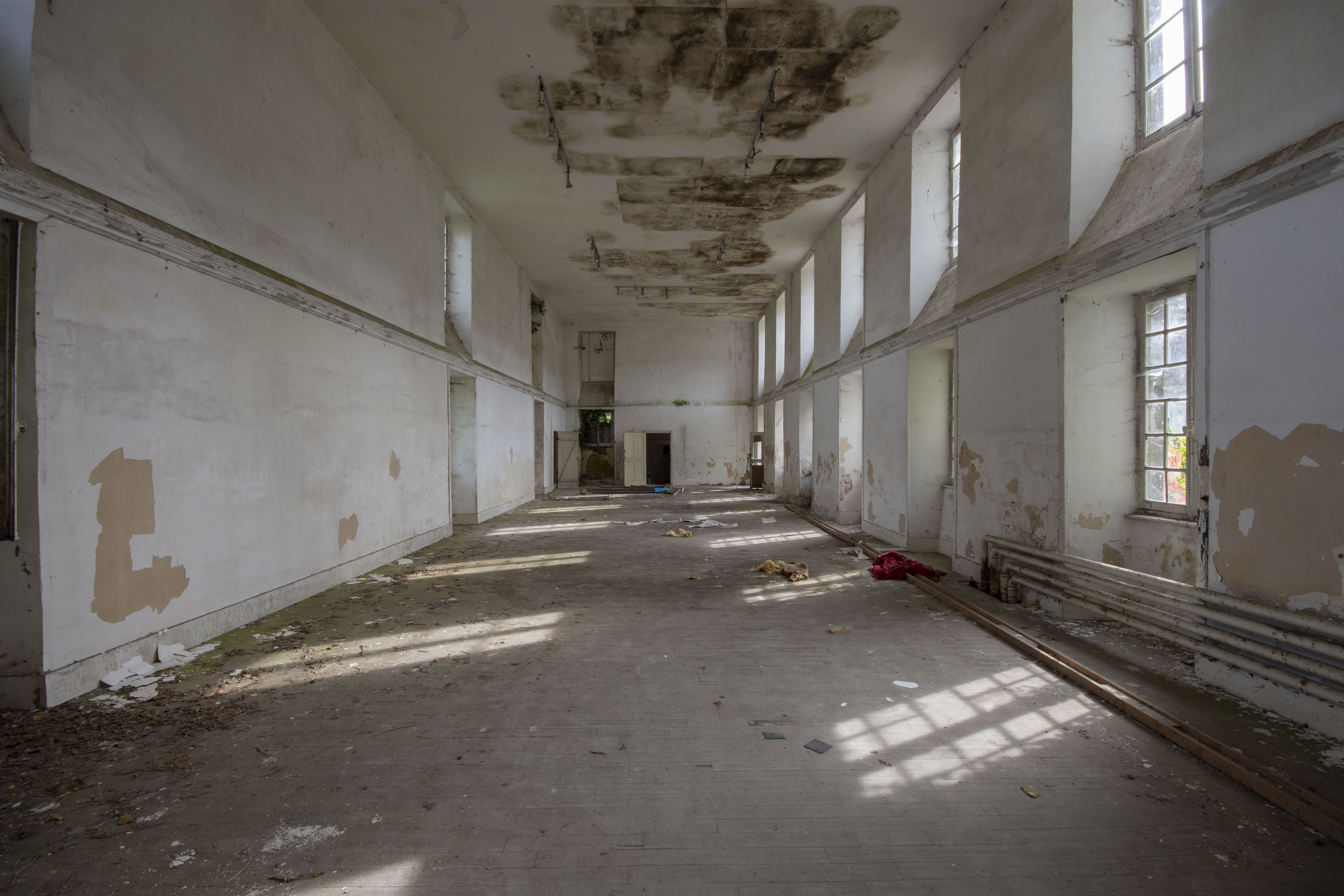 THE EXPLORE: I stopped by the Abbaye Blanche on my way to see some friends, after seeing the Chapelle des Pelotes. A little theme of religious buildings, I know! But still, the thought of exploring a derelict 12th century abbey? Tantalising. I parked up and headed over to the abbey, the buildings looming over the road. I found my way in pretty quickly and began snapping away. The upper three floors of the 19th century seminary buildings were evidently modernised during the late 20th century as they have hundreds of rooms with en-suite bathrooms. However, the further down you got, the better the building got. The library and one of the principal reception rooms boasted some very fine carved pannelling and fireplaces. Fine oval staircases wound their way up various spots of the building.