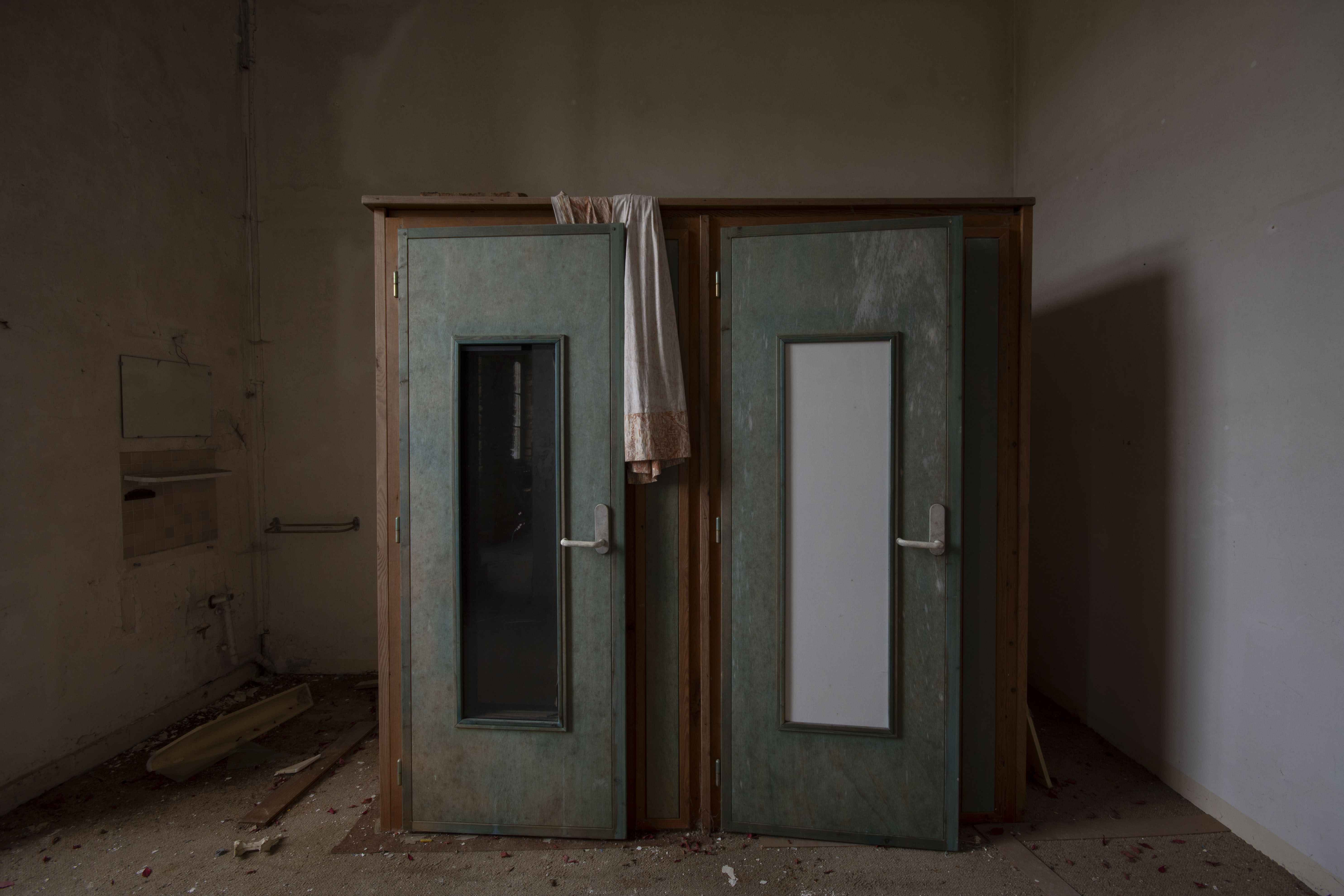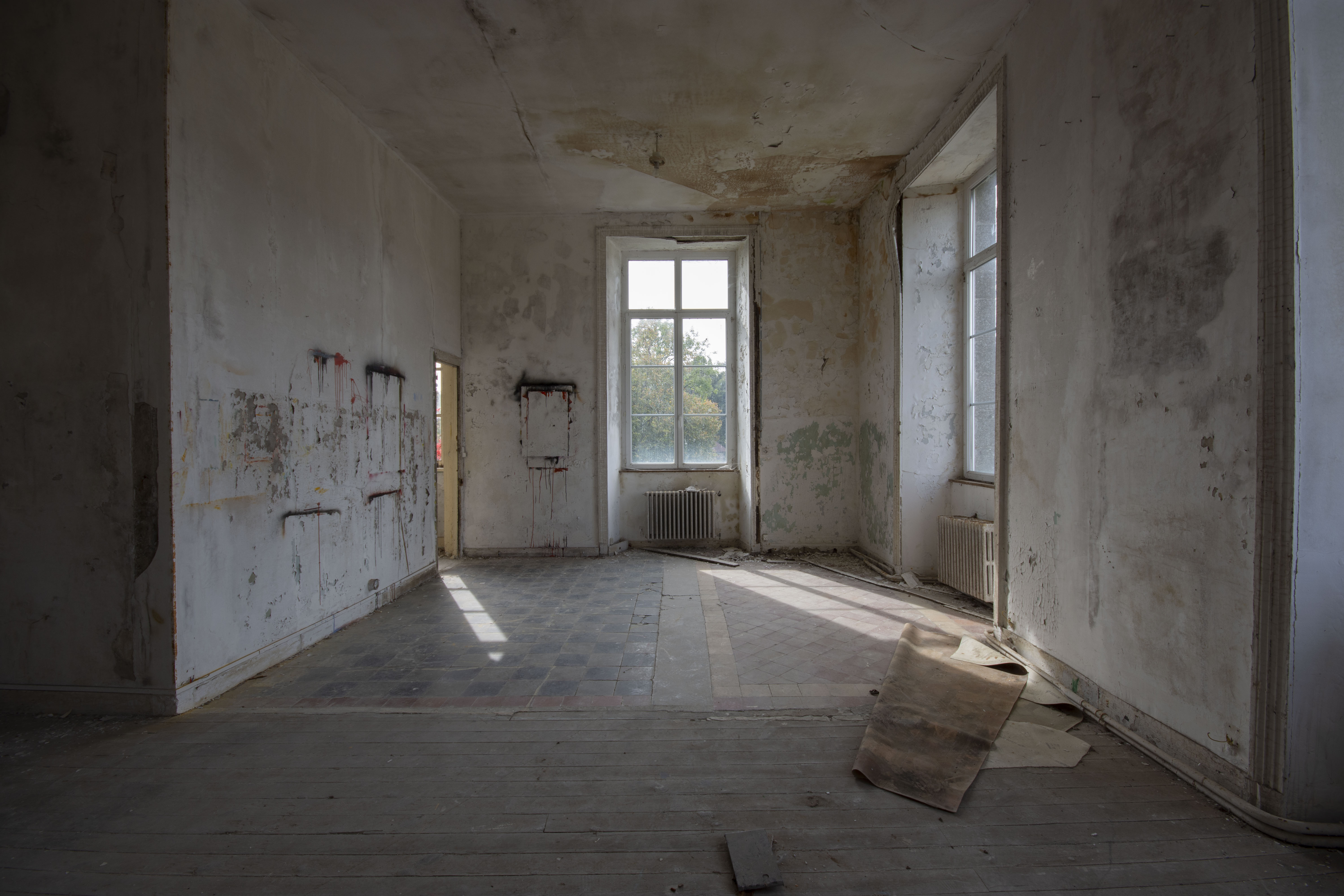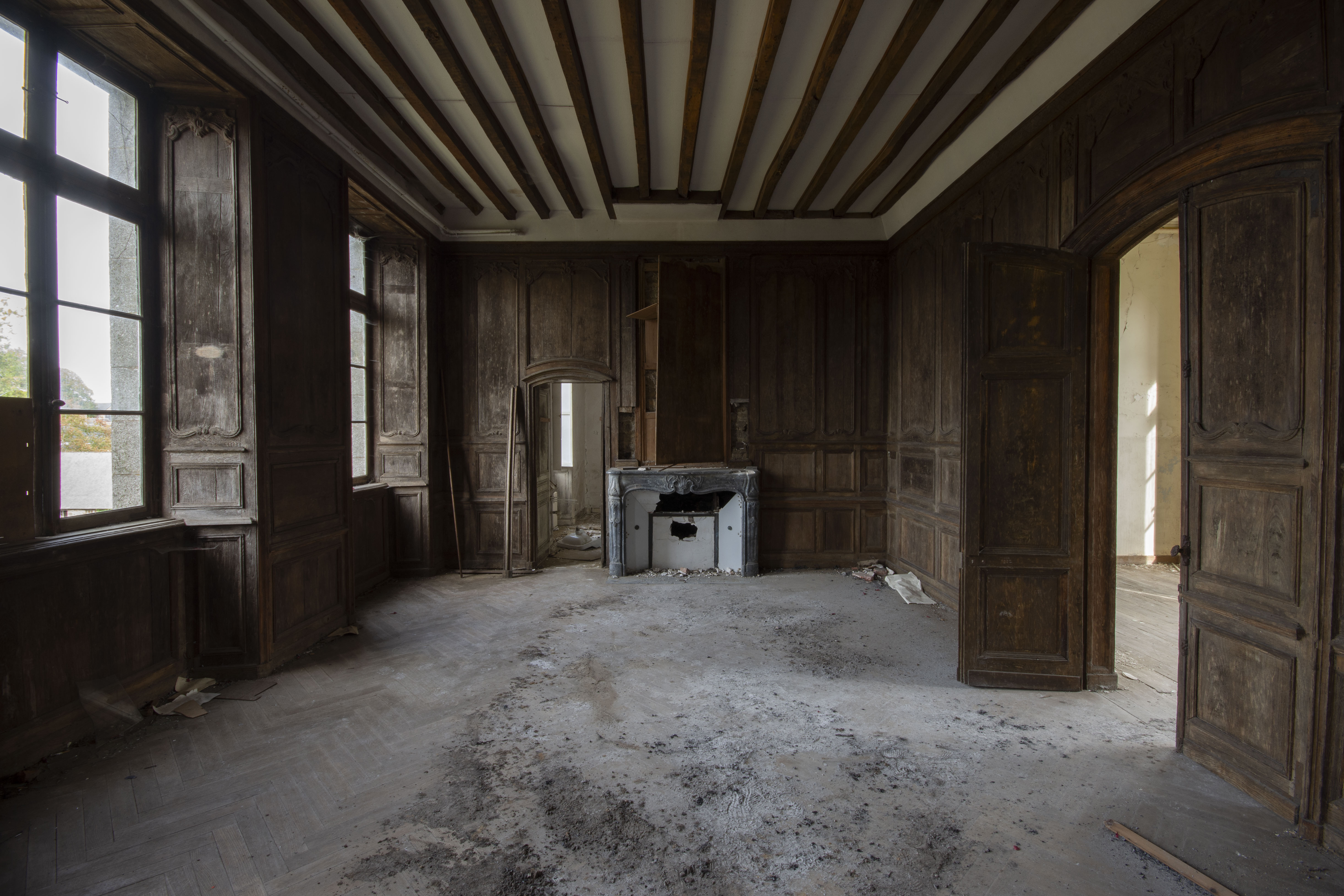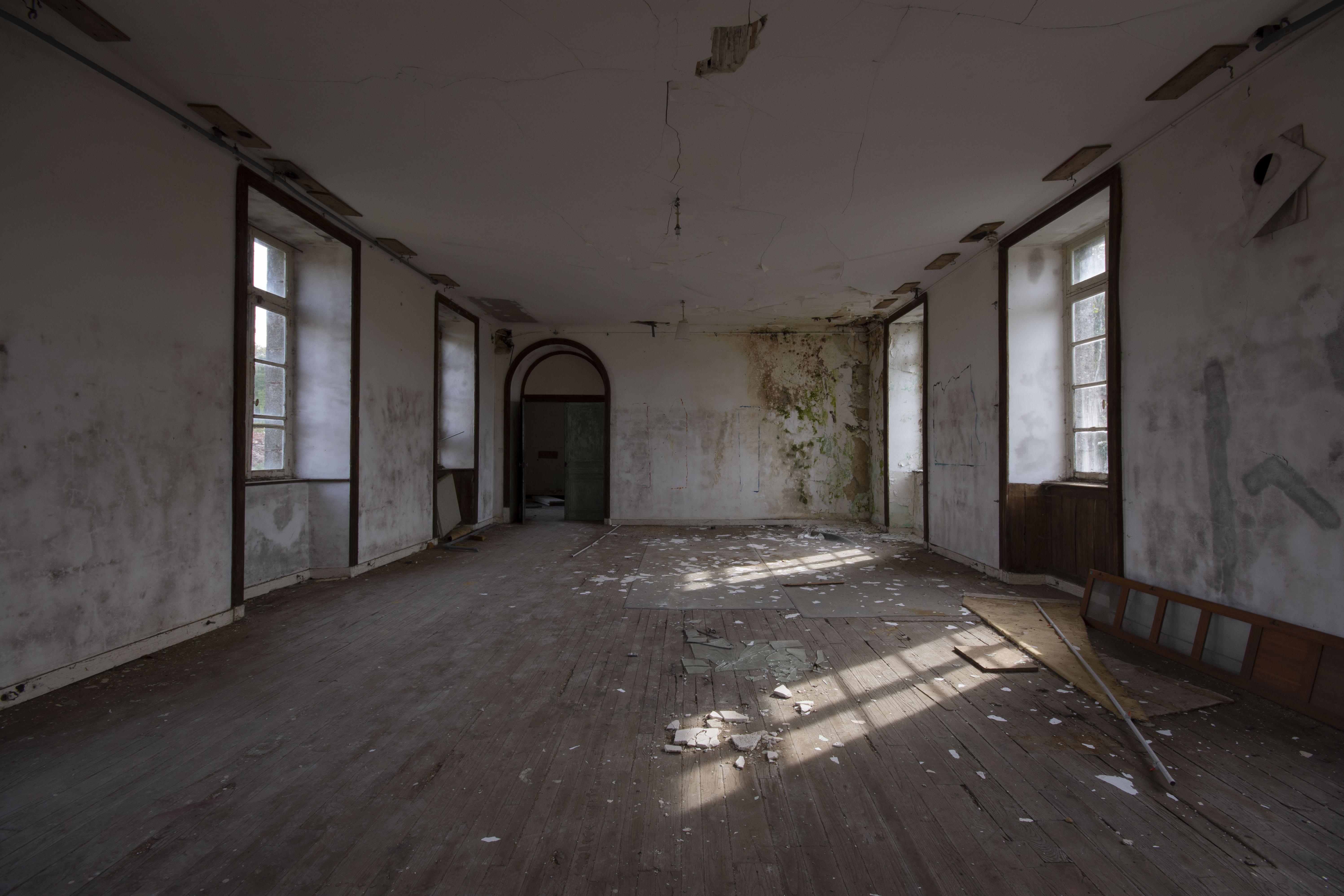 THE EXPLORE: I stopped by the Abbaye Blanche on my way to see some friends, after seeing the Chapelle des Pelotes. A little theme of religious buildings, I know! But still, the thought of exploring a derelict 12th century abbey? Tantalising. I parked up and headed over to the abbey, the buildings looming over the road. I found my way in pretty quickly and began snapping away. The upper three floors of the 19th century seminary buildings were evidently modernised during the late 20th century as they have hundreds of rooms with en-suite bathrooms. However, the further down you got, the better the building got. The library and one of the principal reception rooms boasted some very fine carved pannelling and fireplaces. Fine oval staircases wound their way up various spots of the building.