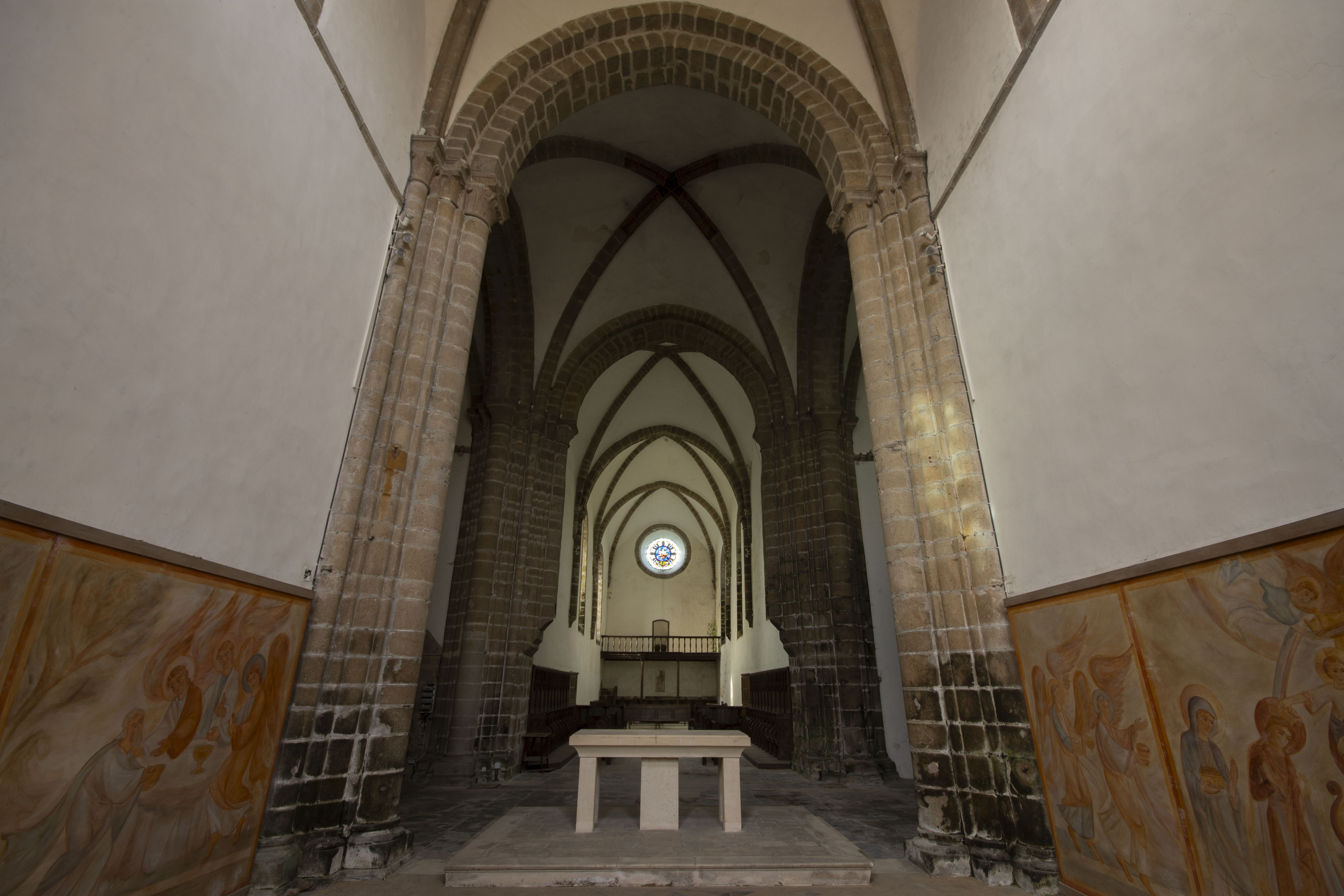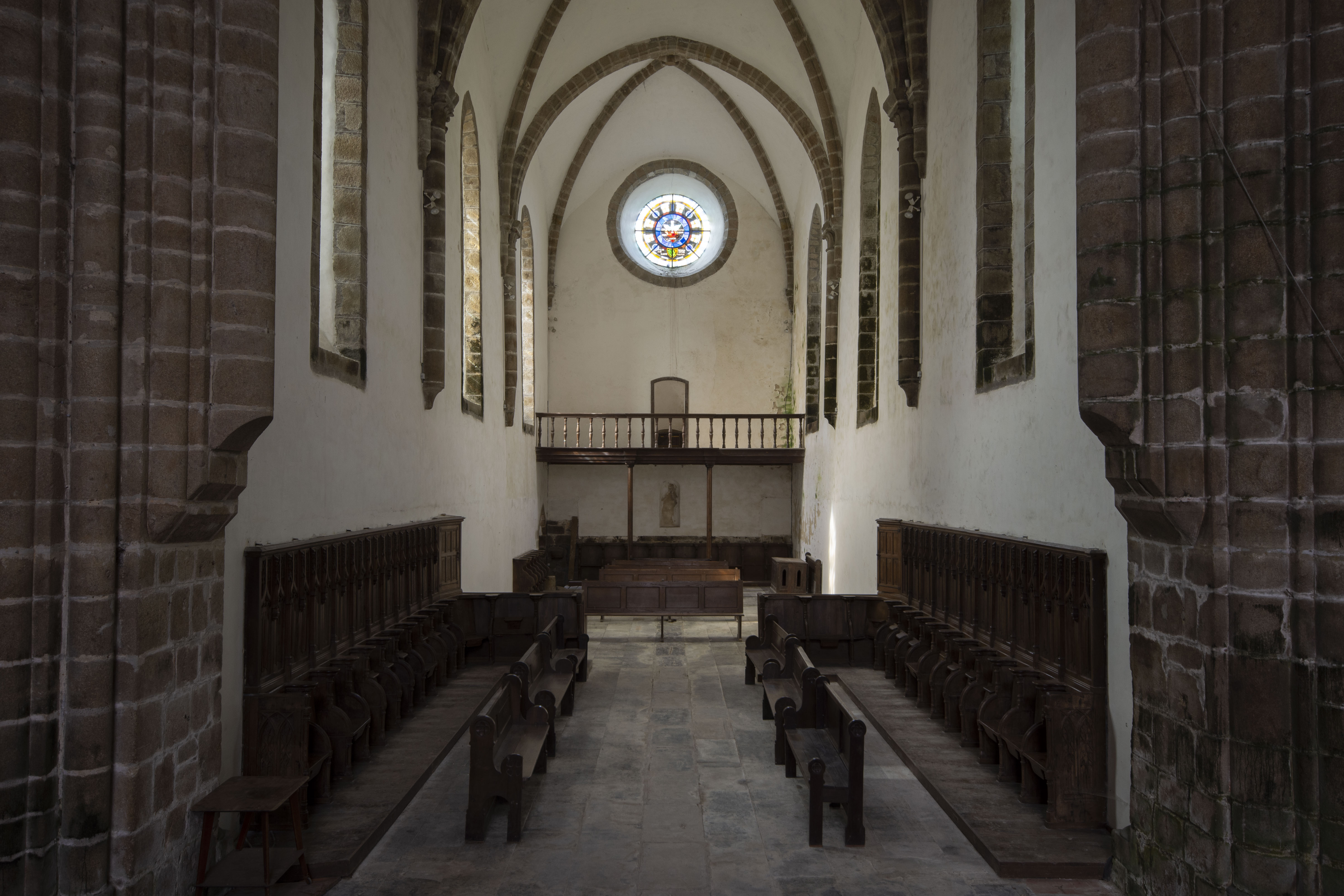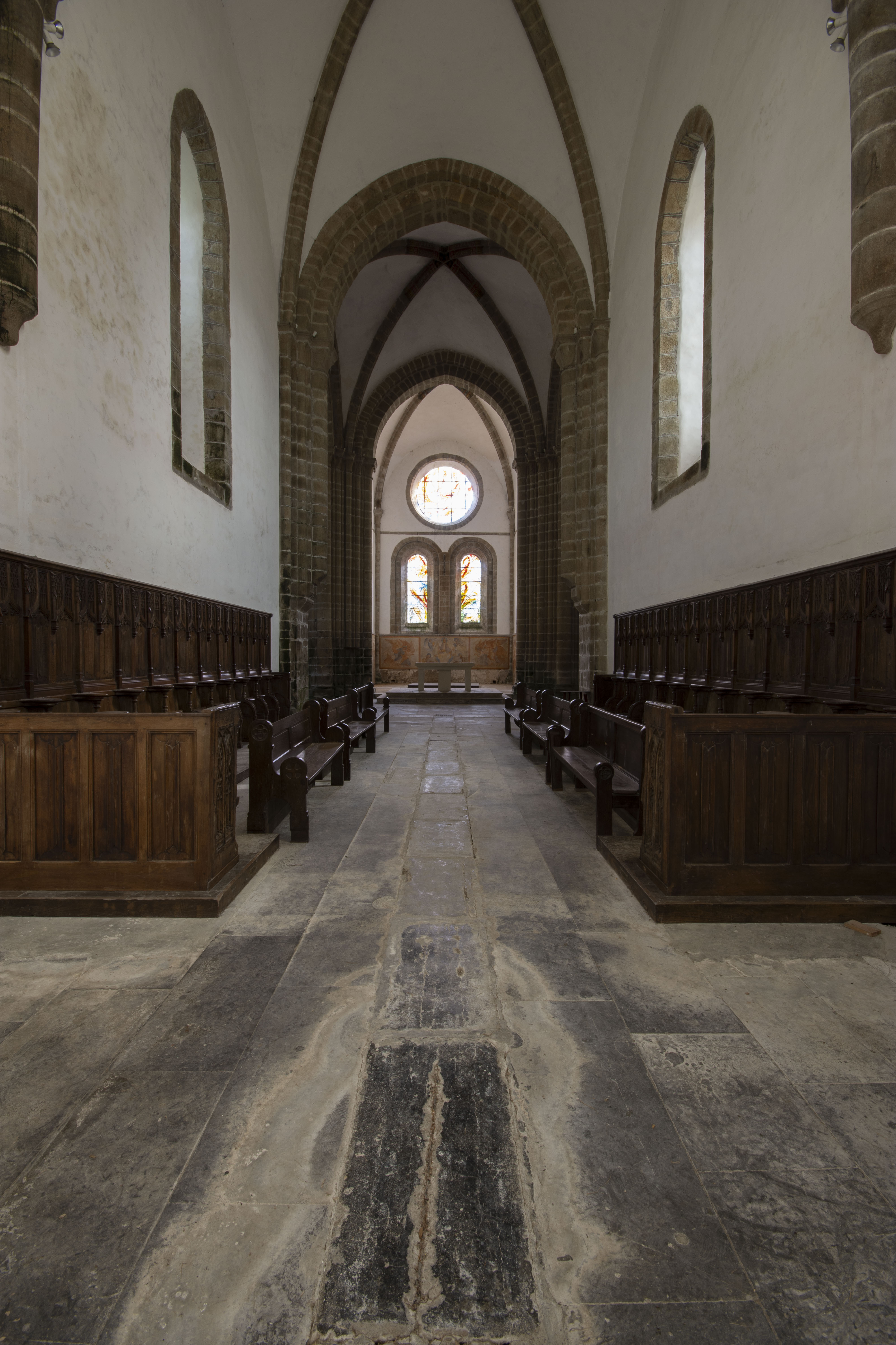 Between 1147 and 1148, the Savignac Order was absorbed into the Cistercian Order of the Catholic Church directly governed by the Abbaye de Cîteaux – this was overseen by Pope Eugene III, himself a former Cistercian monk. This meant that the Abbaye Blanche adopted Cistercian customs and liturgy. This caused an architectural change when new buildings were built in the years after. Starting in 1170 or so, the church that is still present today was begun in the transitional Romanesque style (the shift in architectural tastes towards the Gothic style which was being developed at the time by Abbot Suger at the Basilique St Denis in Paris is evident in the arches and vaults) and laid out in the Cistercian liturgical fashion – a cruciform layout for the church, with a broad nave and transept with northeastern and southeastern chapels. The church was consecrated in 1205.