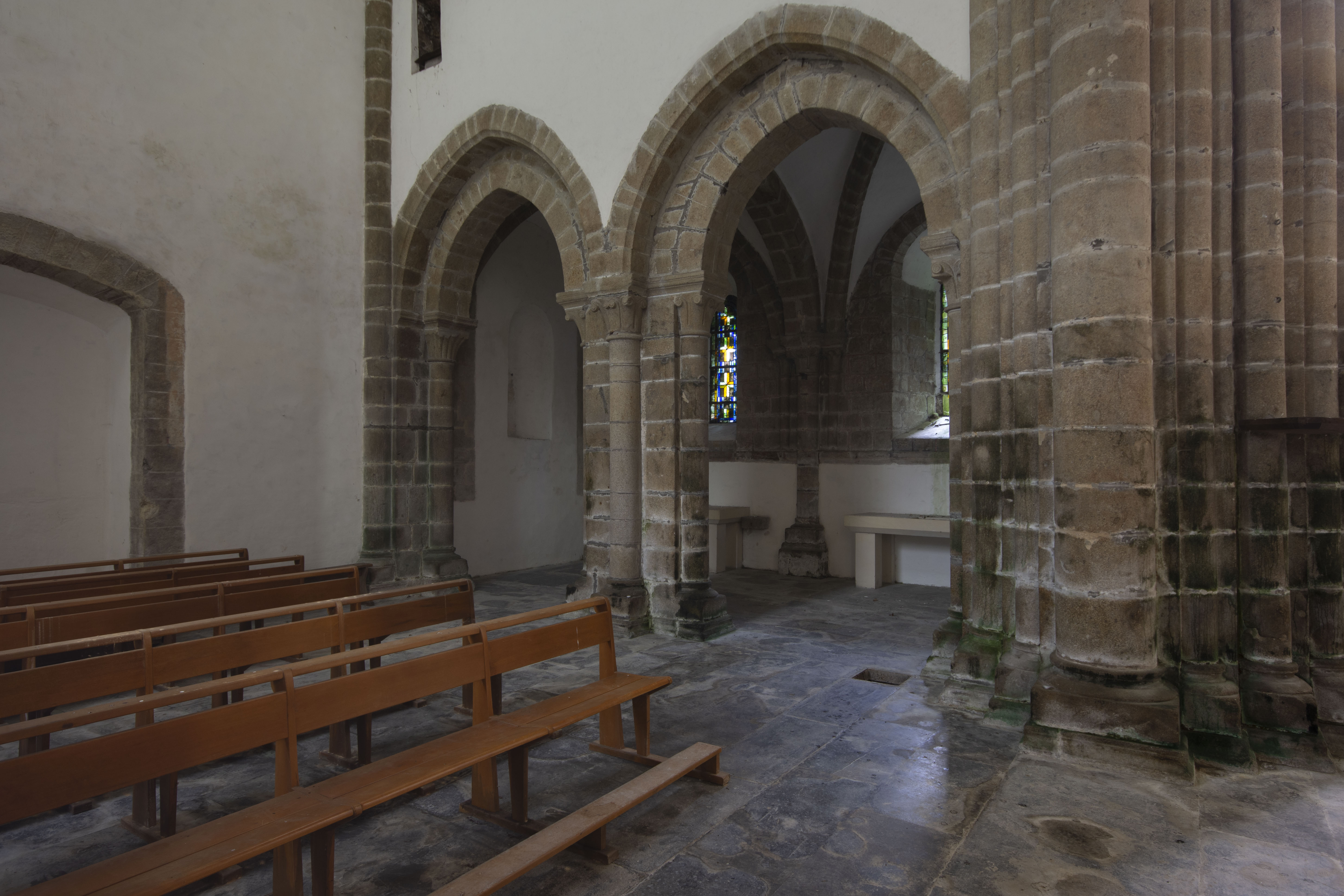 At the same time, a new cloister was built in the Romanesque style – this is an extremely rare surviving example, with many exquisite carved capitals. A new chapter house was also built to the south of the church’s transept. Other buildings were built gradually over the rest of the period of the 13th century. At this time, the flourishing abbey held a number of mills and plenty of agricultural land. A mill stands just northwest of the church.
