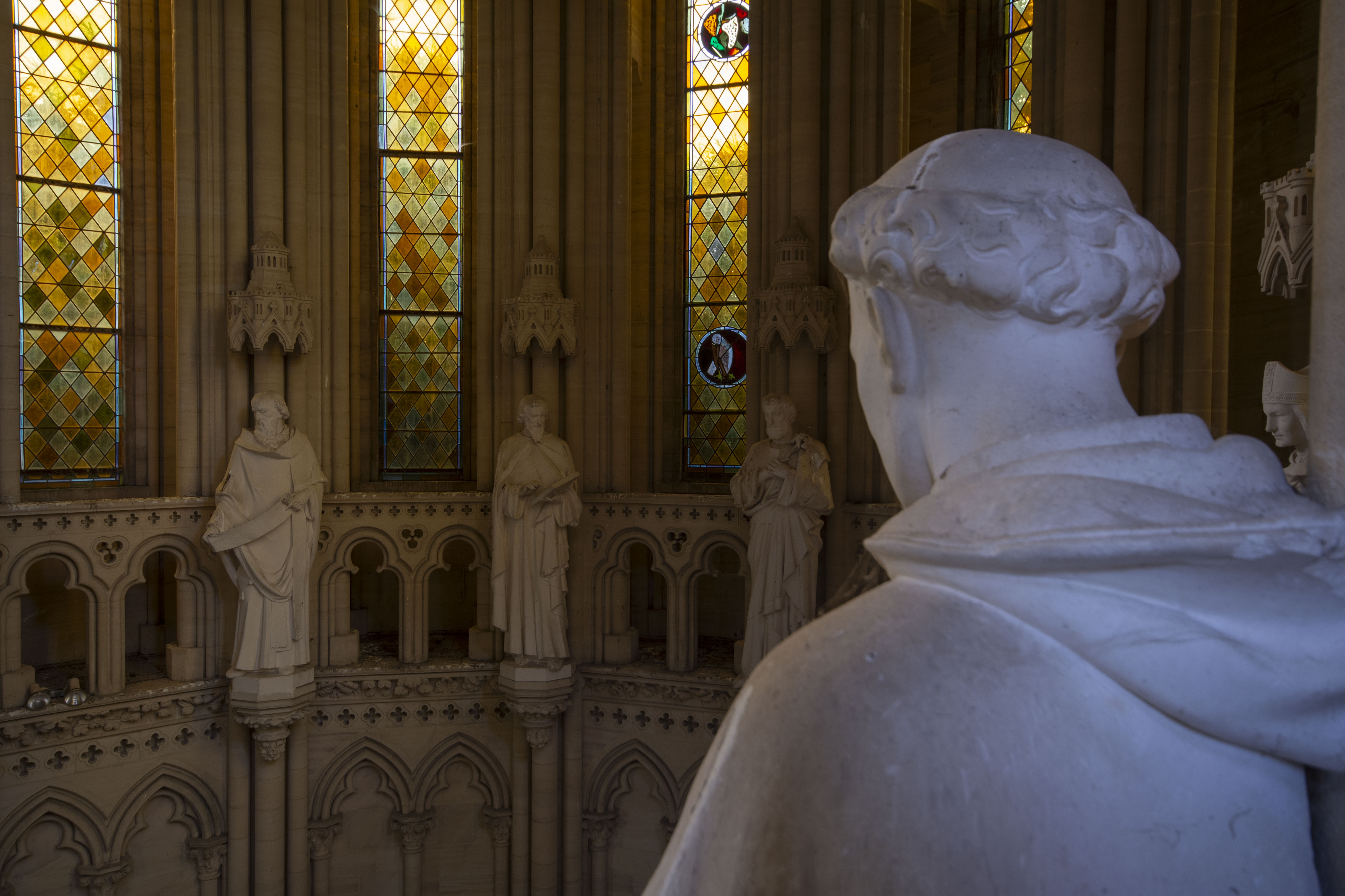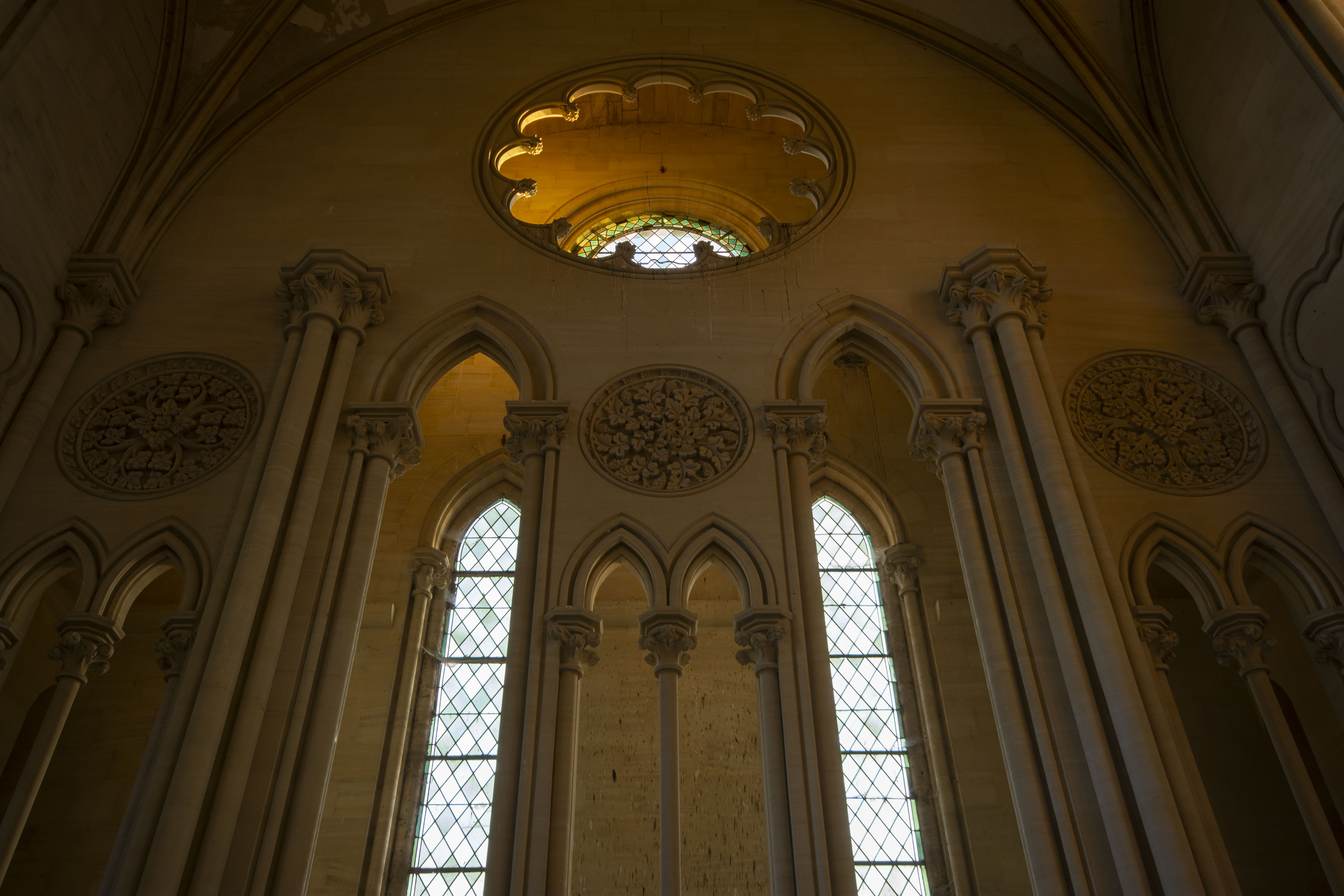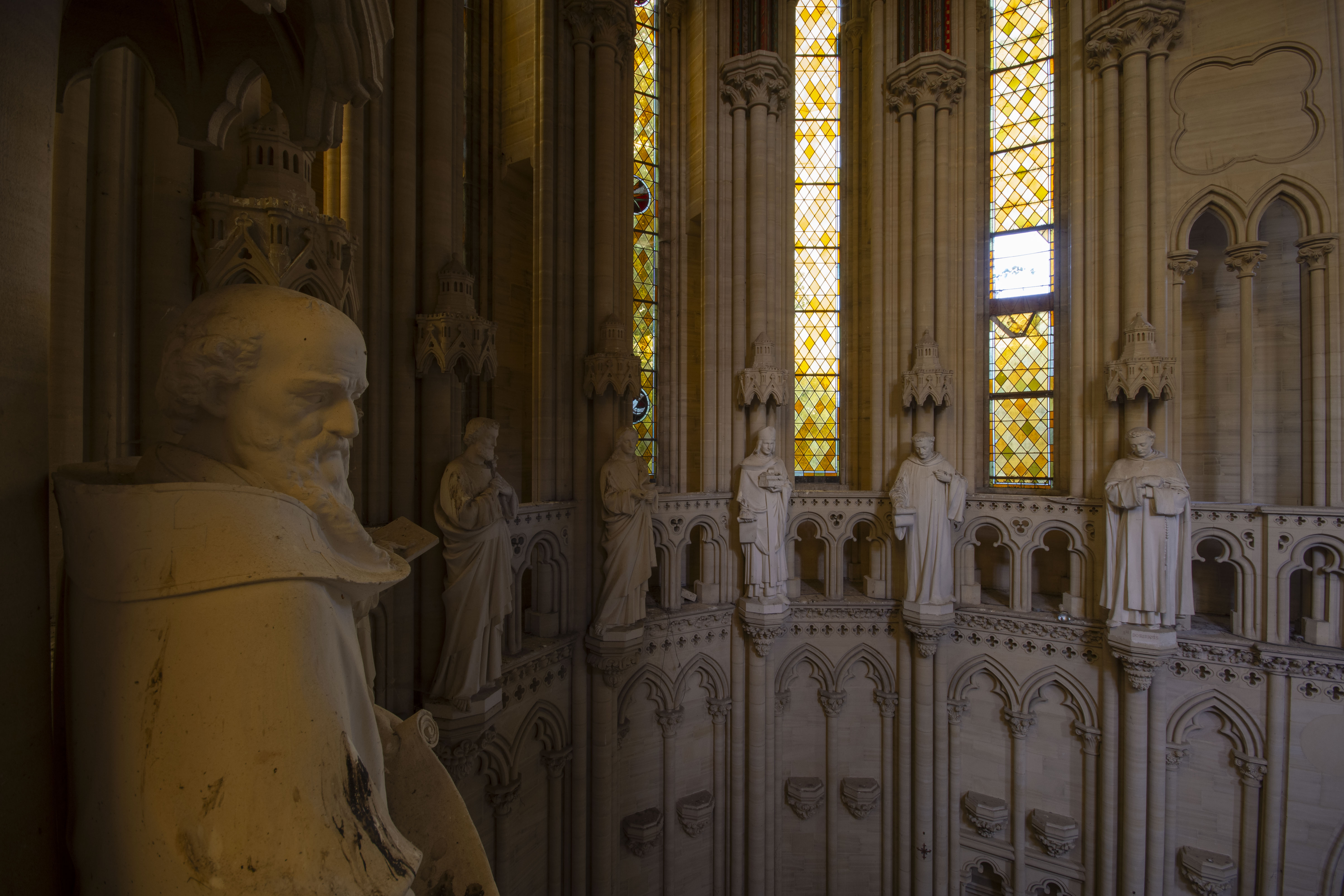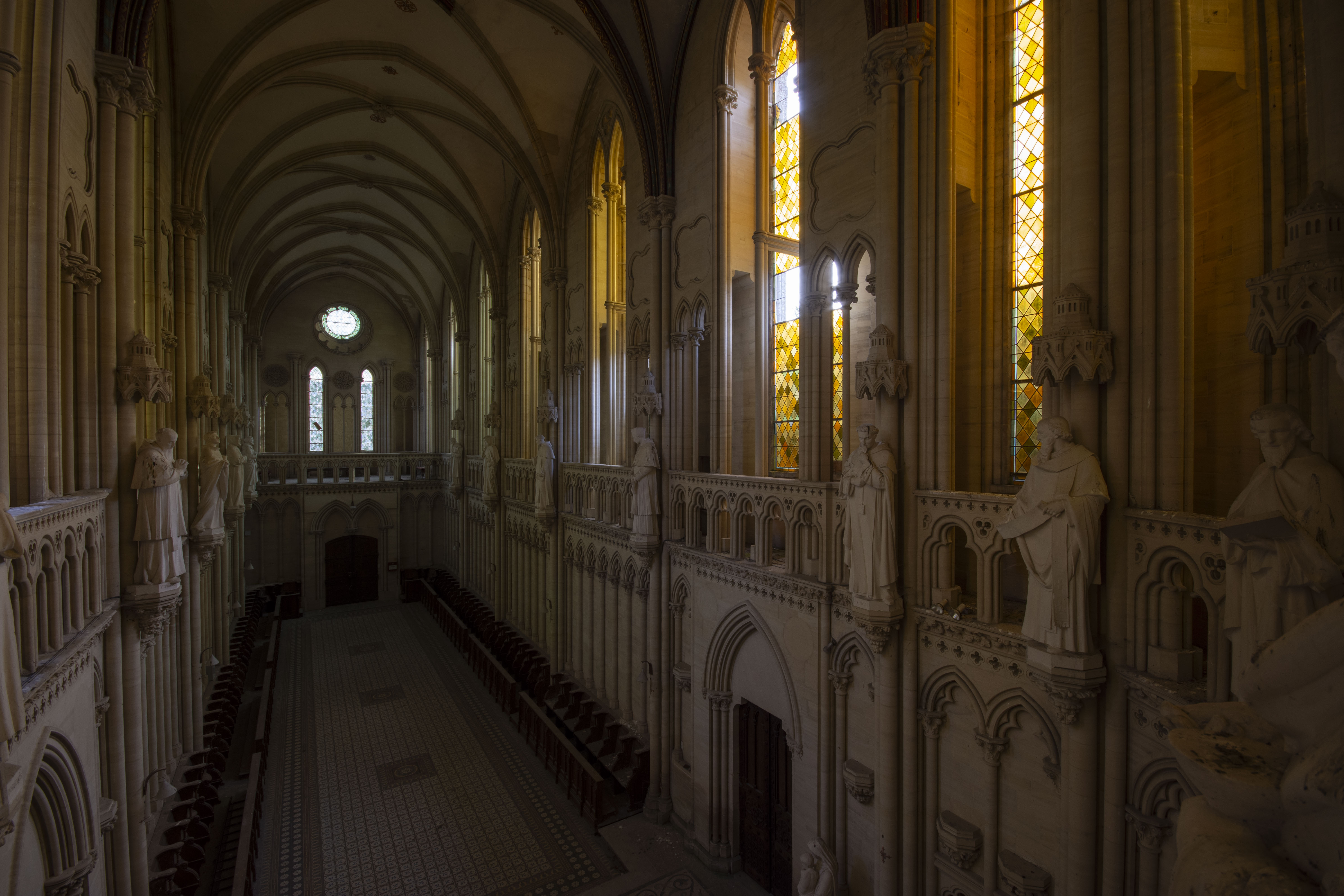 The site’s immensely impressive Chapelle de Immaculée Conception, built in the Rayonnant Neo-Gothic style, was started in 1851, with its foundation stone being laid on the 29th of June that year. The architect was Le Forestier once again, but he died before the foundation stone was laid and thus never got to see his masterpiece finished. The seminary’s superior continued the construction of the chapel, and it was consecrated on the 25th of October, 1862. Construction continued through the 1880s and were then stopped in 1891. Evidence of the chapel’s unfinished elements are visible, with uncarved squared blocks of ashlar still waiting to be carved into beautiful capitals and motifs to this day.