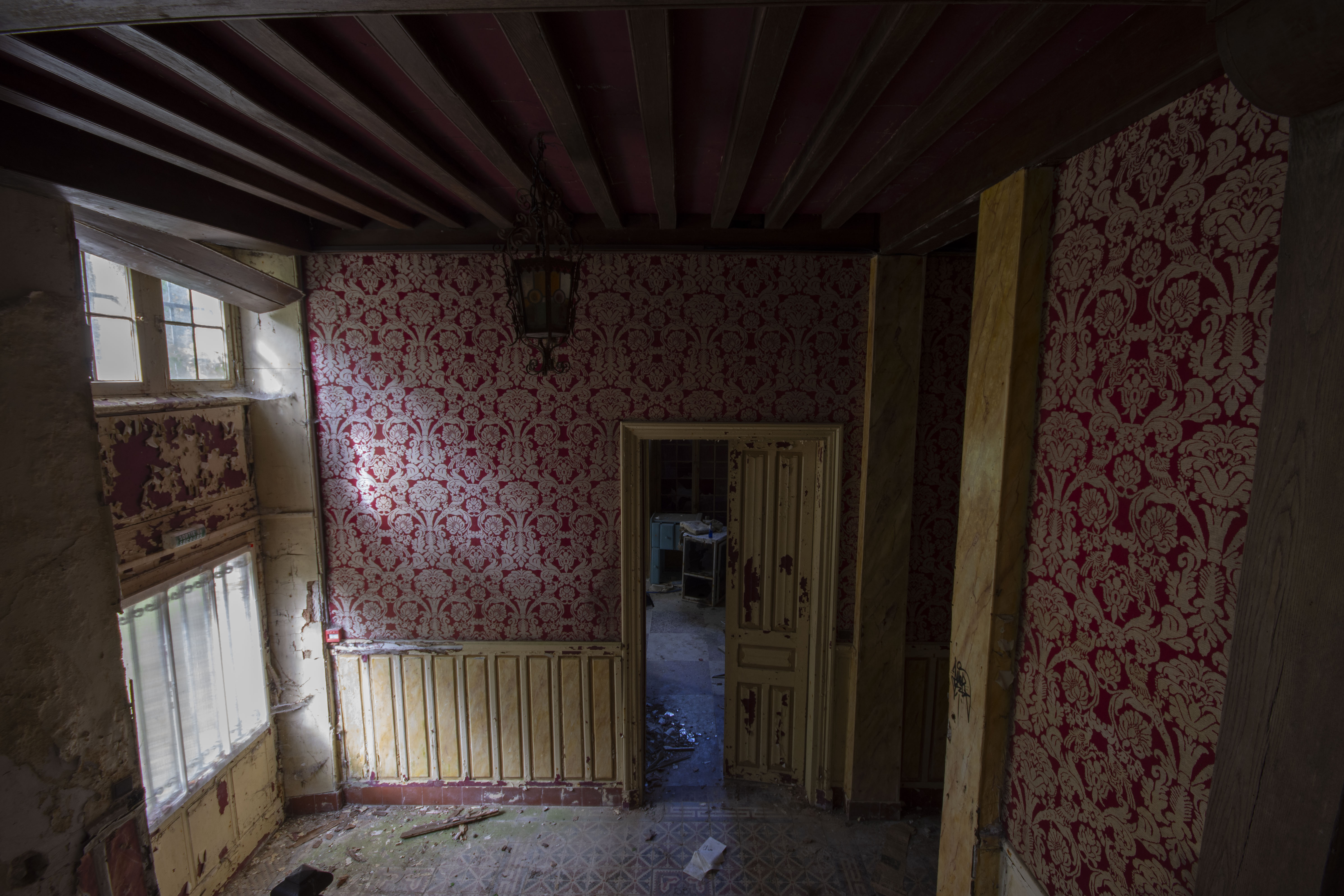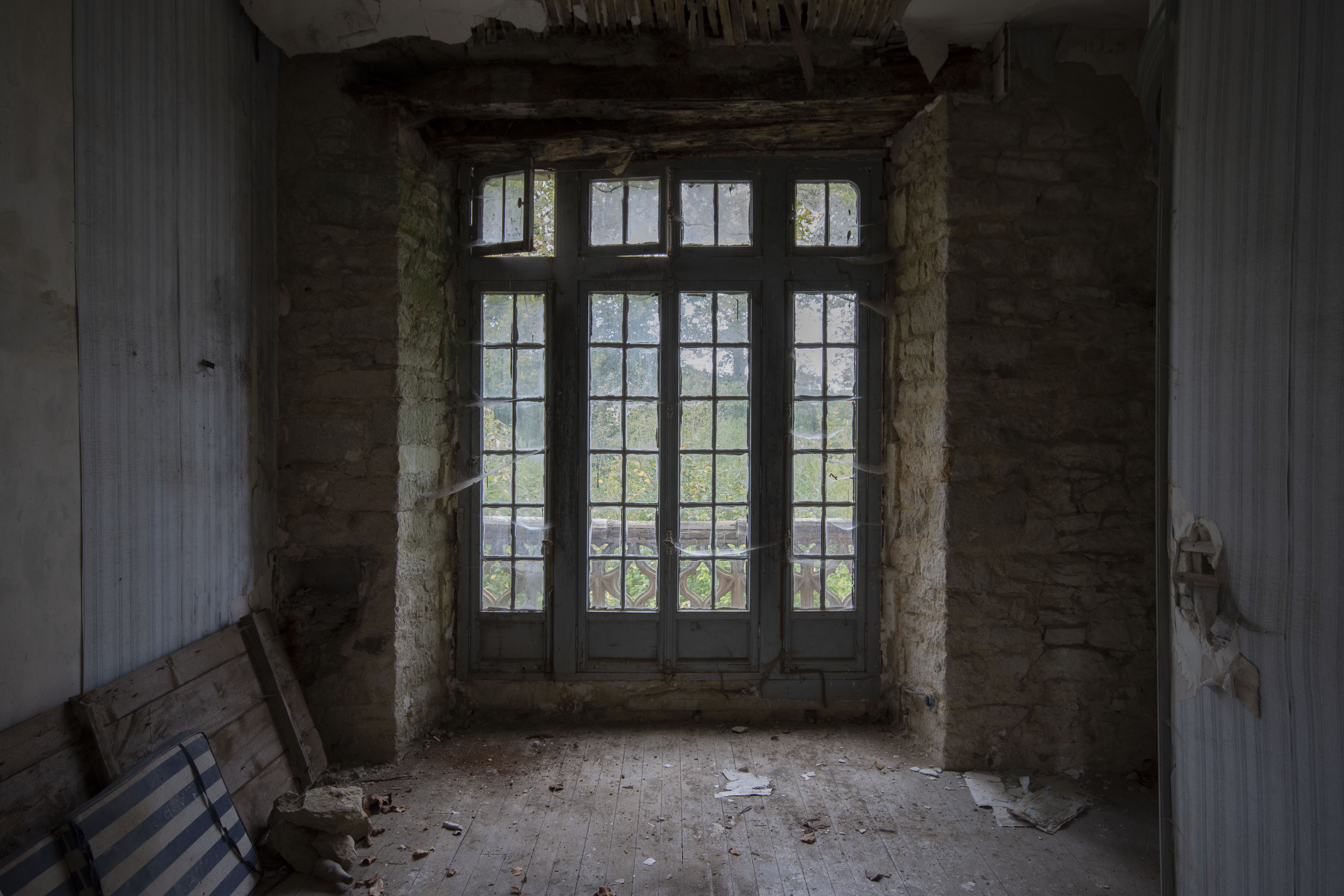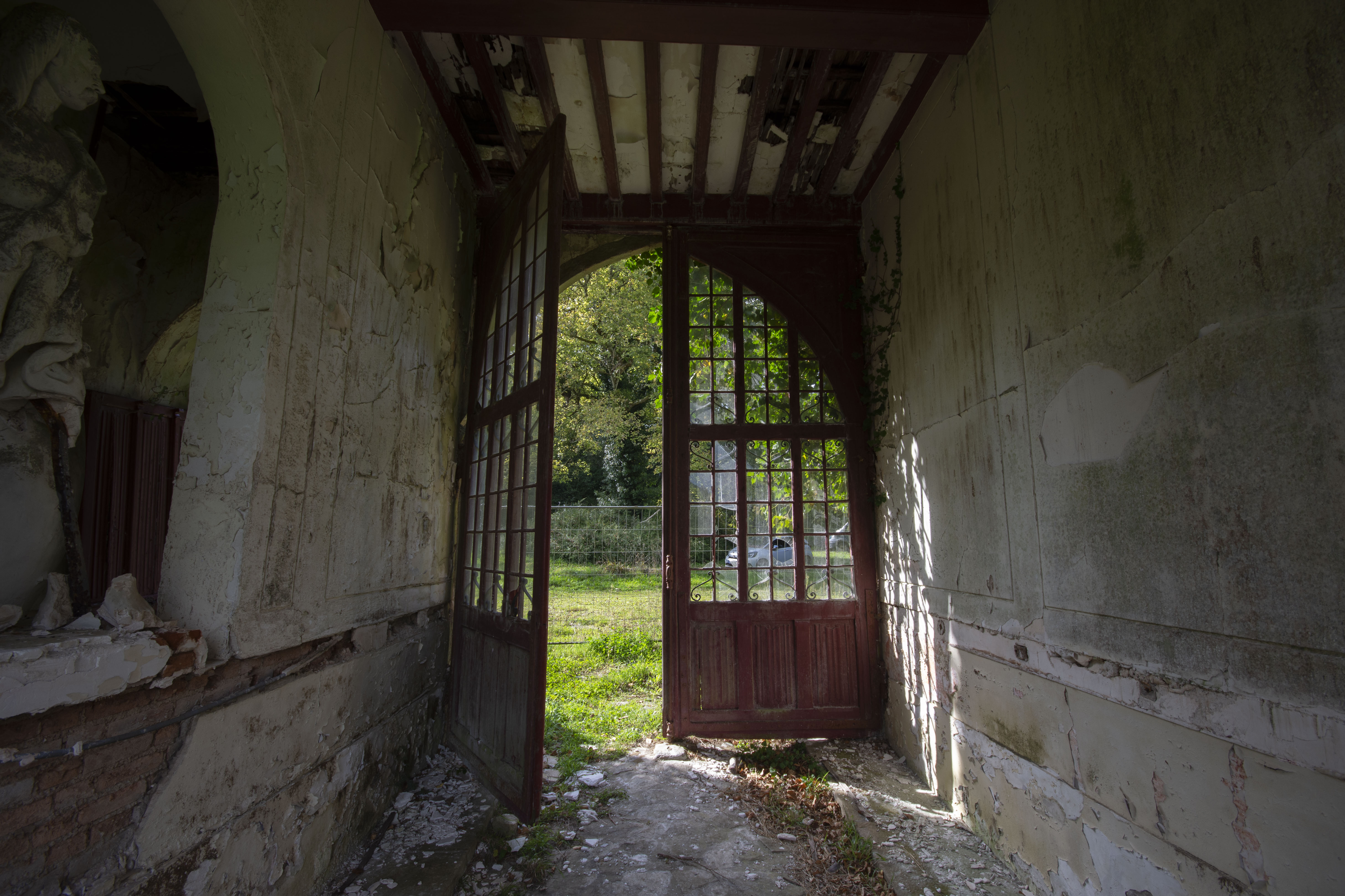 THE EXPLORE: I explored this site on my 25th birthday, which was rather nice! It turns out I had seen the entrance gate to the Chateau a number of times in my childhood – funny how these things work out! I parked up and made my way over to the site. A nice walk on a warm breezy day. I got to the estate, eyes and ears peeled for any sign of life. Thankfully none… so I made my way to the Chateau. I was not disappointed. I’m a fan of architecture, and the 16th century facade was breath taking. However… it is rather evident that the 19th century Parisian industrialist did the rebuilding works on the cheap, as evidenced by the lack of structural timbers (the beams are actually mostly fake!). This cost cutting has severely compromised the building as thanks to that, the structure is rather dangerous with collapsing ceilings and floors everywhere. Enjoy the photos!