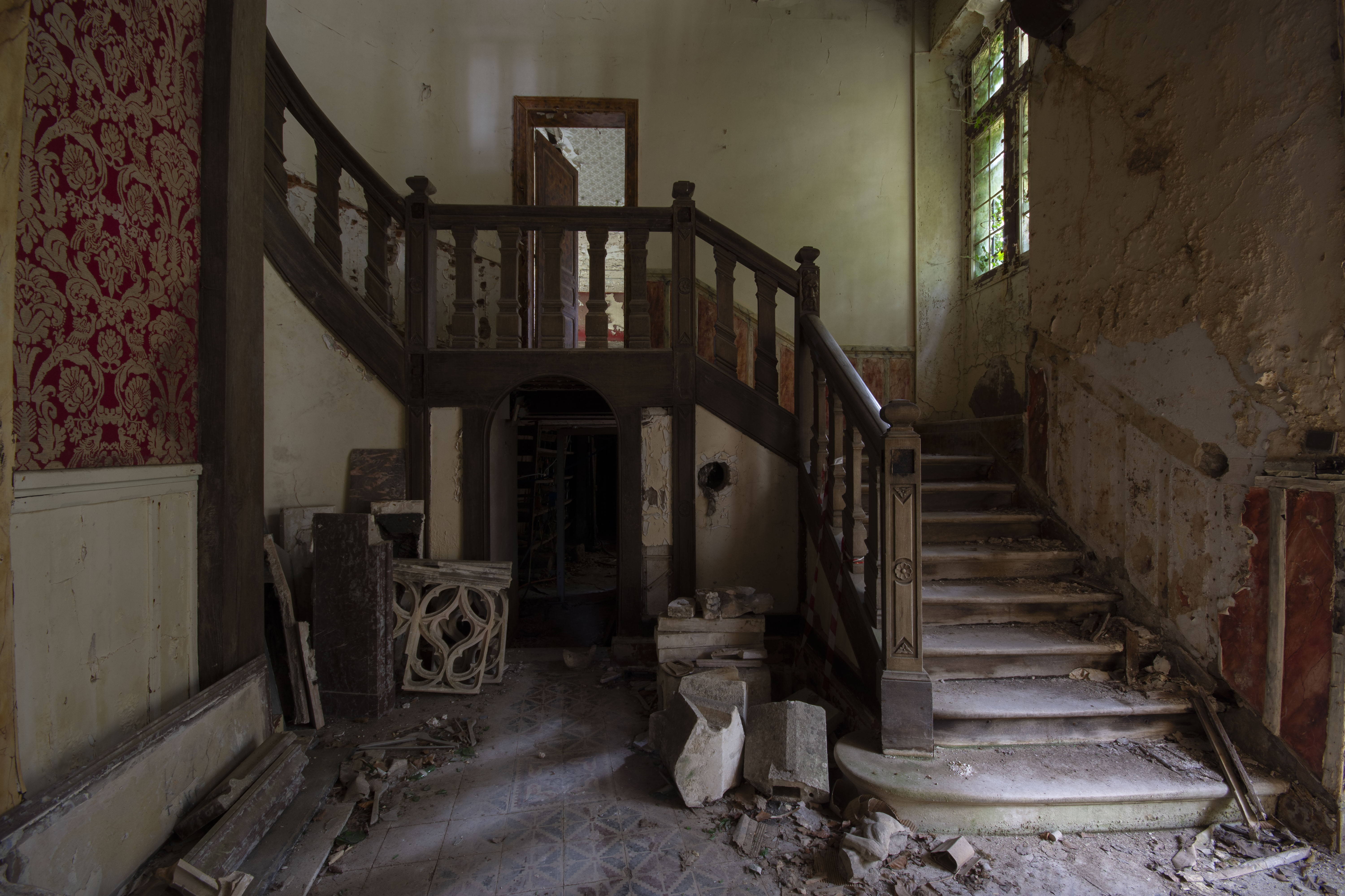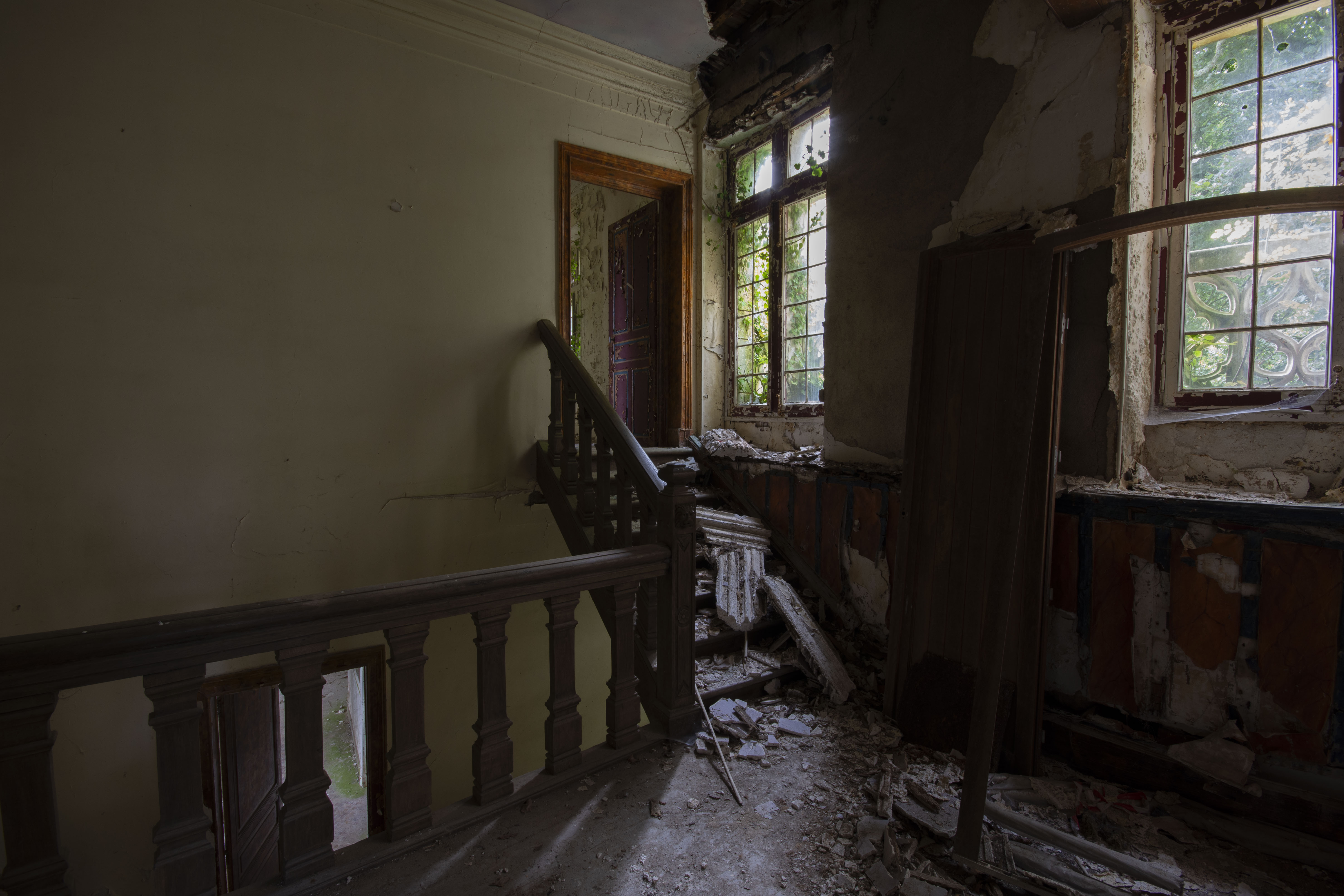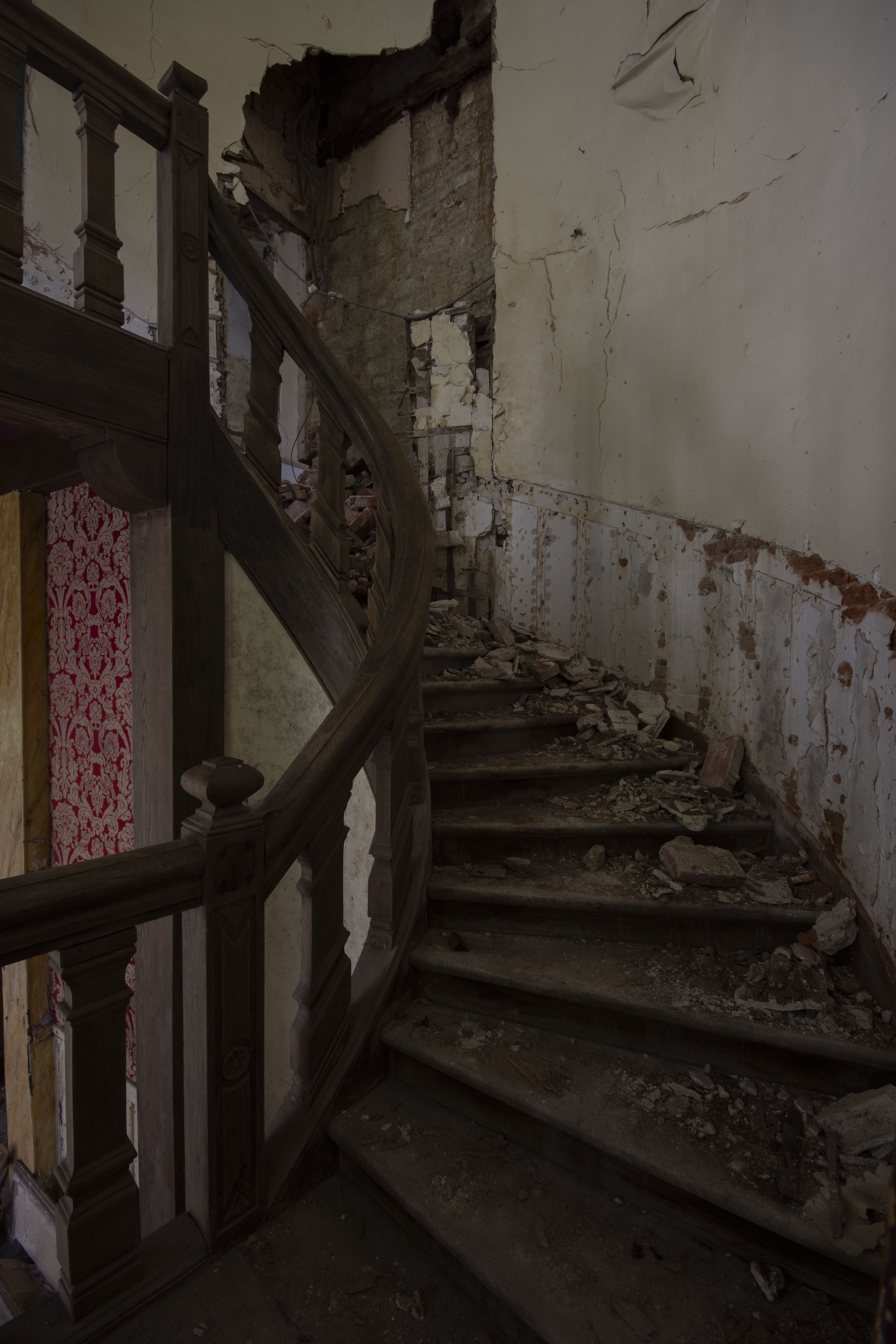 THE EXPLORE: I explored this site on my 25th birthday, which was rather nice! It turns out I had seen the entrance gate to the Chateau a number of times in my childhood – funny how these things work out! I parked up and made my way over to the site. A nice walk on a warm breezy day. I got to the estate, eyes and ears peeled for any sign of life. Thankfully none… so I made my way to the Chateau. I was not disappointed. I’m a fan of architecture, and the 16th century facade was breath taking. However… it is rather evident that the 19th century Parisian industrialist did the rebuilding works on the cheap, as evidenced by the lack of structural timbers (the beams are actually mostly fake!). This cost cutting has severely compromised the building as thanks to that, the structure is rather dangerous with collapsing ceilings and floors everywhere. Enjoy the photos!