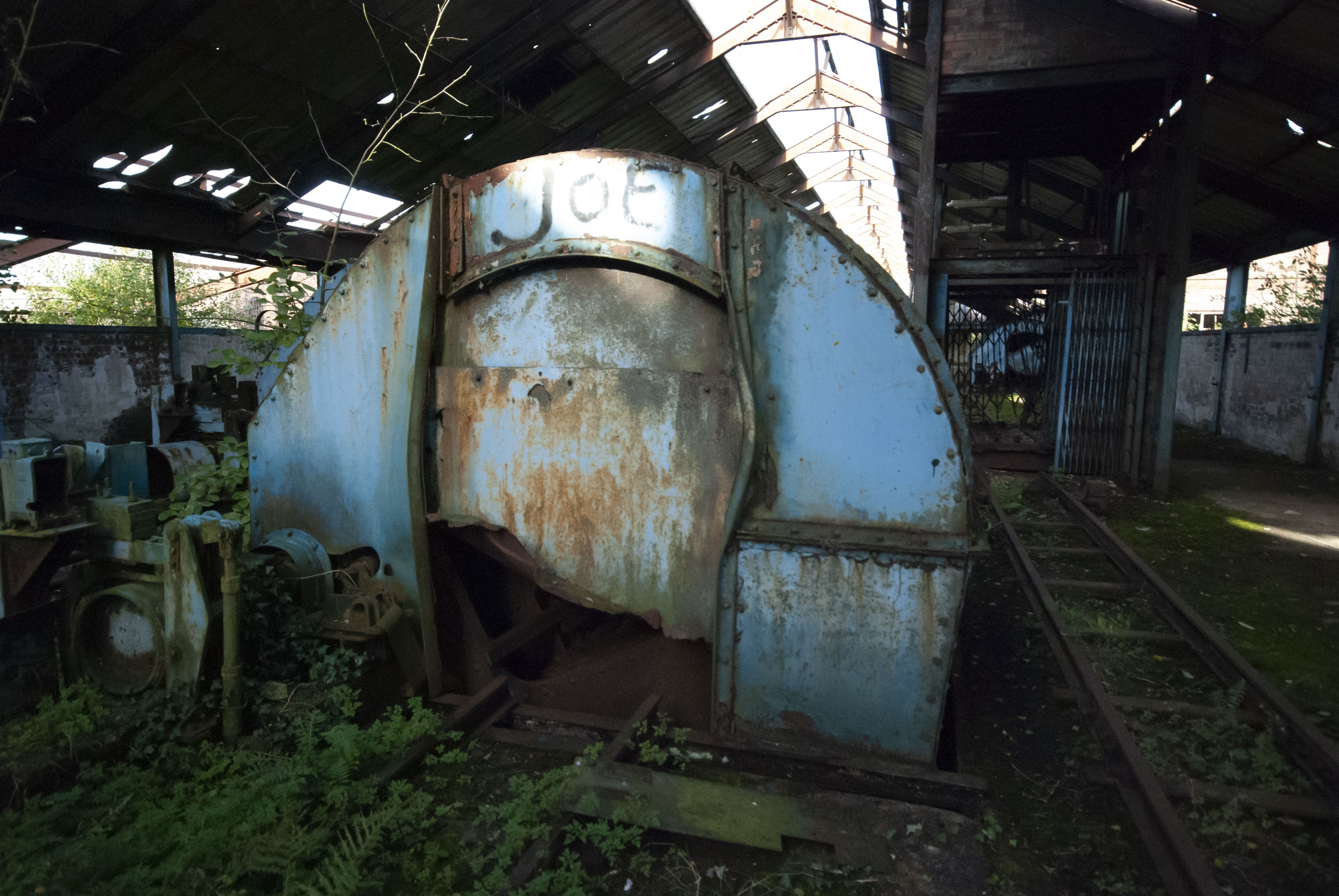 I rolled my eyes and started sniggering. It was quite the funny thing to listen to and to see the others scuttling away into bushes to hide. So, after a small amount of hiding and waiting to see if the rozzers did turn up, Robin and I continued our explore. The exit from the engine house was… a little clumsy on my part – I climbed over a railing to dangle myself onto the part we needed to use to get back down and misjudged how high it was… 7ft… not 5ft… I slipped, slammed my chest into a steel beam and winded myself, then accidentally released my grip on the railing and fell about a foot, and smacked my chin on the same steel beam that I’d smashed my chest on. I was a winded mess for a couple of minutes and then, when I stood up, I didn’t notice there was a small rod protruding out of the beam… I conked my cranium quite hard on that. So, head, chin and chest all hurting, I made my way towards the rest of the site. Whereupon I hit my head a further three times on low things. Bloody joyful! Unfortunately however, we could only explore the minecart circuit as the time was getting on by that point which was sad. However, enjoy the photographs!