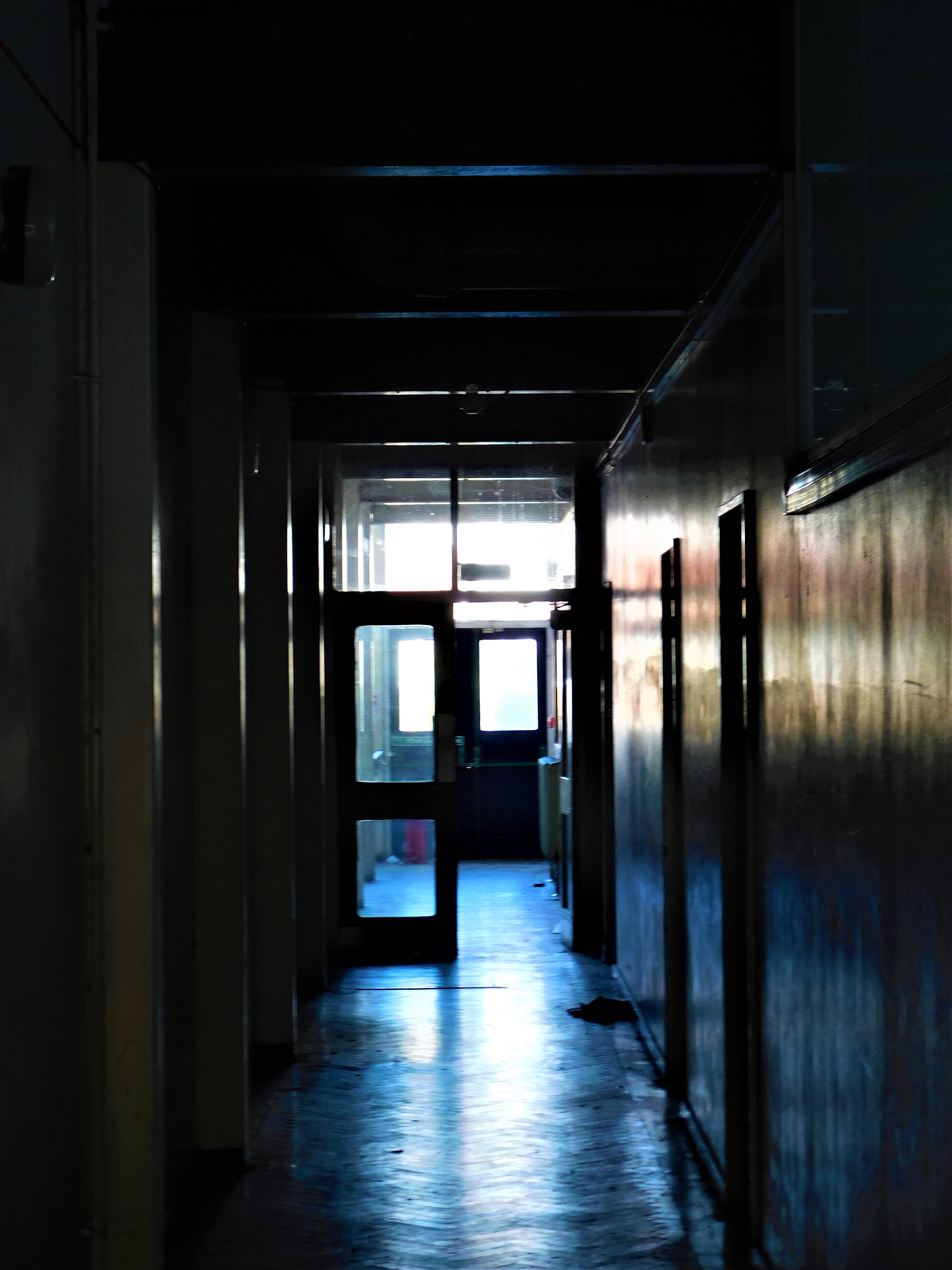 After scouting for about ten minutes, I clocked a security cabin in the main car park area. The guy was on his phone with headphones on so I snuck past him stealthily and managed to get into the school site. Definitely one of the more atmospheric places I’ve been to. 2,000 pupils used to attend here right up until 2015 when it closed down for good. Now the corridors are dark and dank. When I got into the building, that really musty sort of school smell hit me. I explored the place almost fully and spent at least three hours there. It’s mostly empty but some cool features still survived.