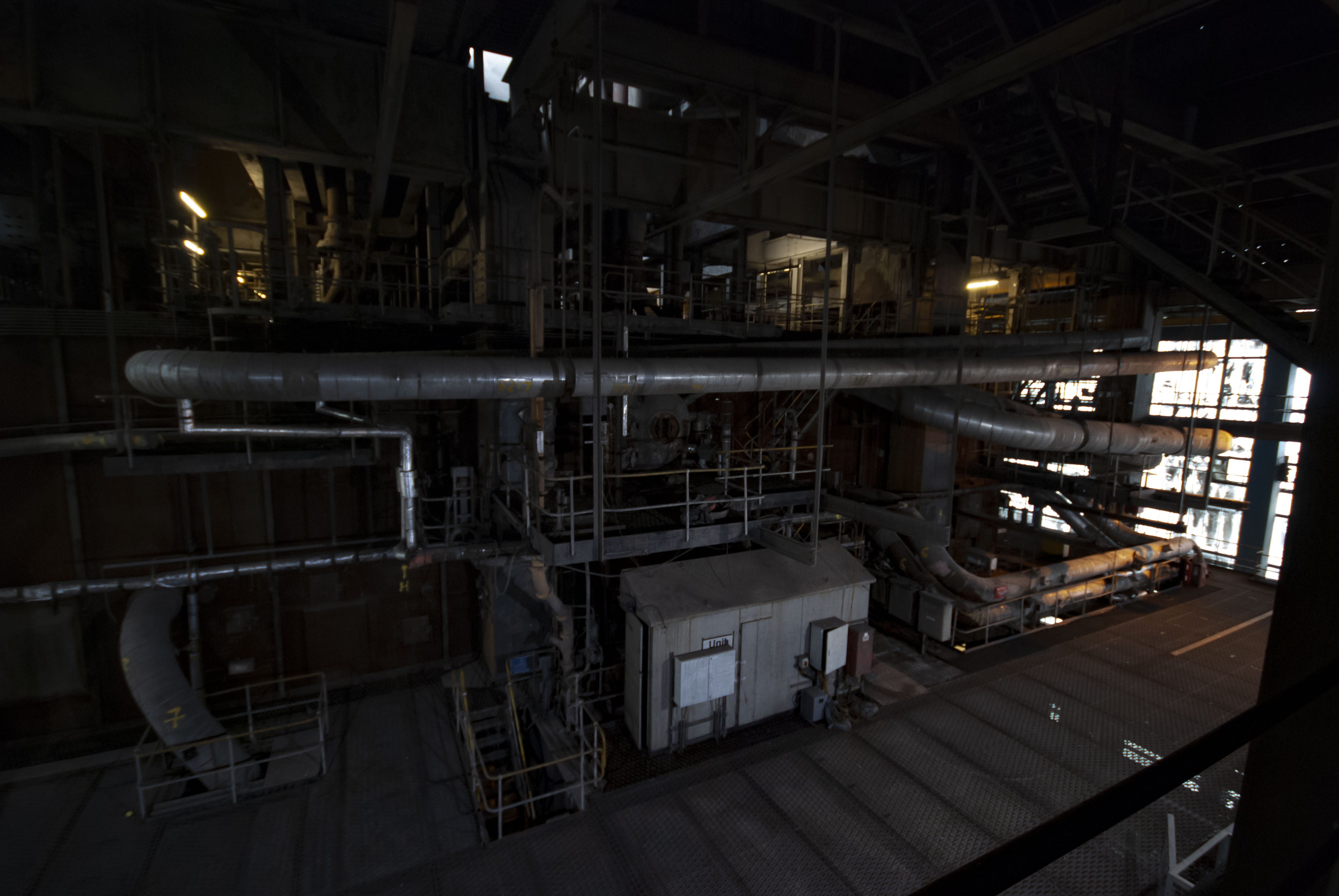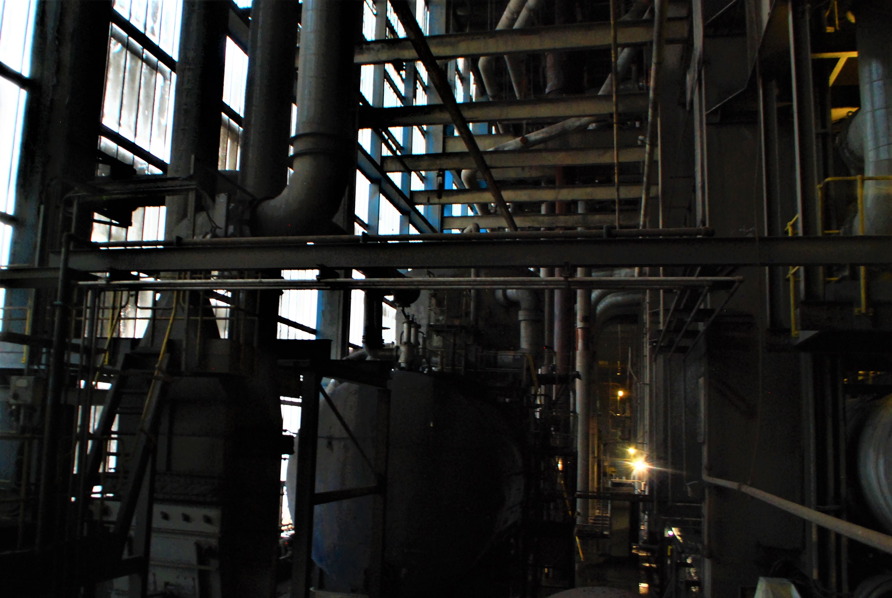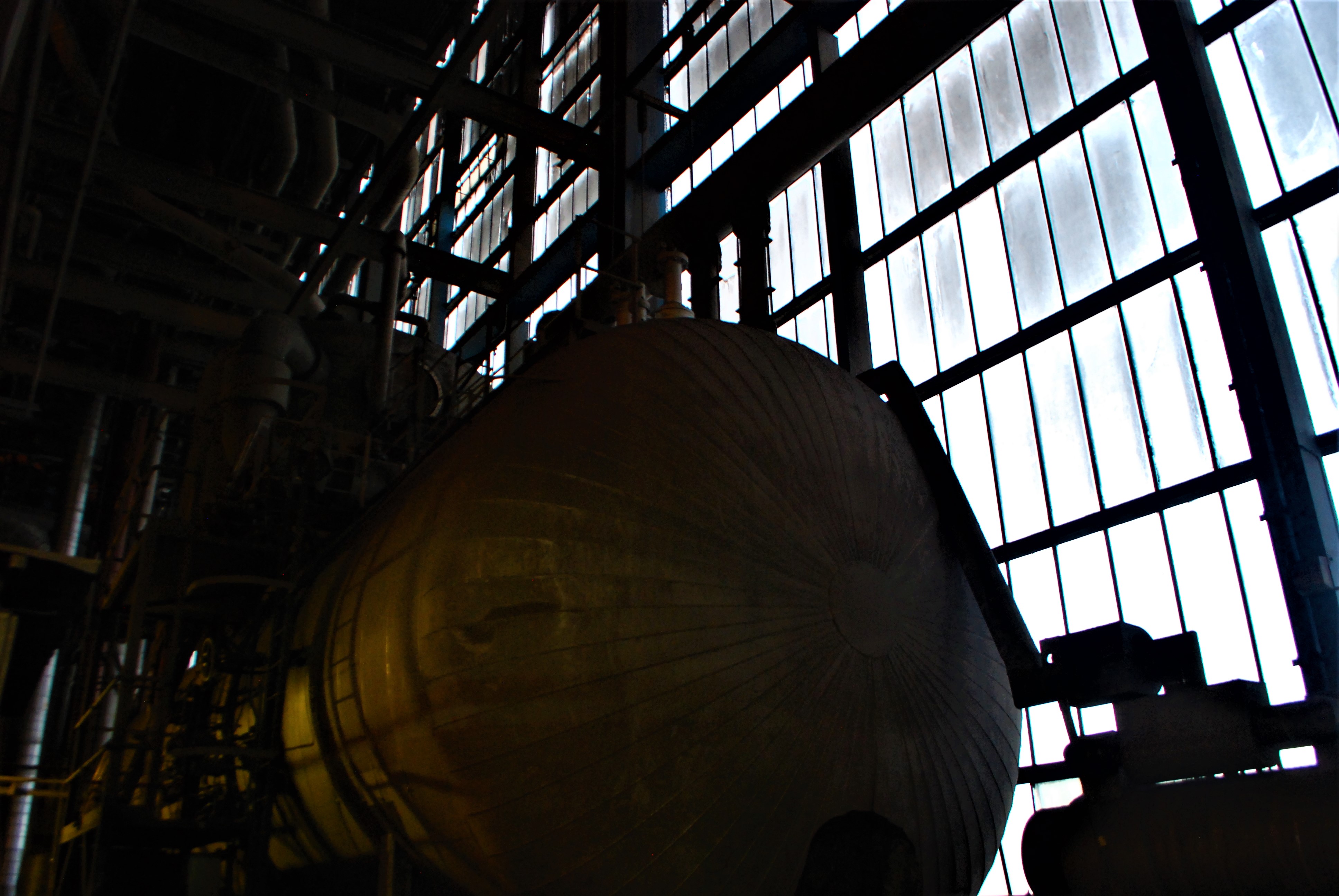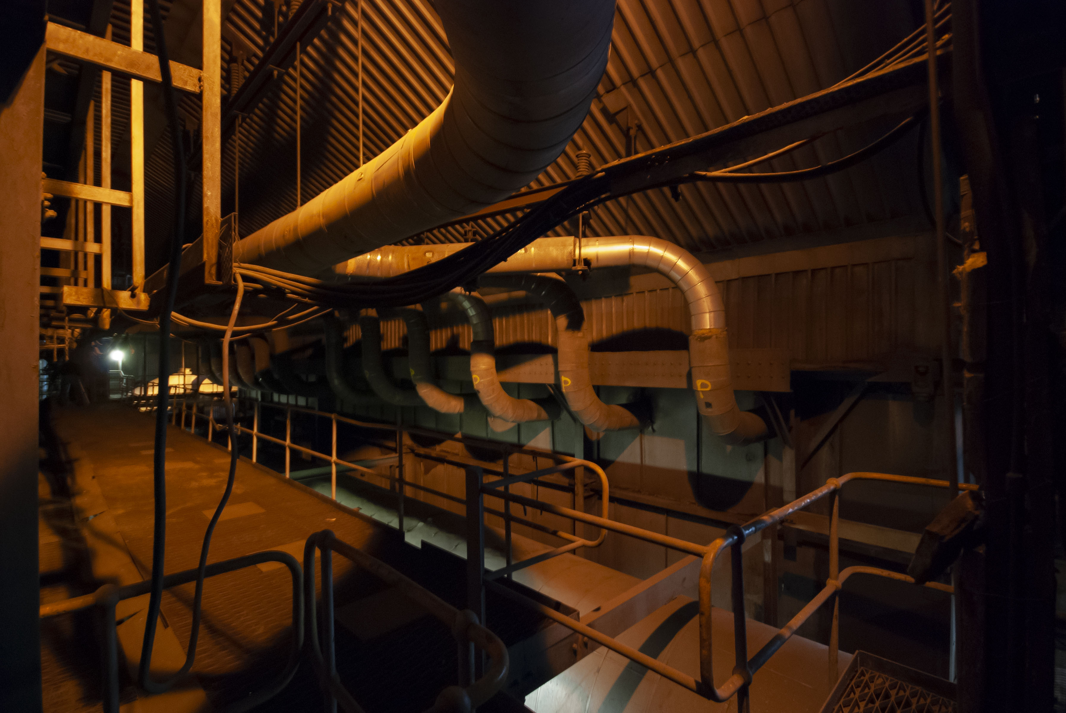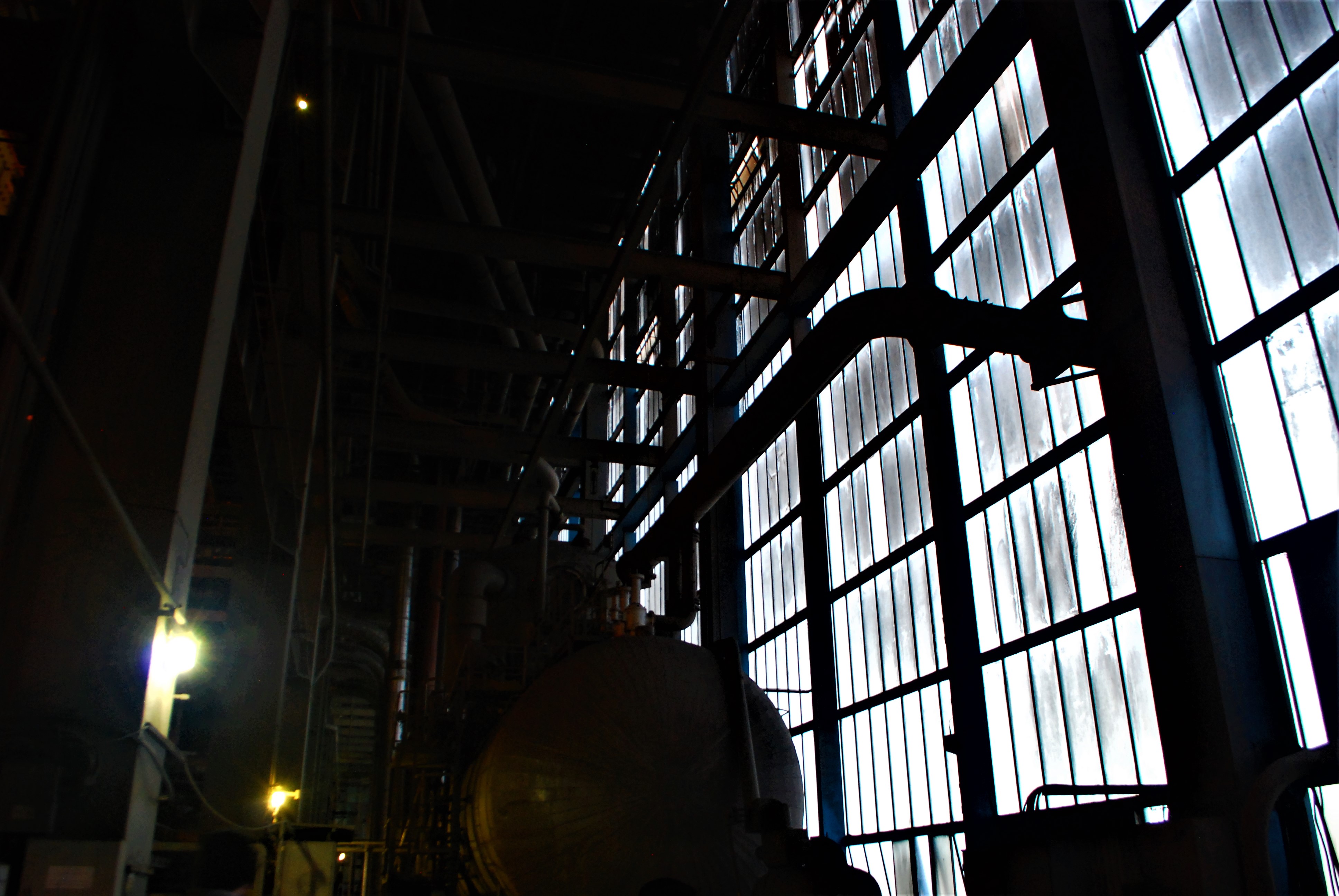 The boiler house of the power station. Dark and dusty.