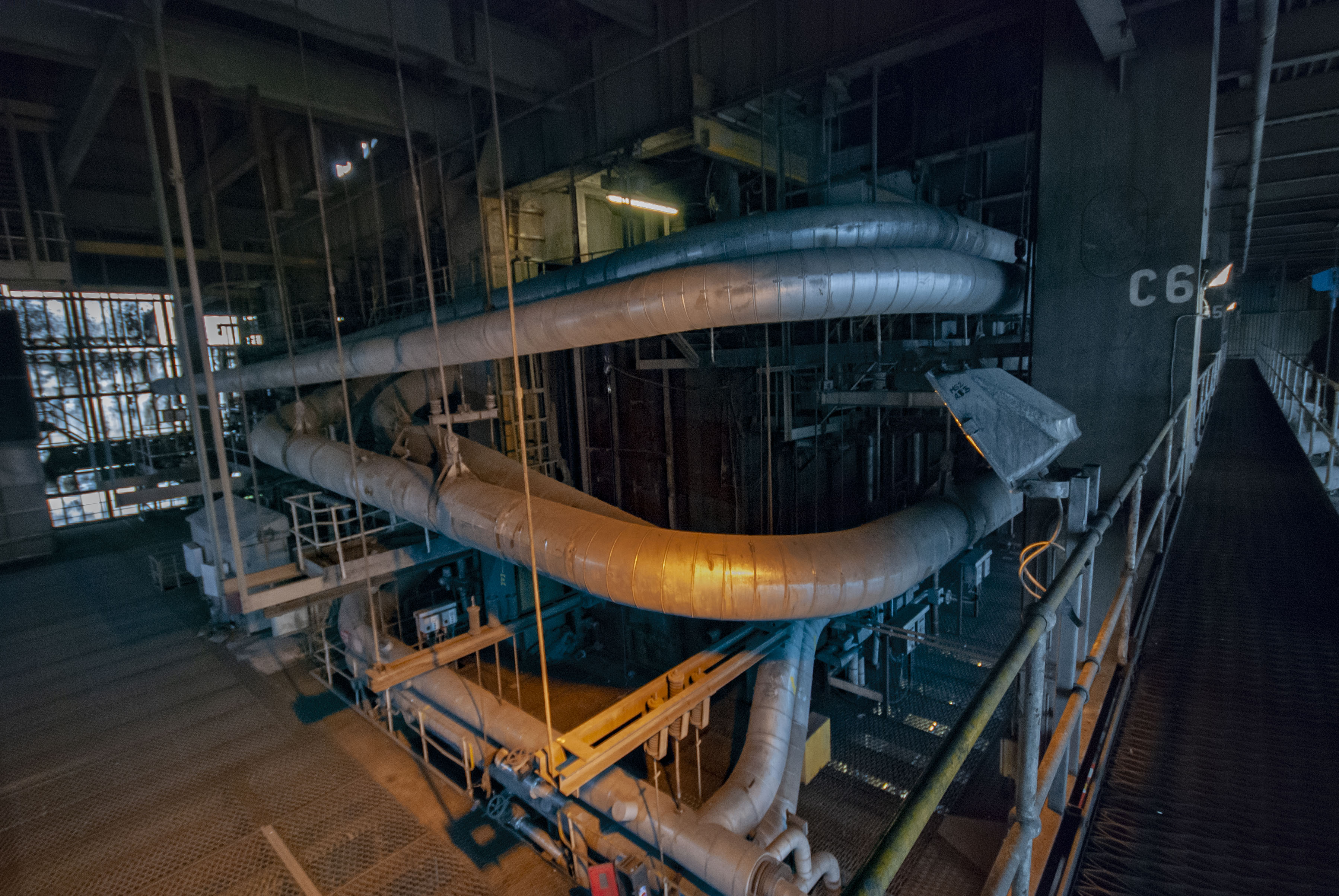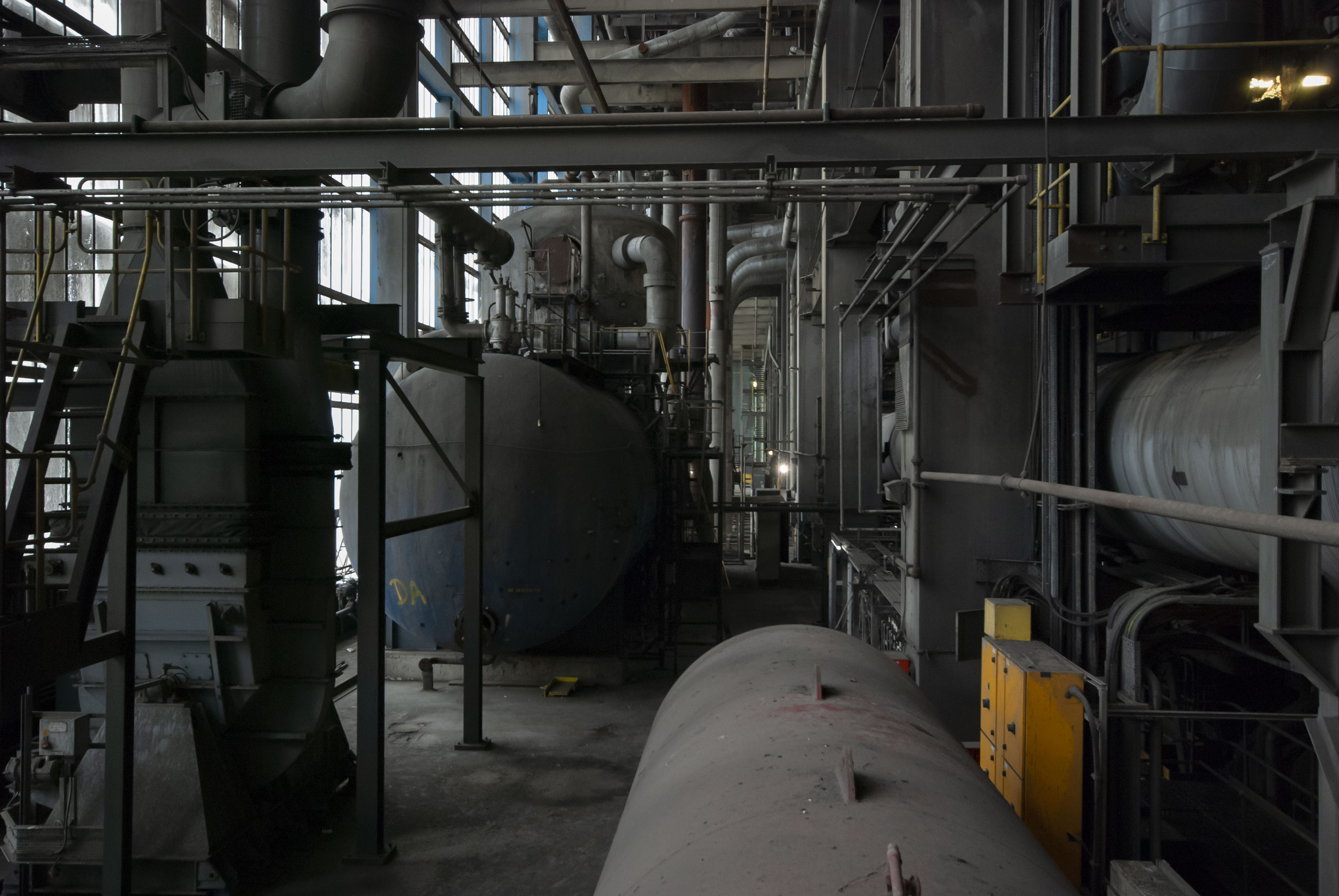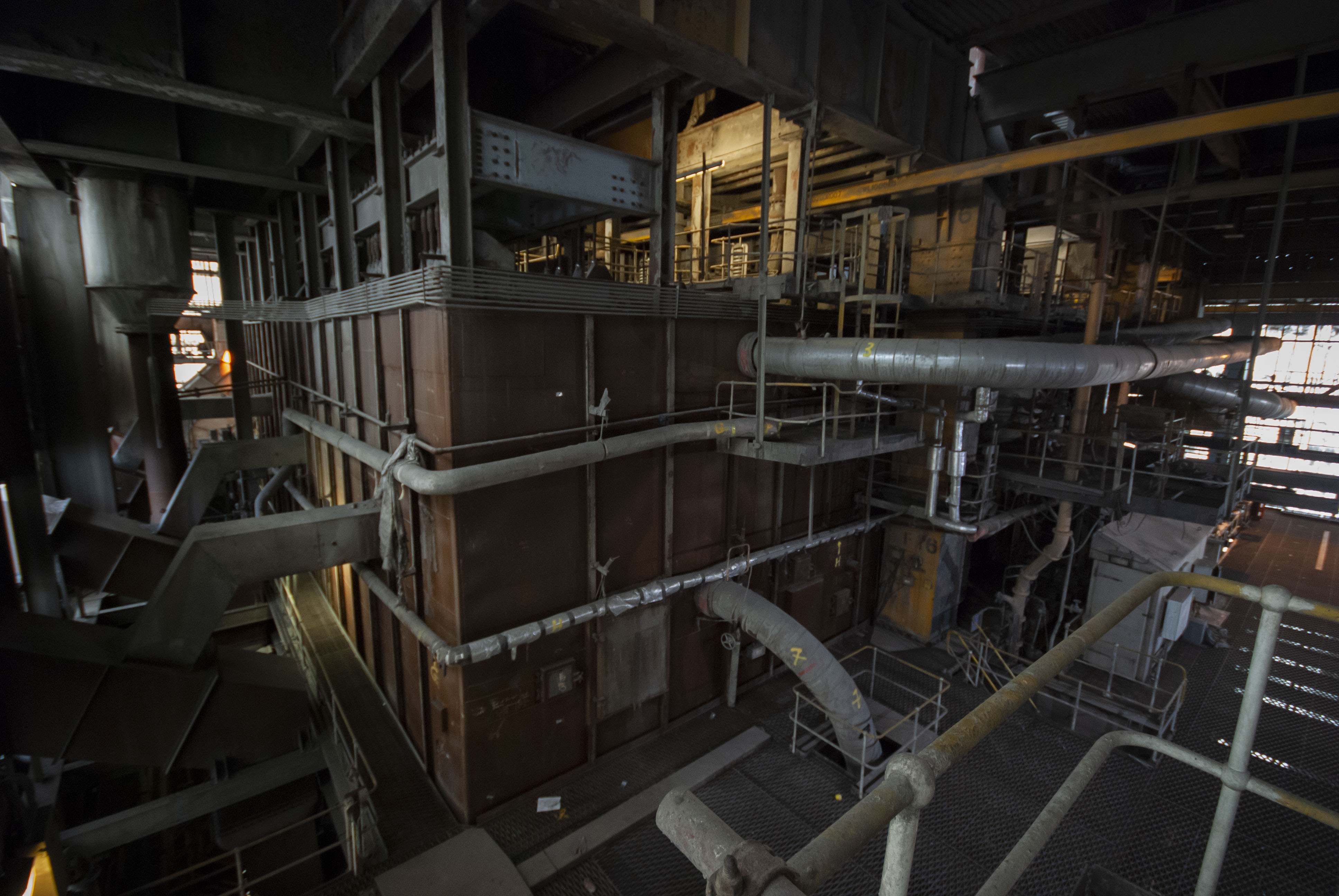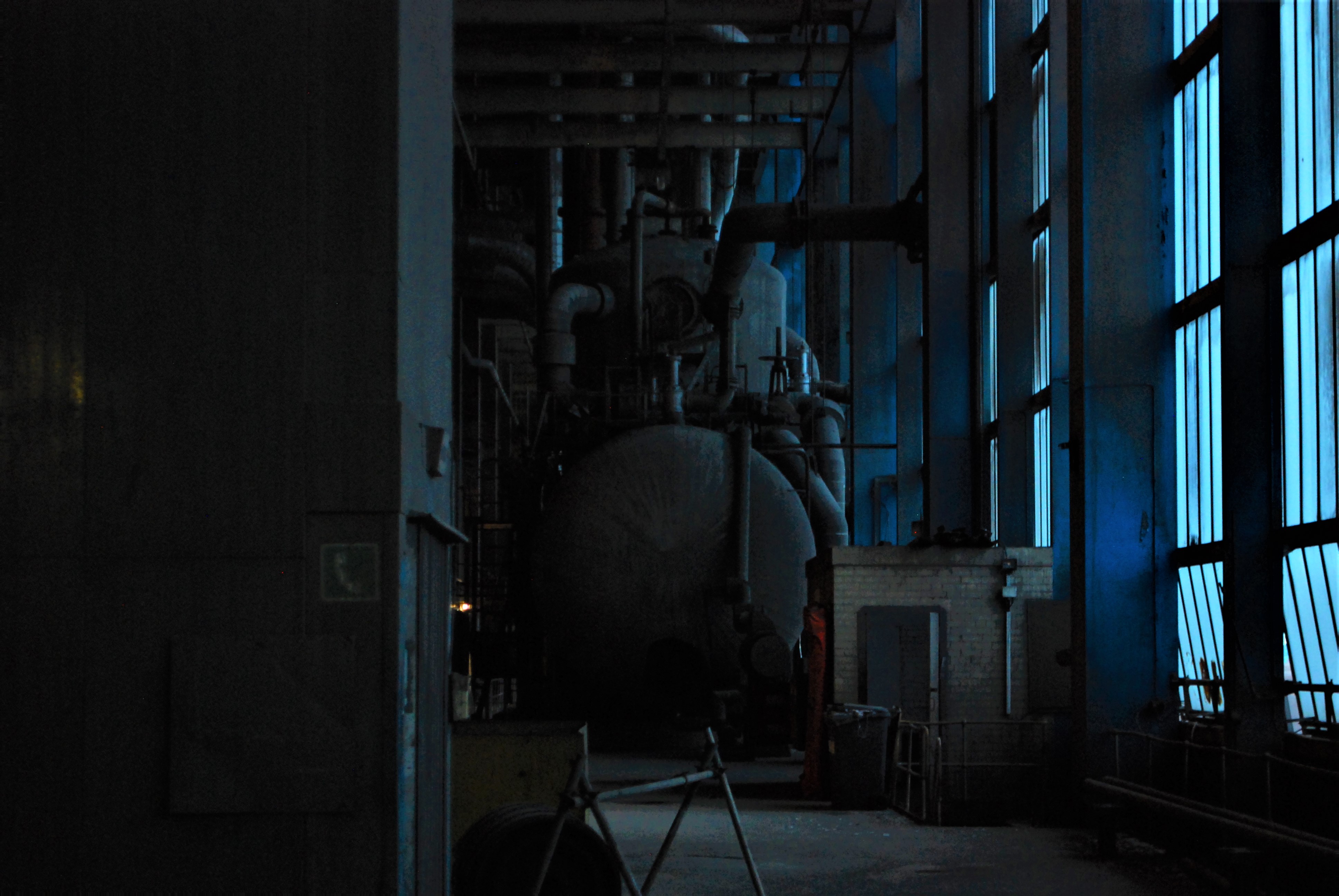 The boiler house of the power station. Dark and dusty.