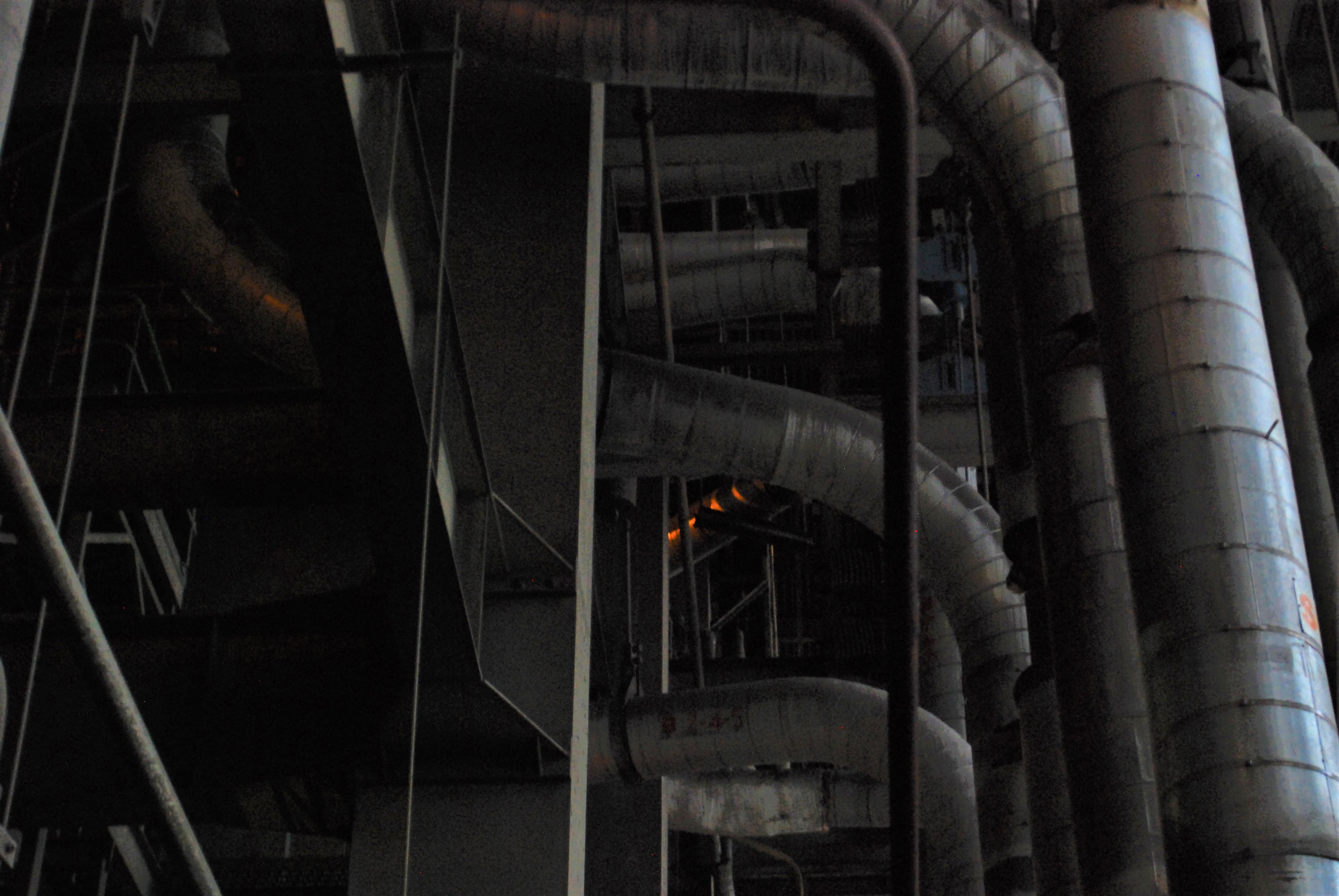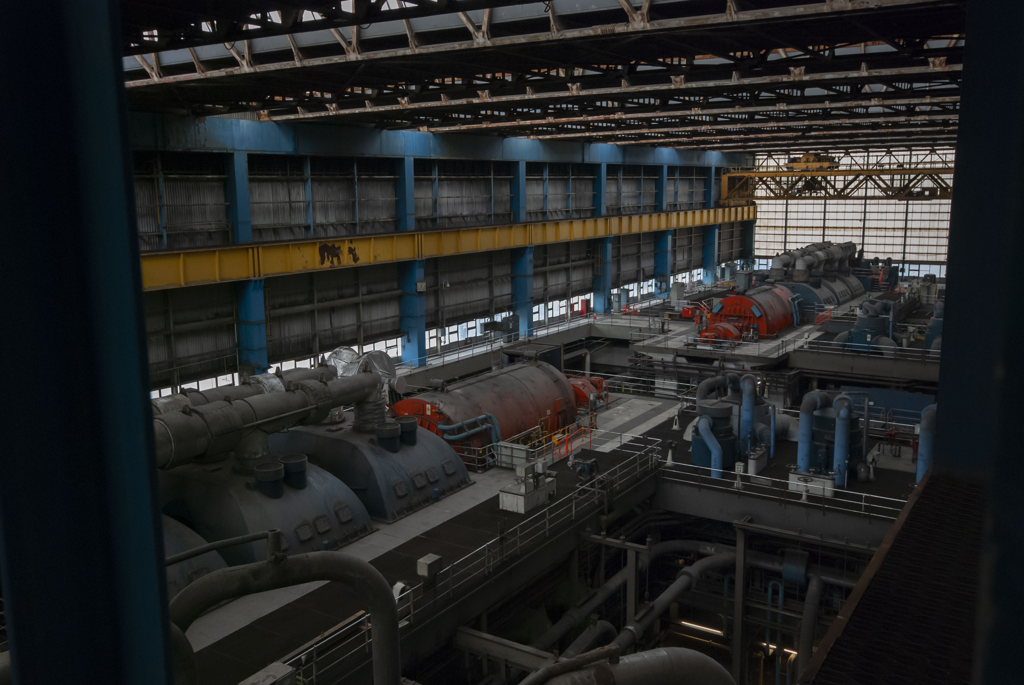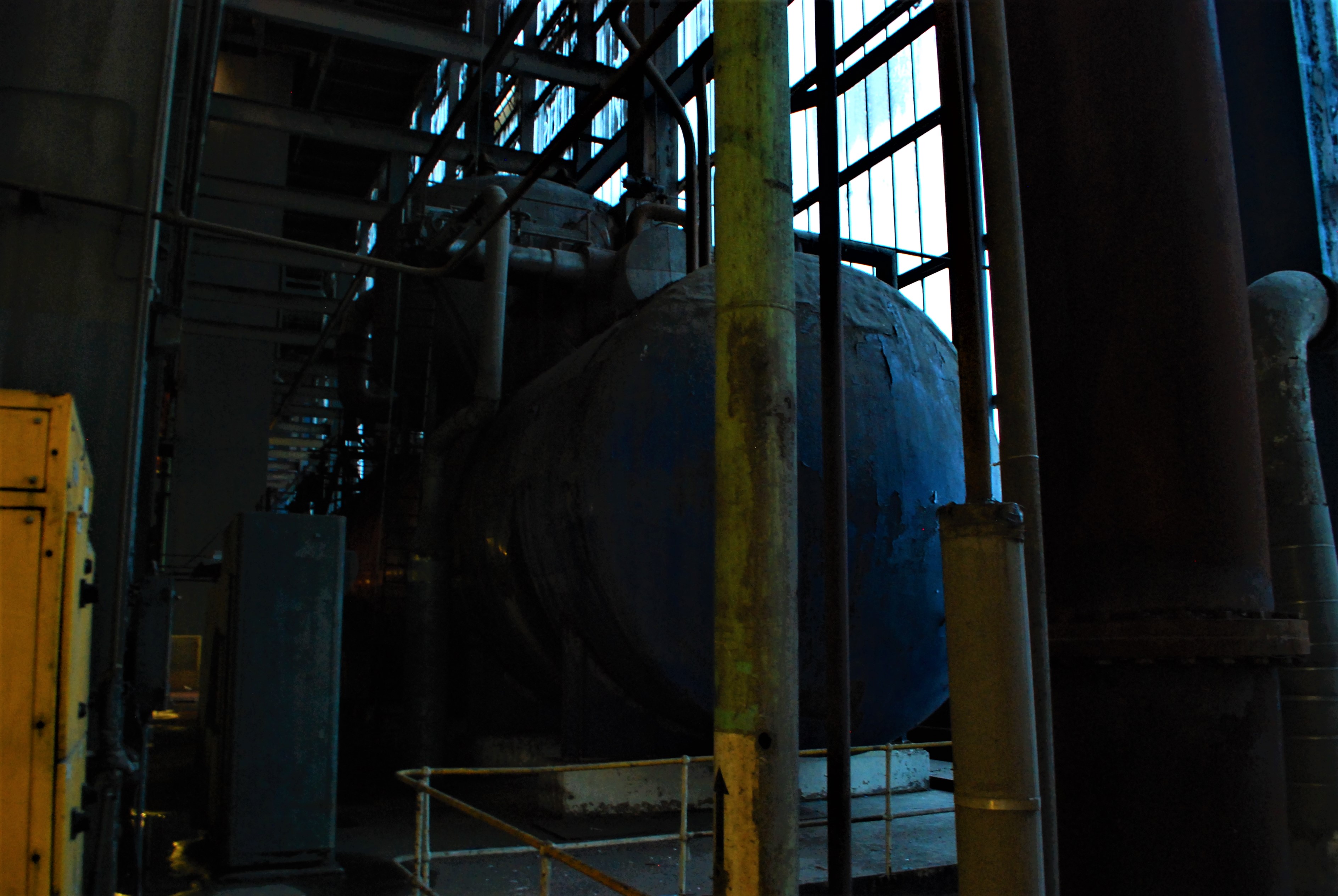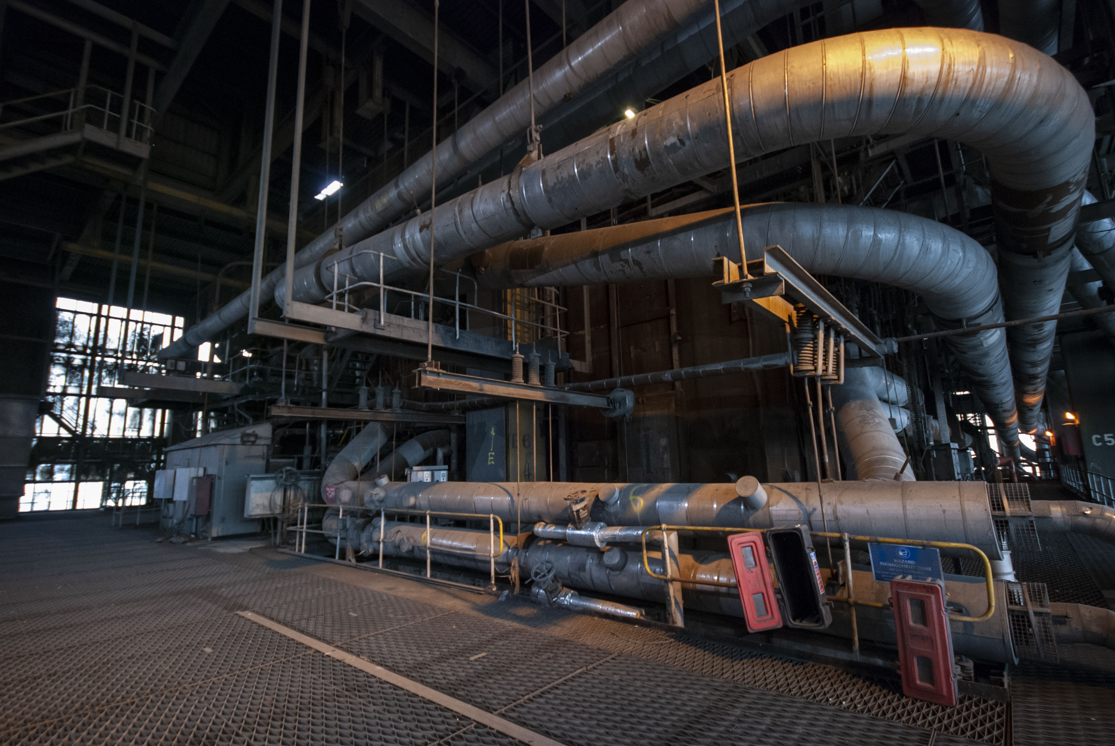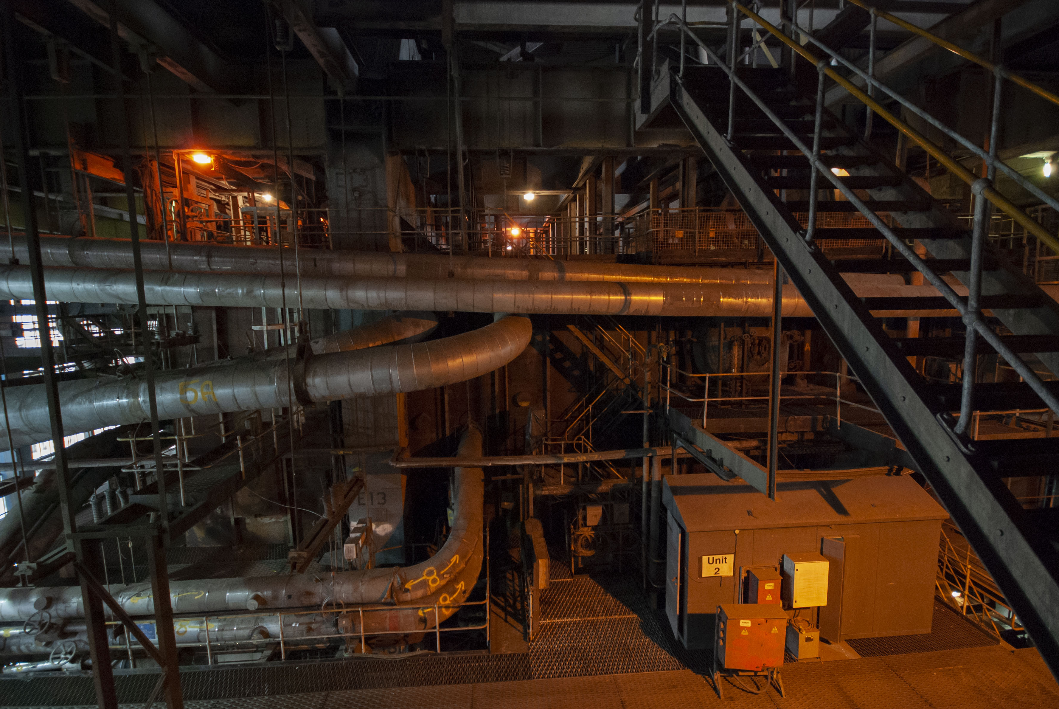 The boiler house of the power station. Dark and dusty.