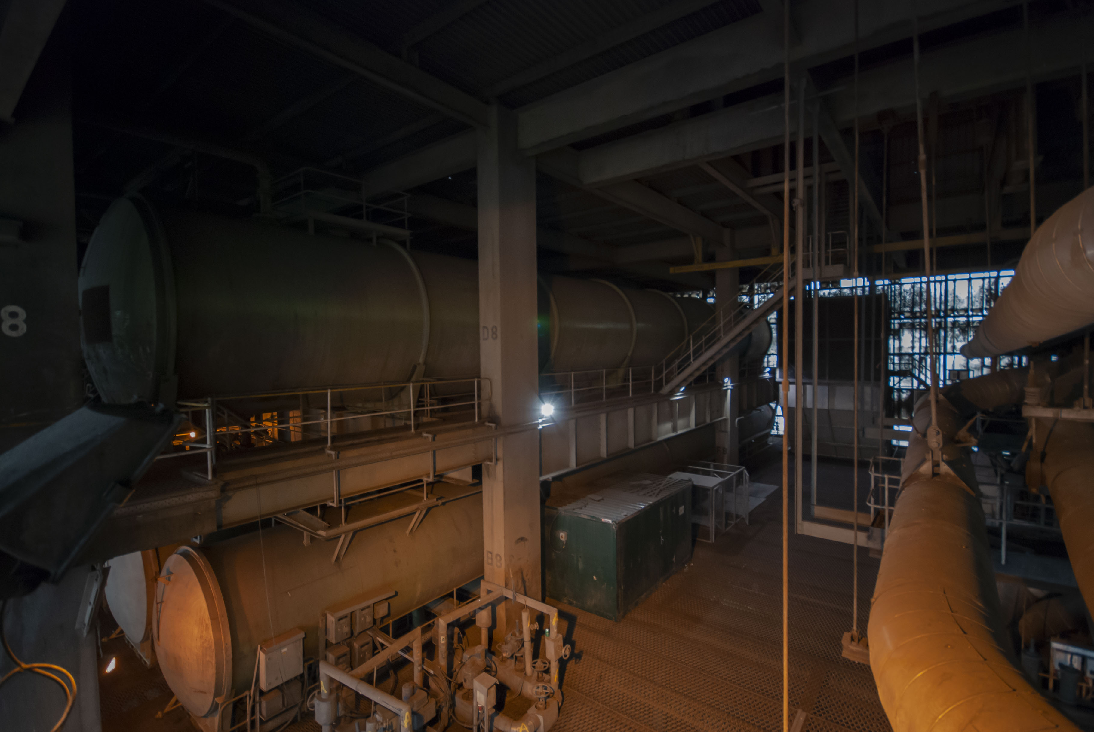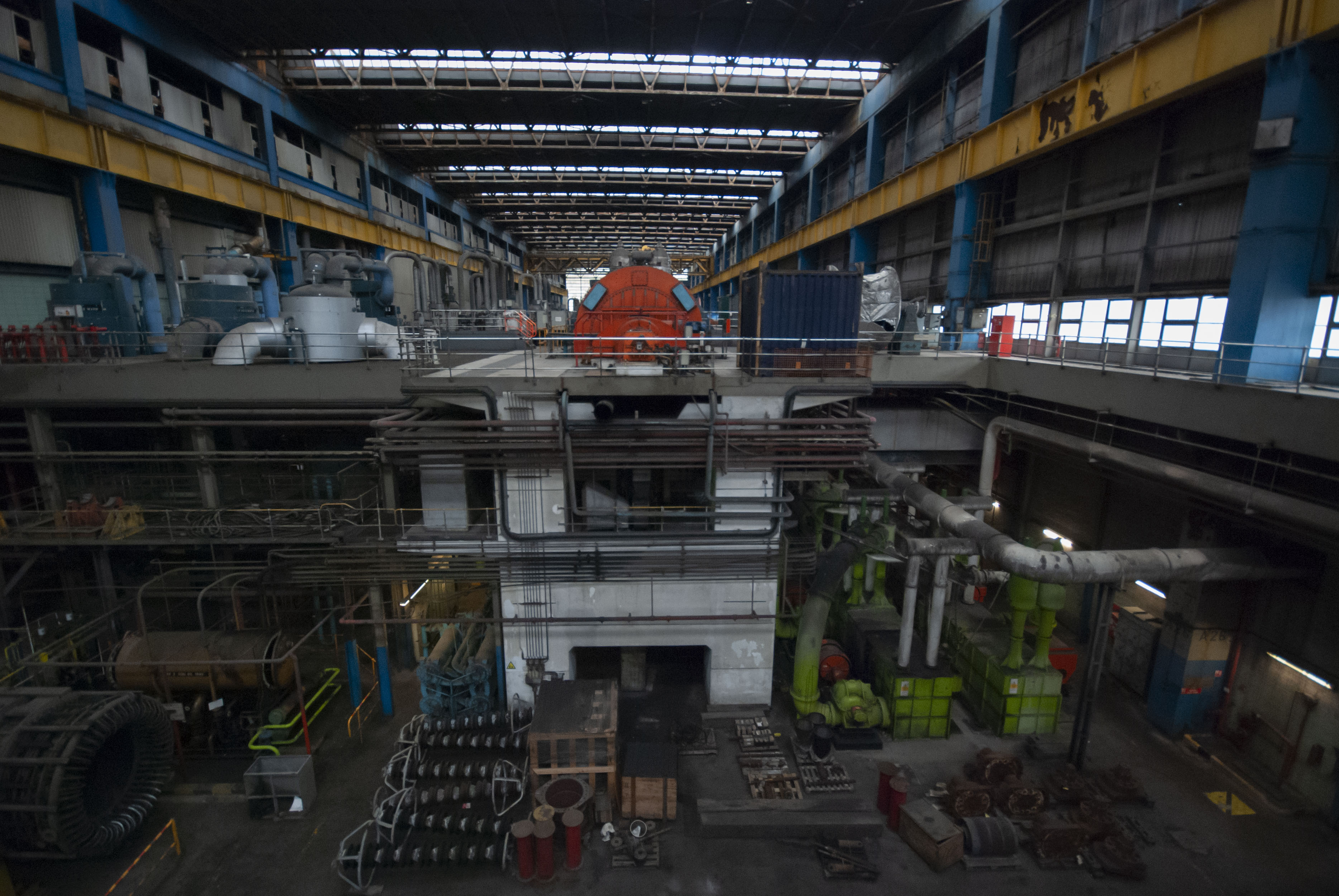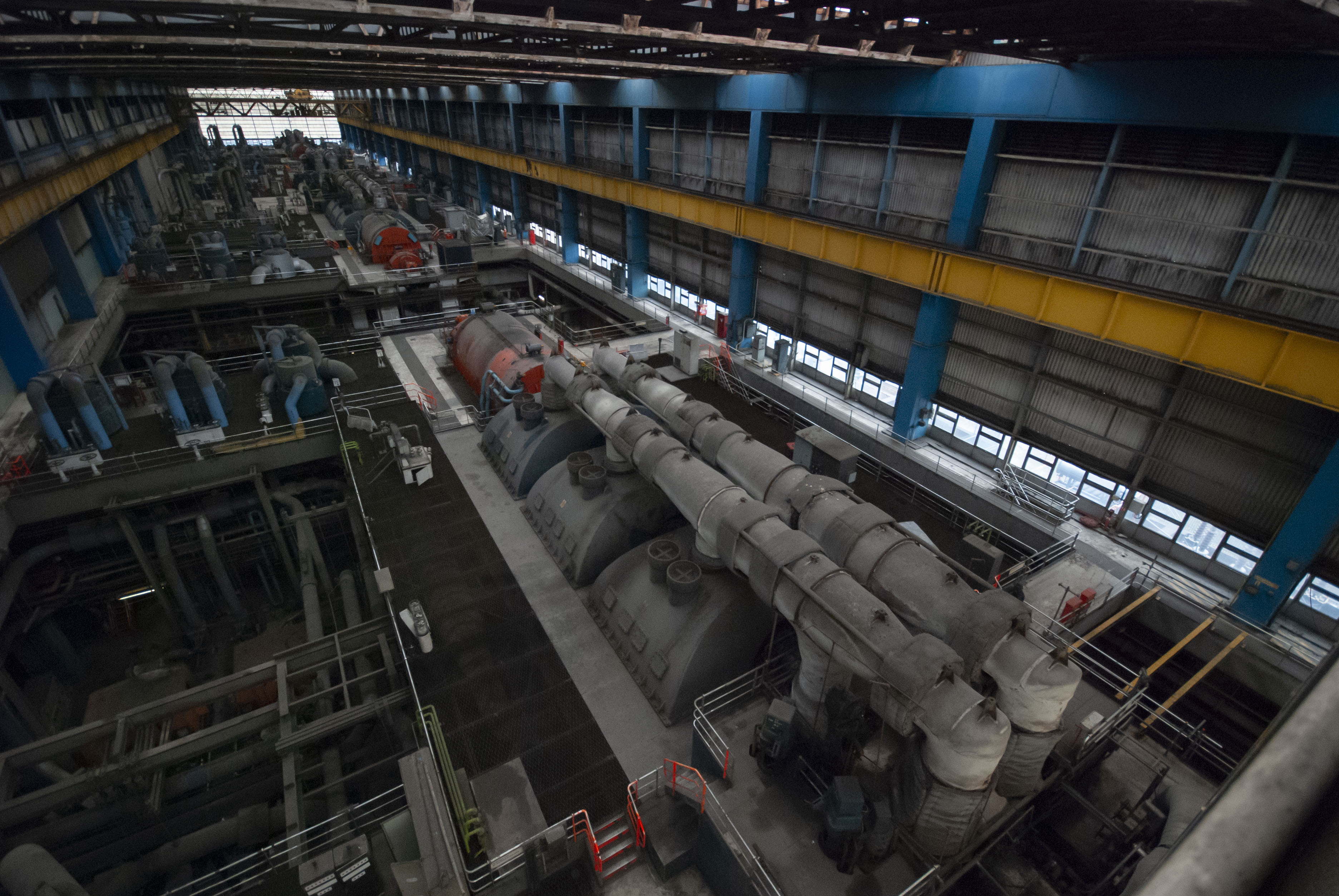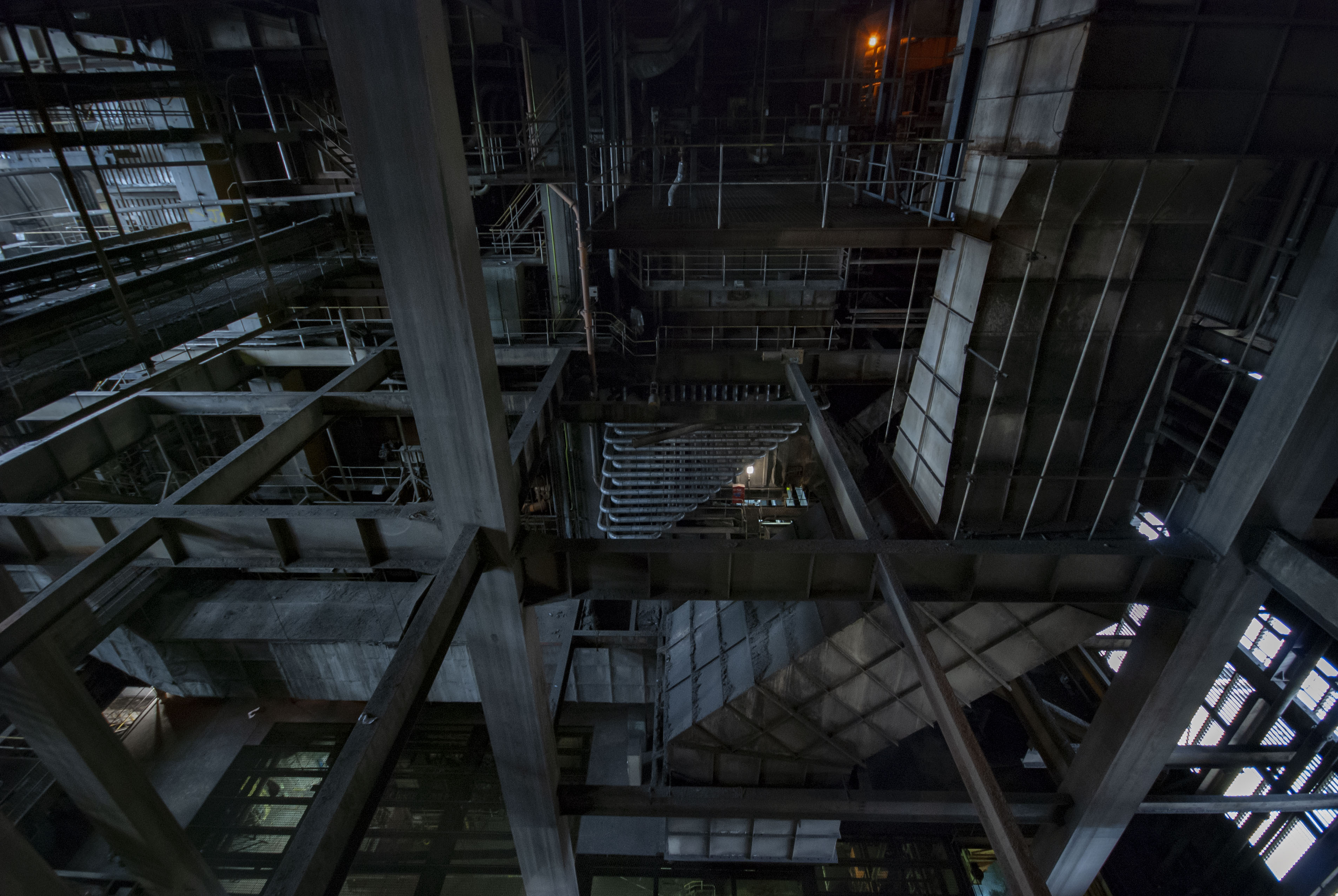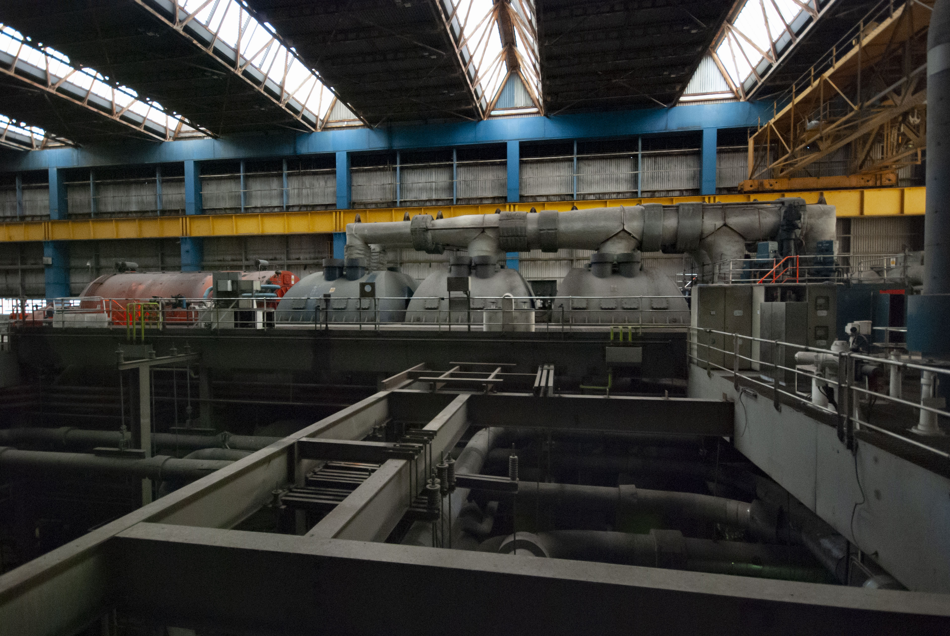 The boiler house of the power station. Dark and dusty.
