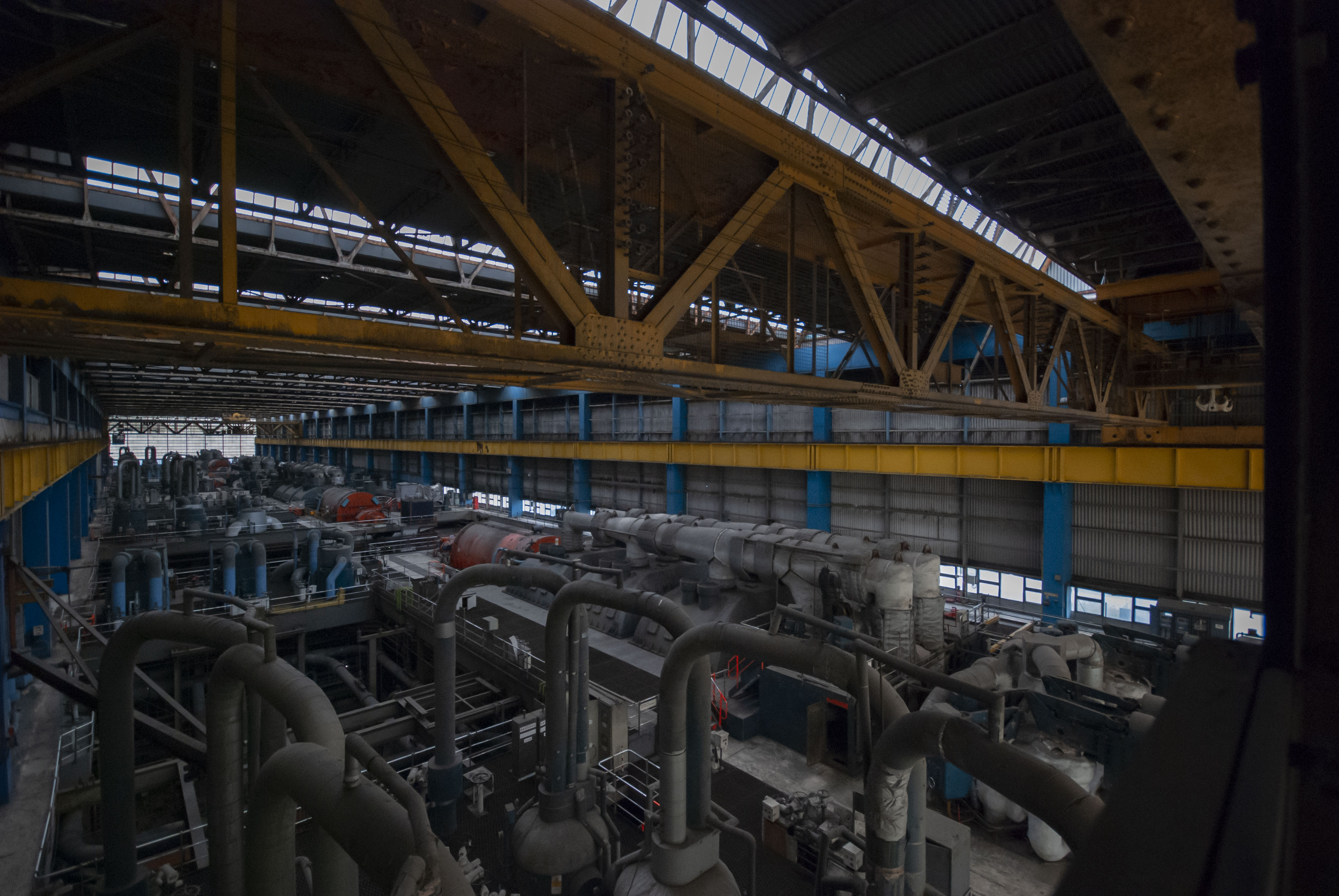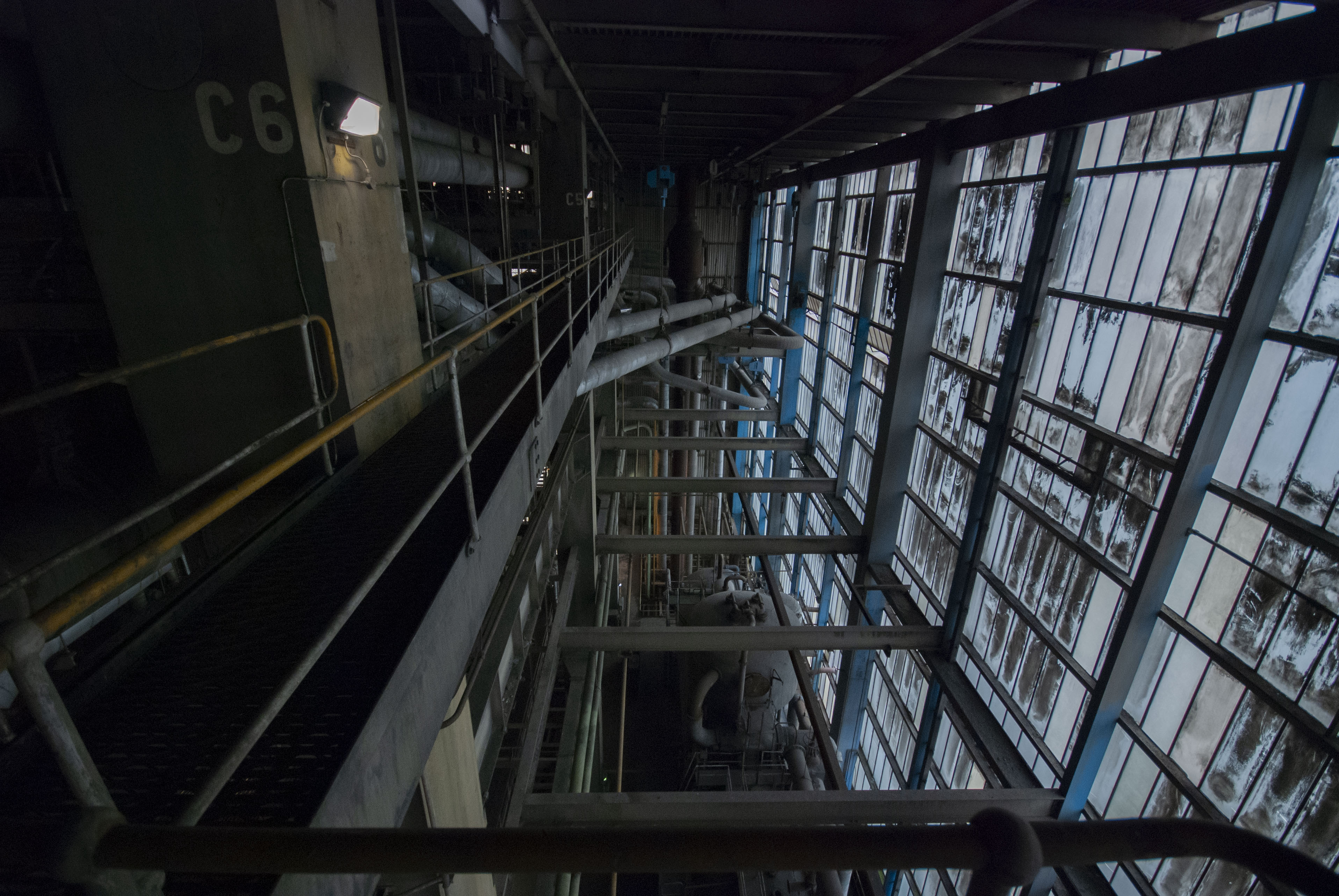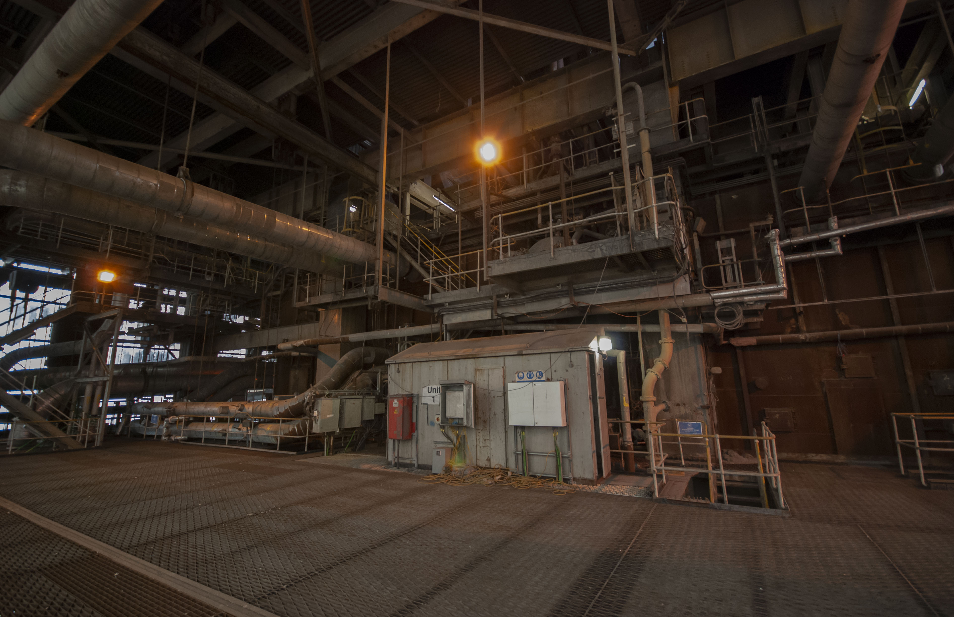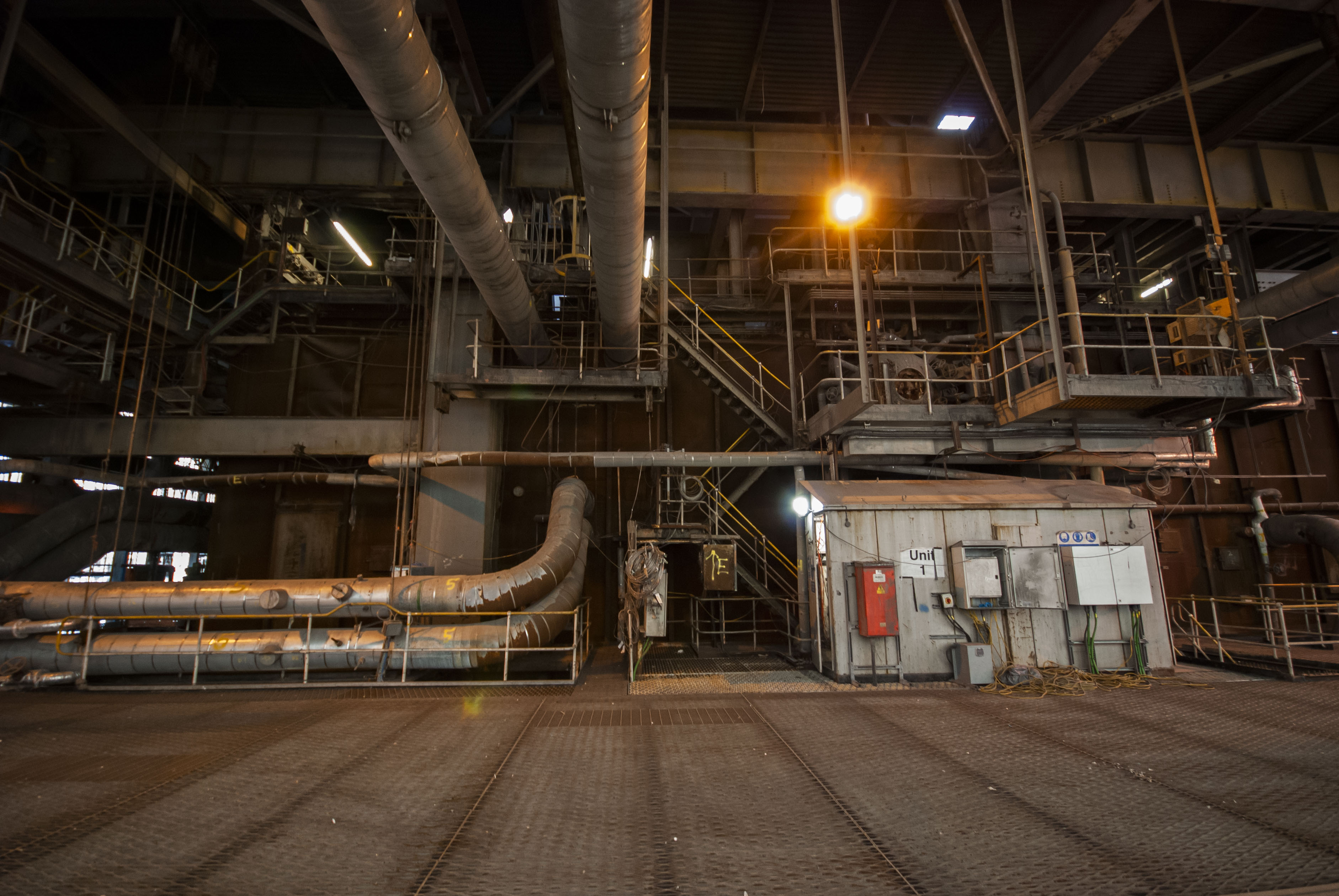 The boiler house of the power station. Dark and dusty.