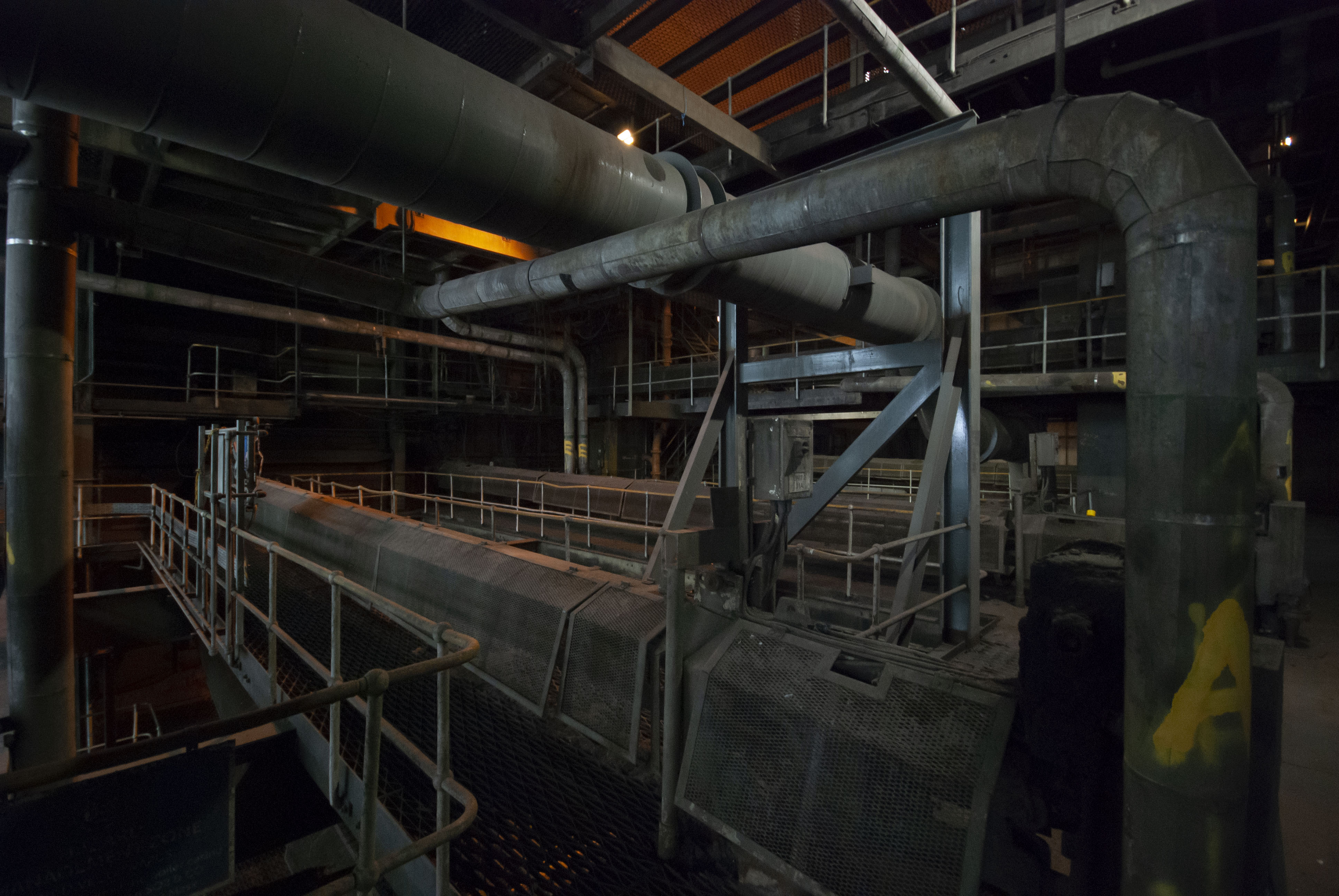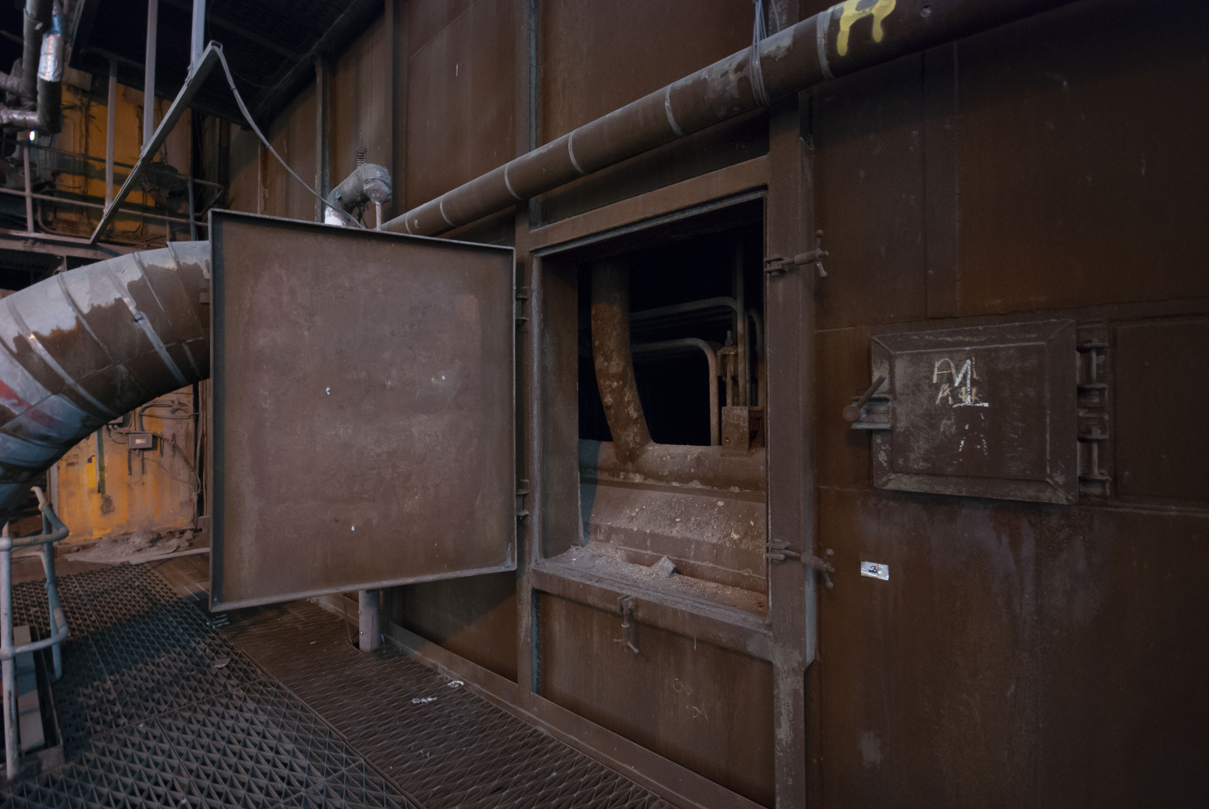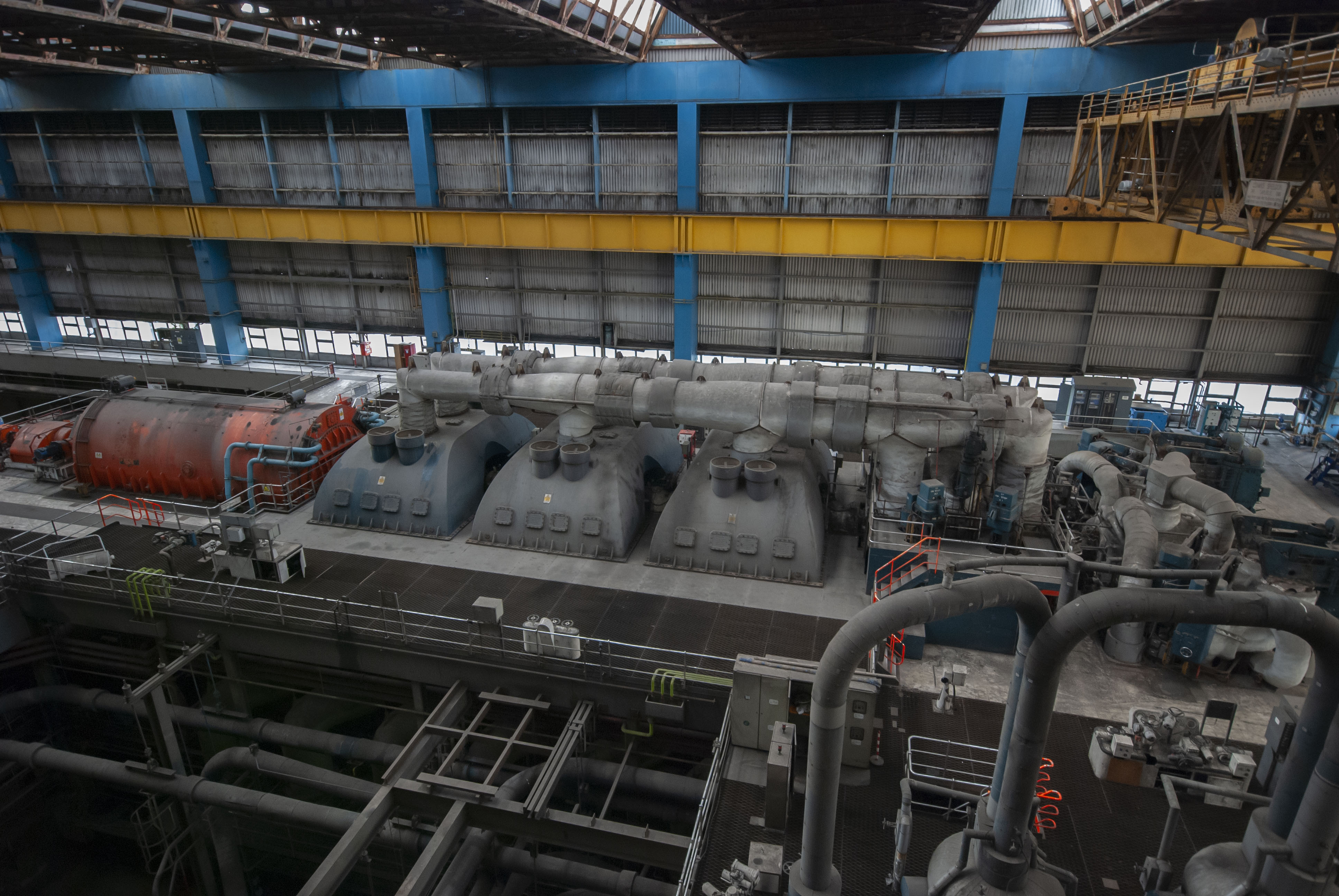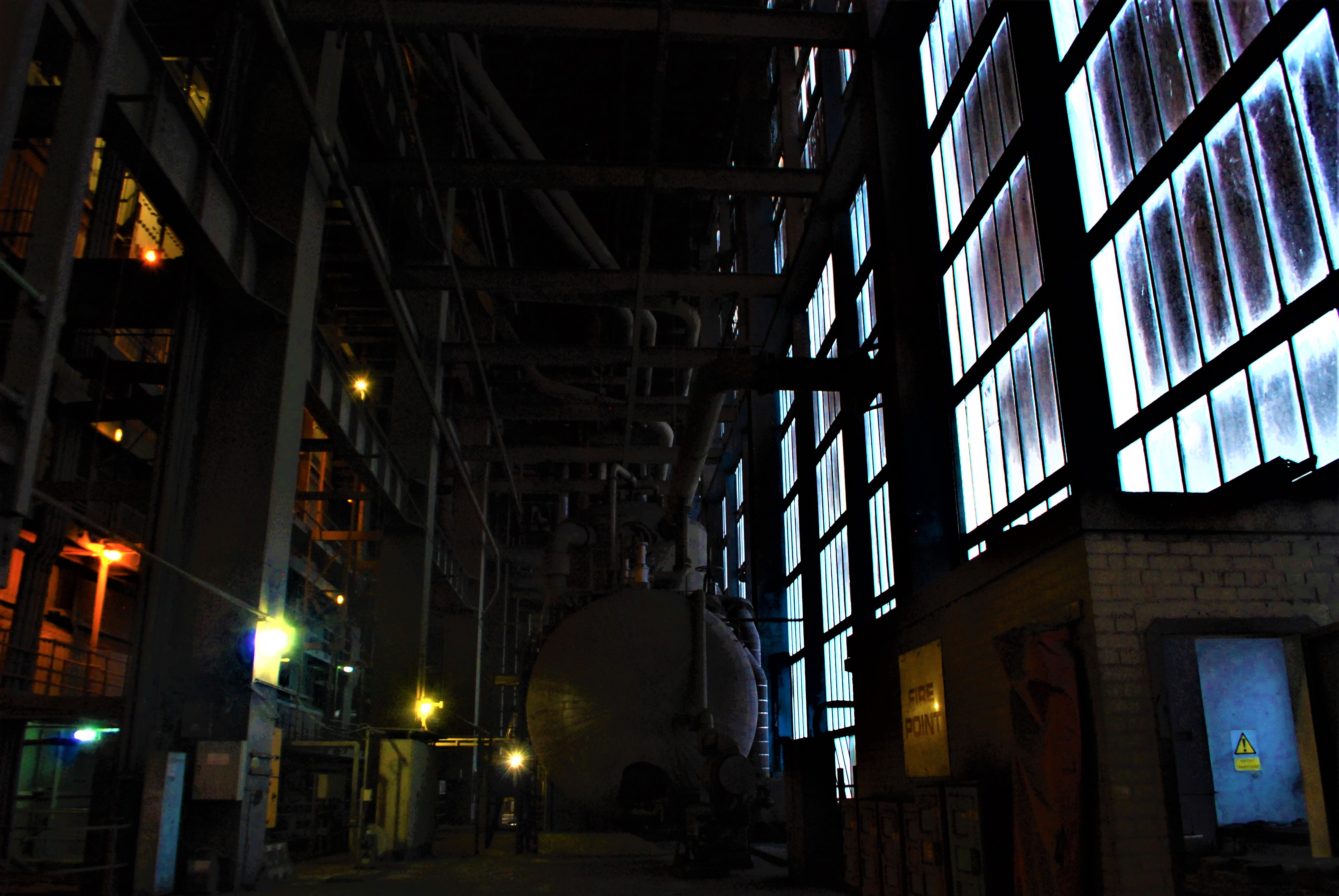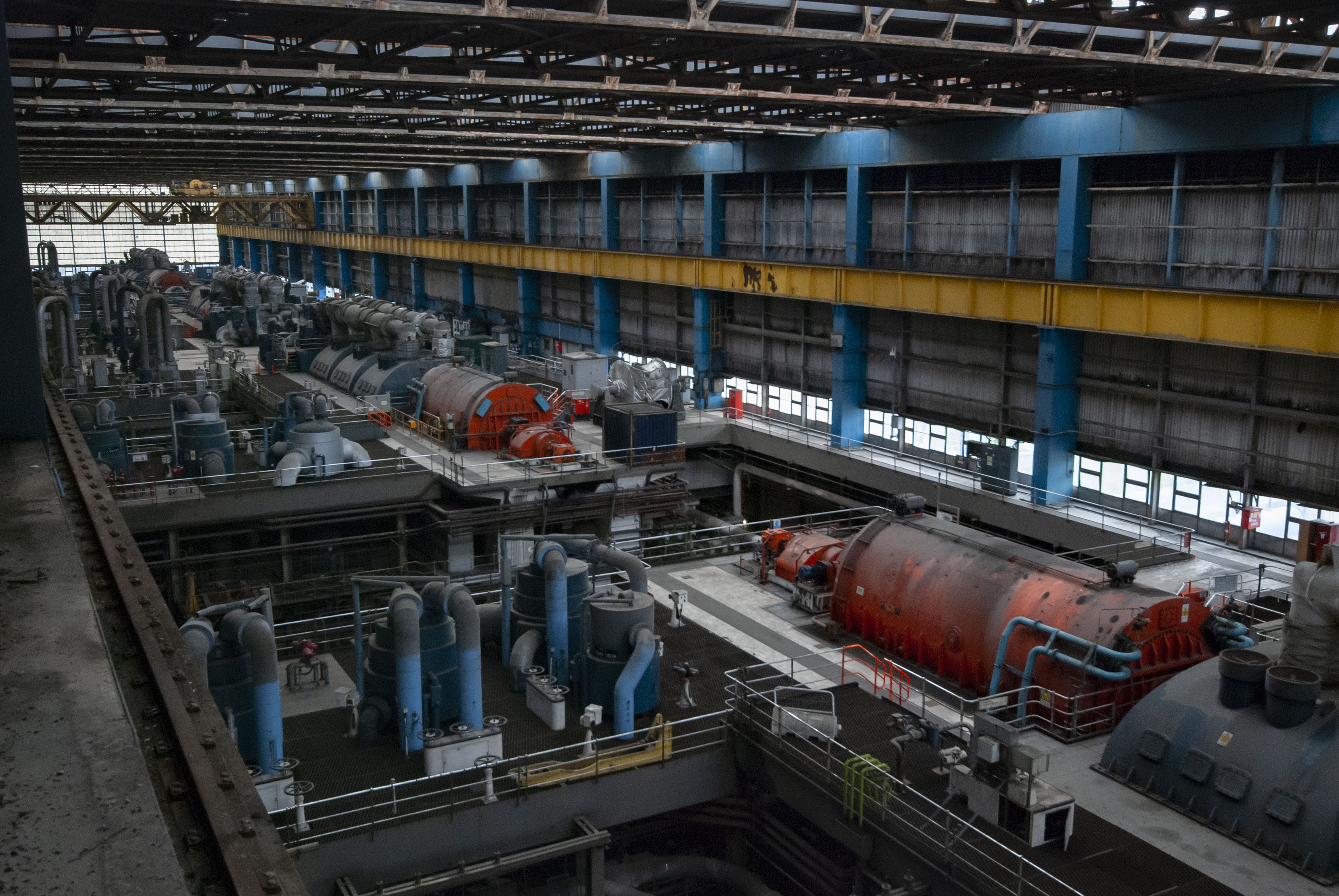 The boiler house of the power station. Dark and dusty.