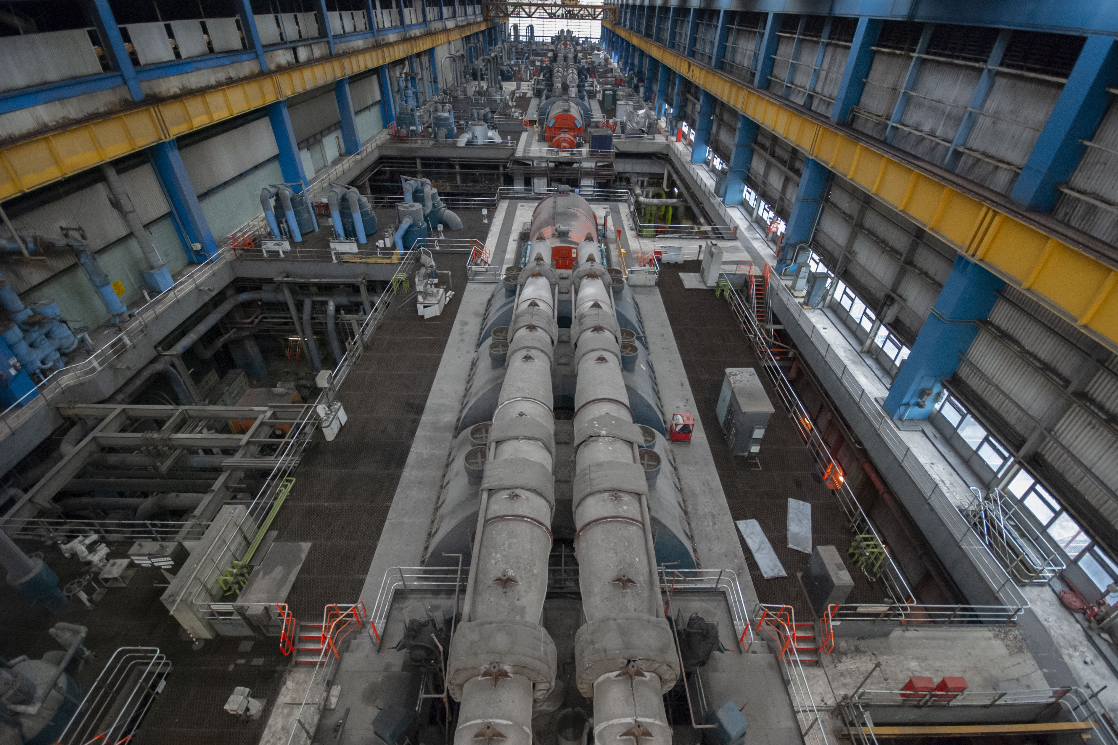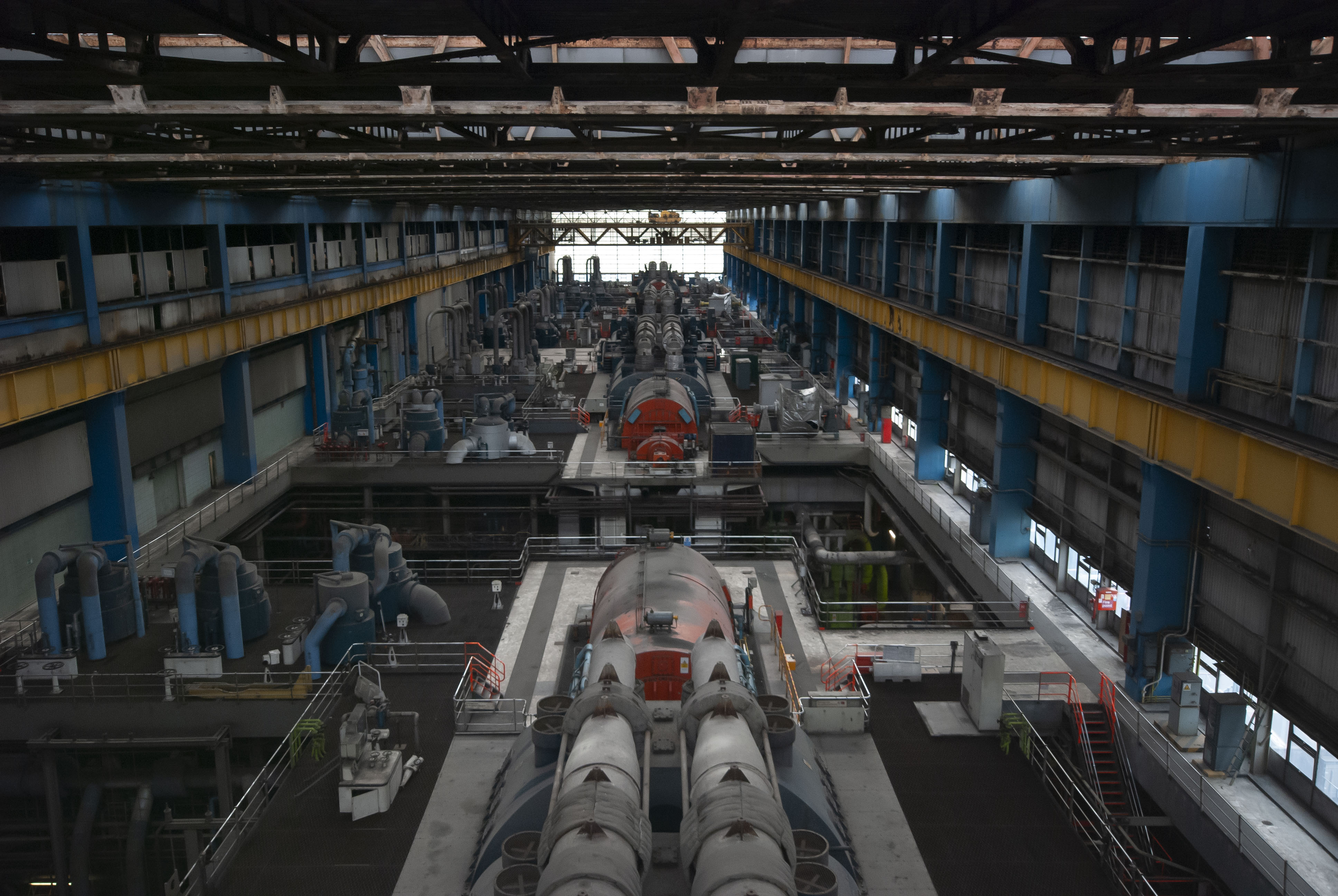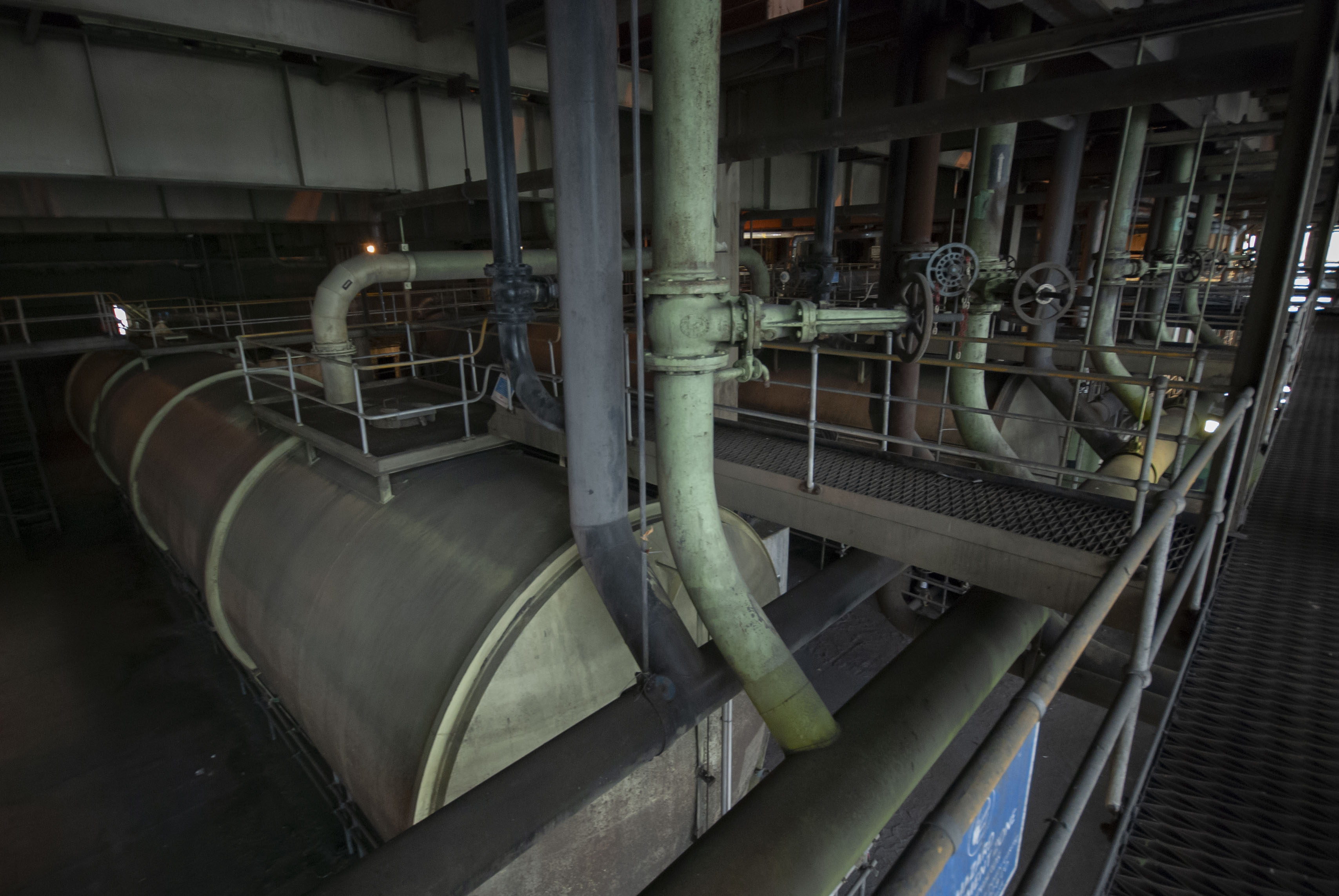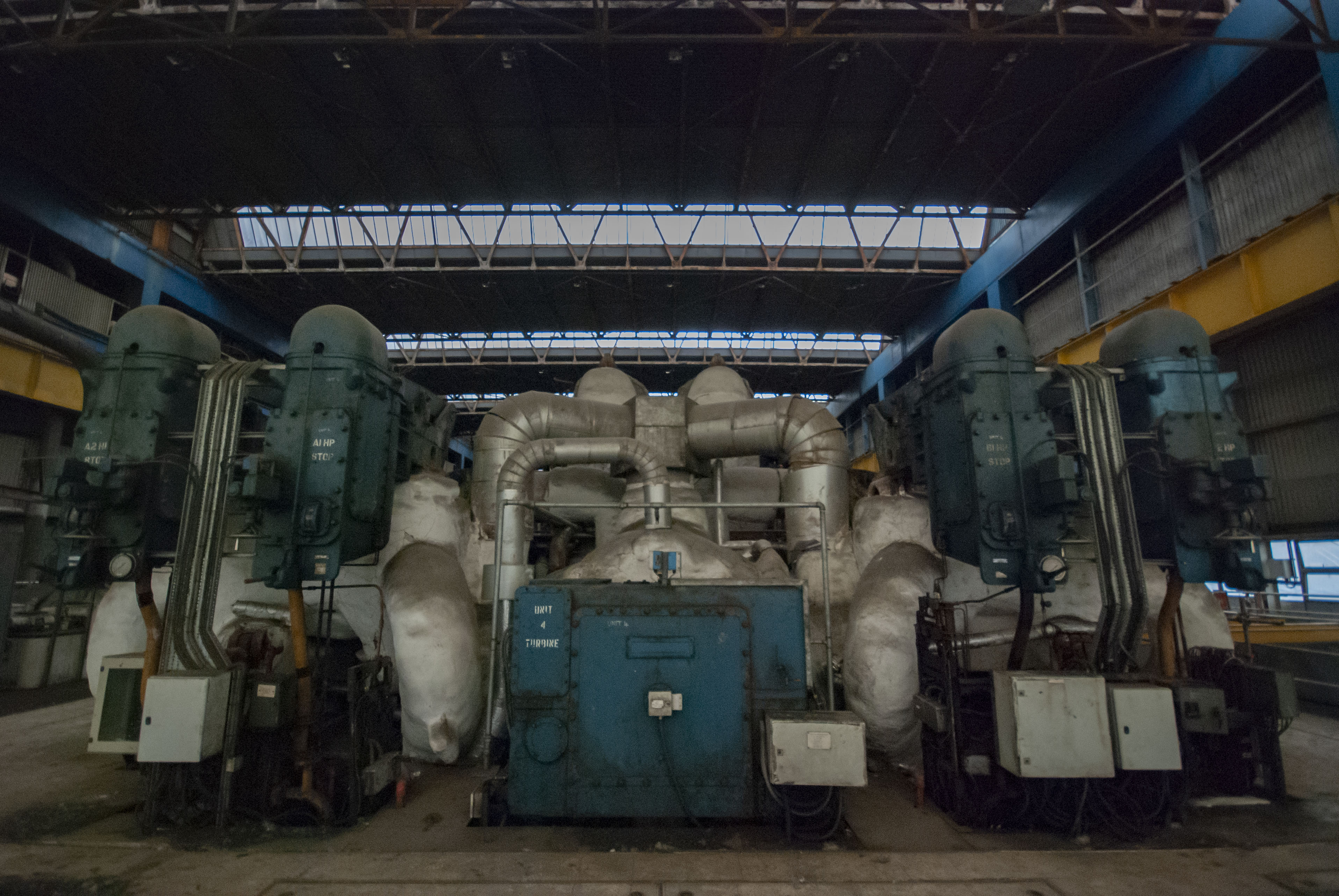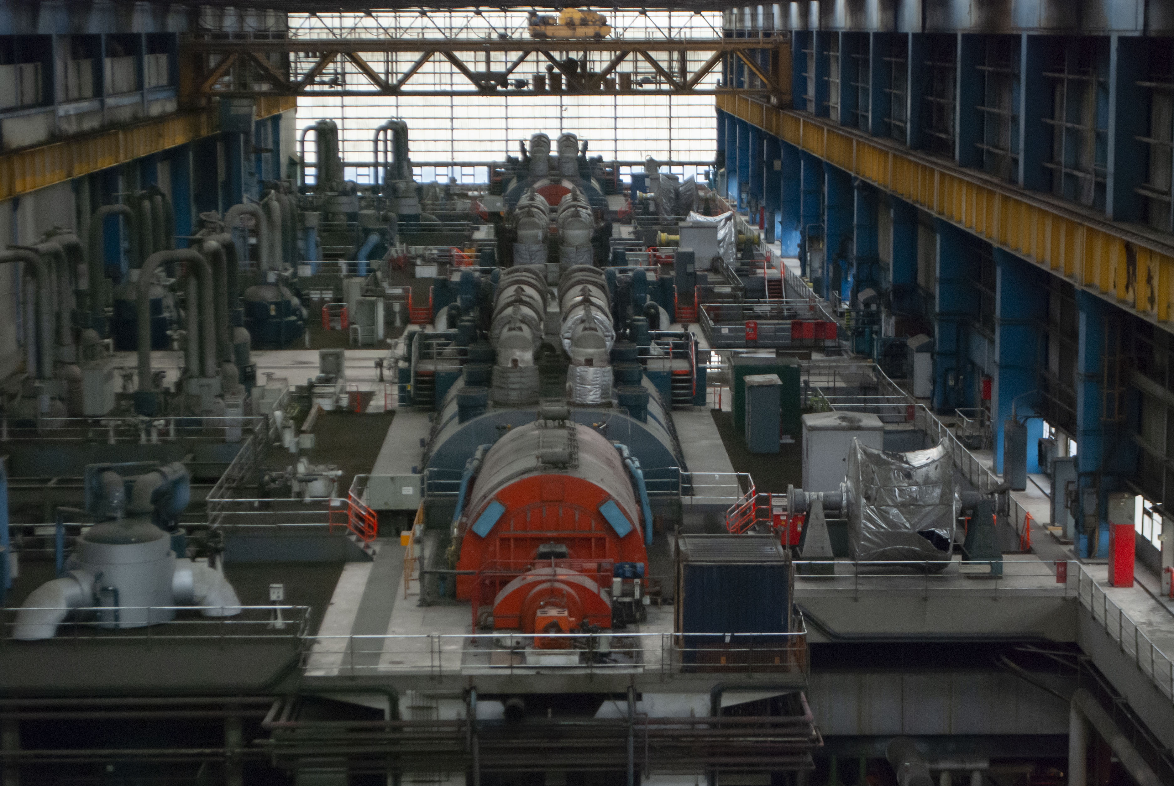 The boiler house of the power station. Dark and dusty.