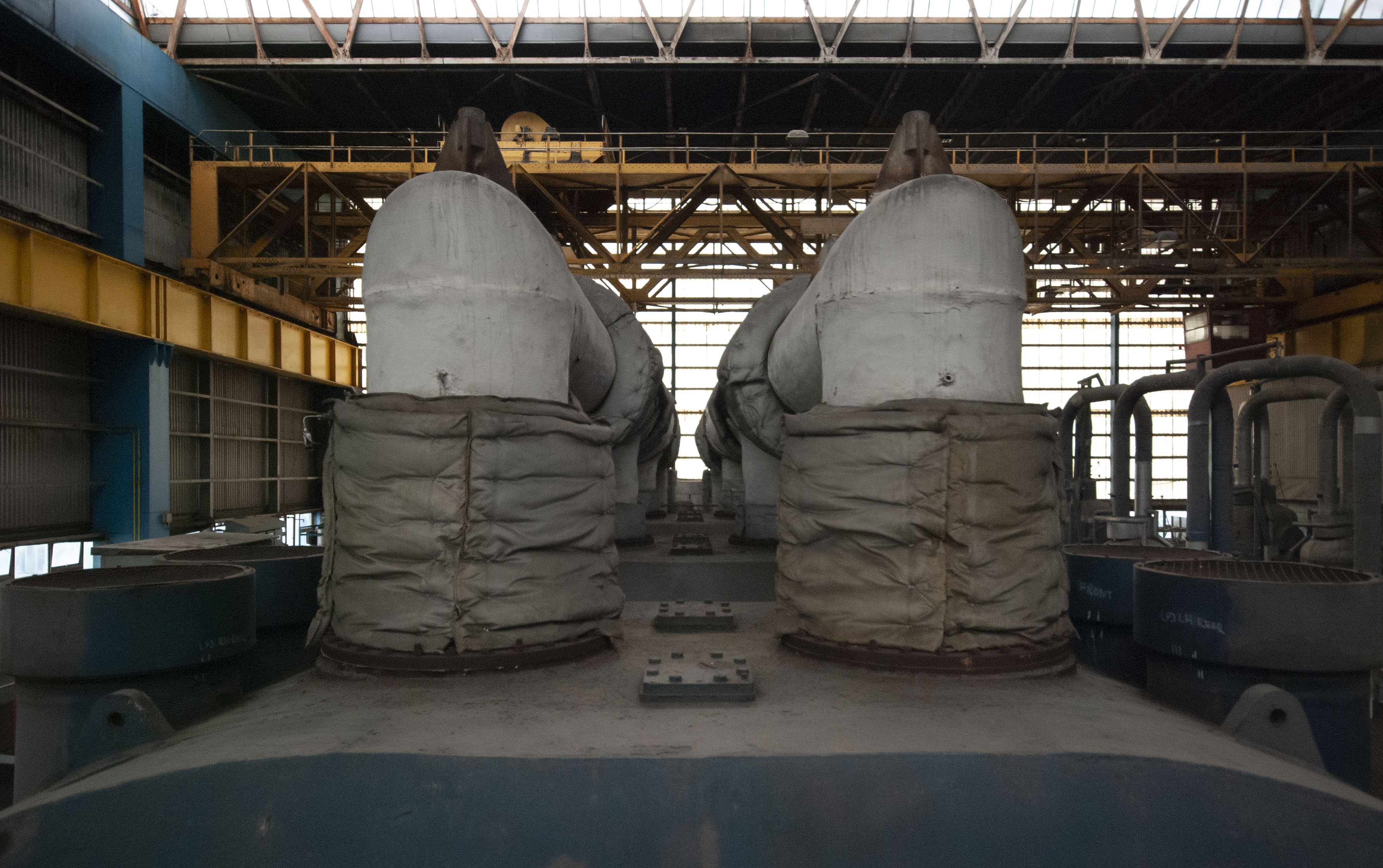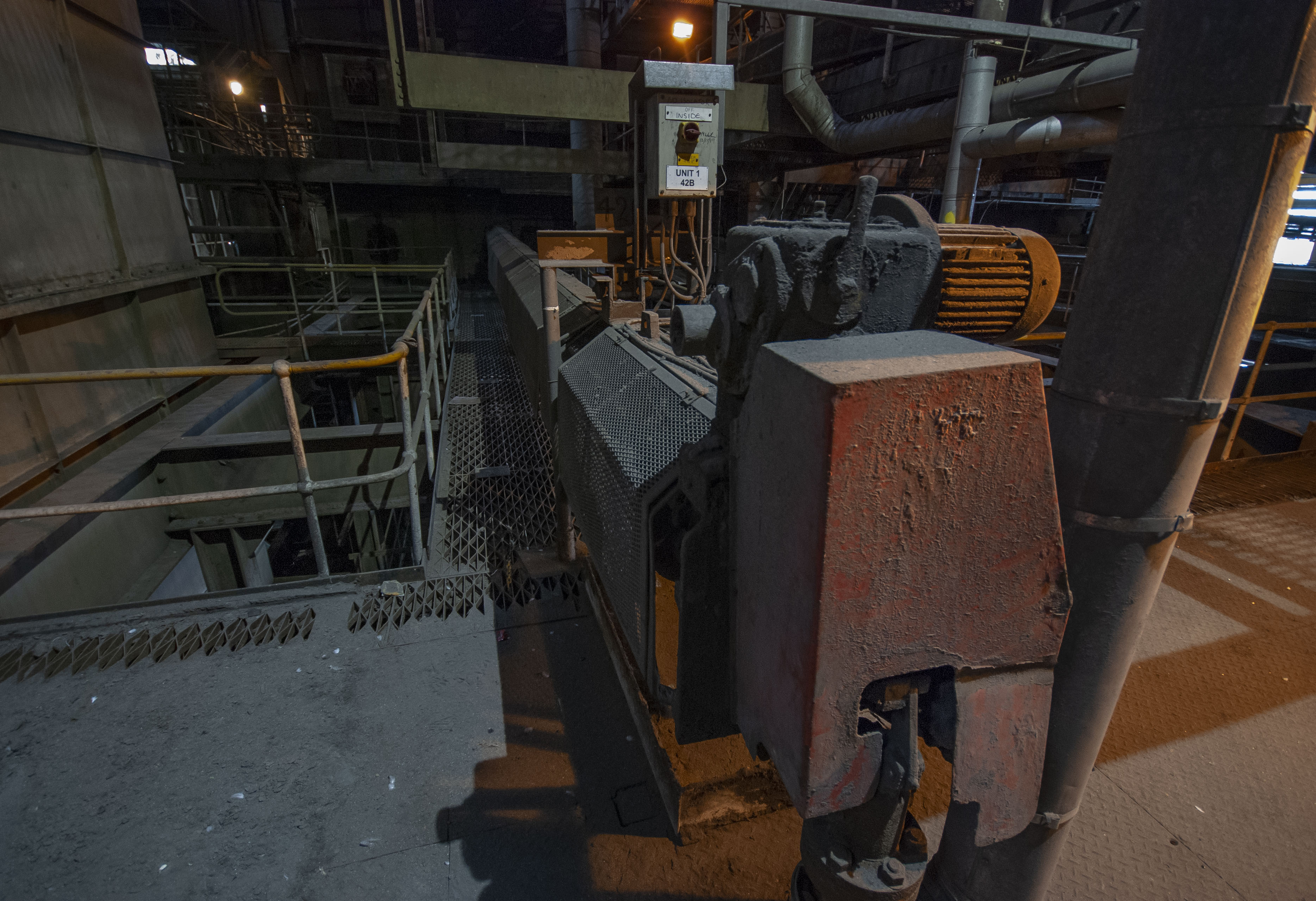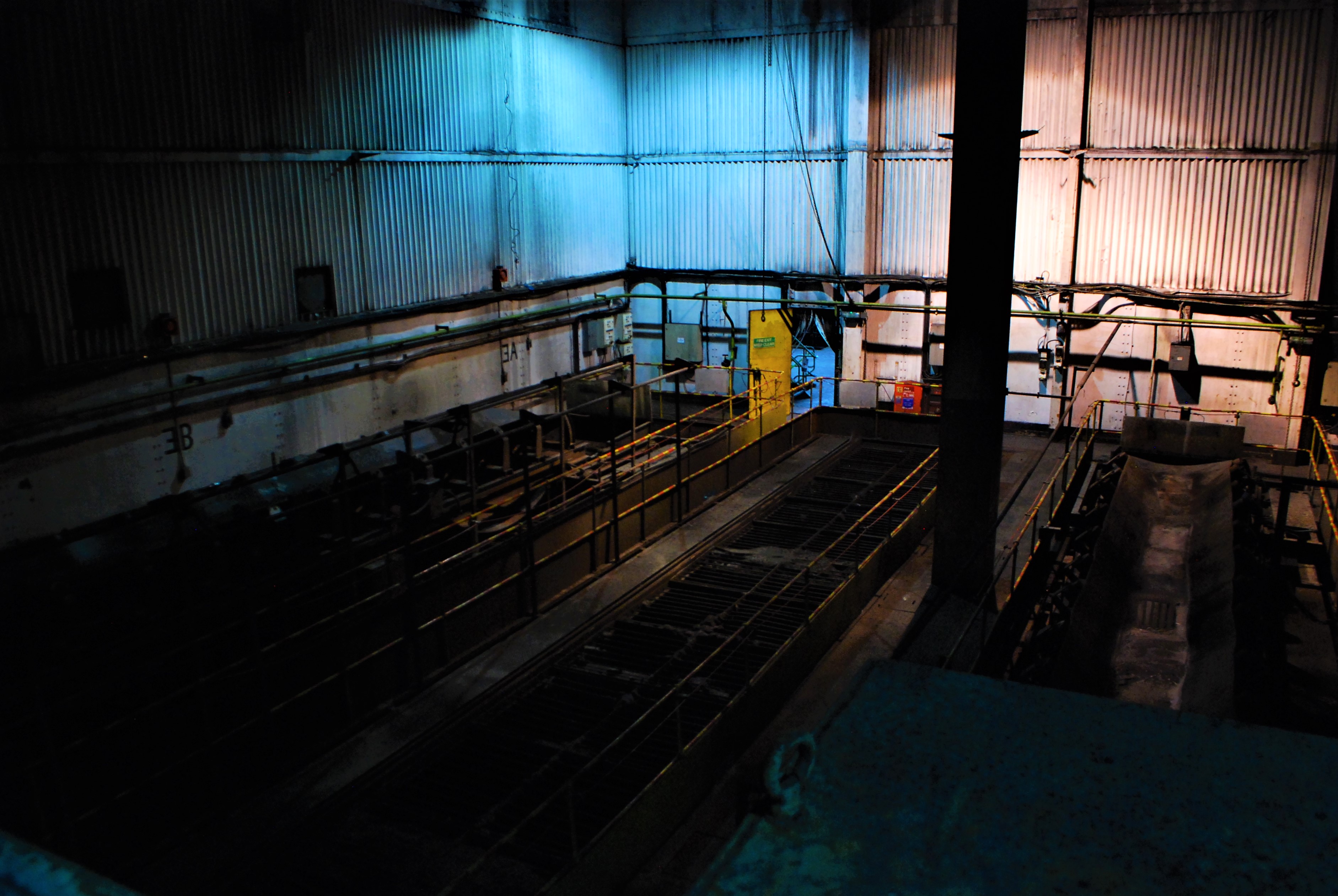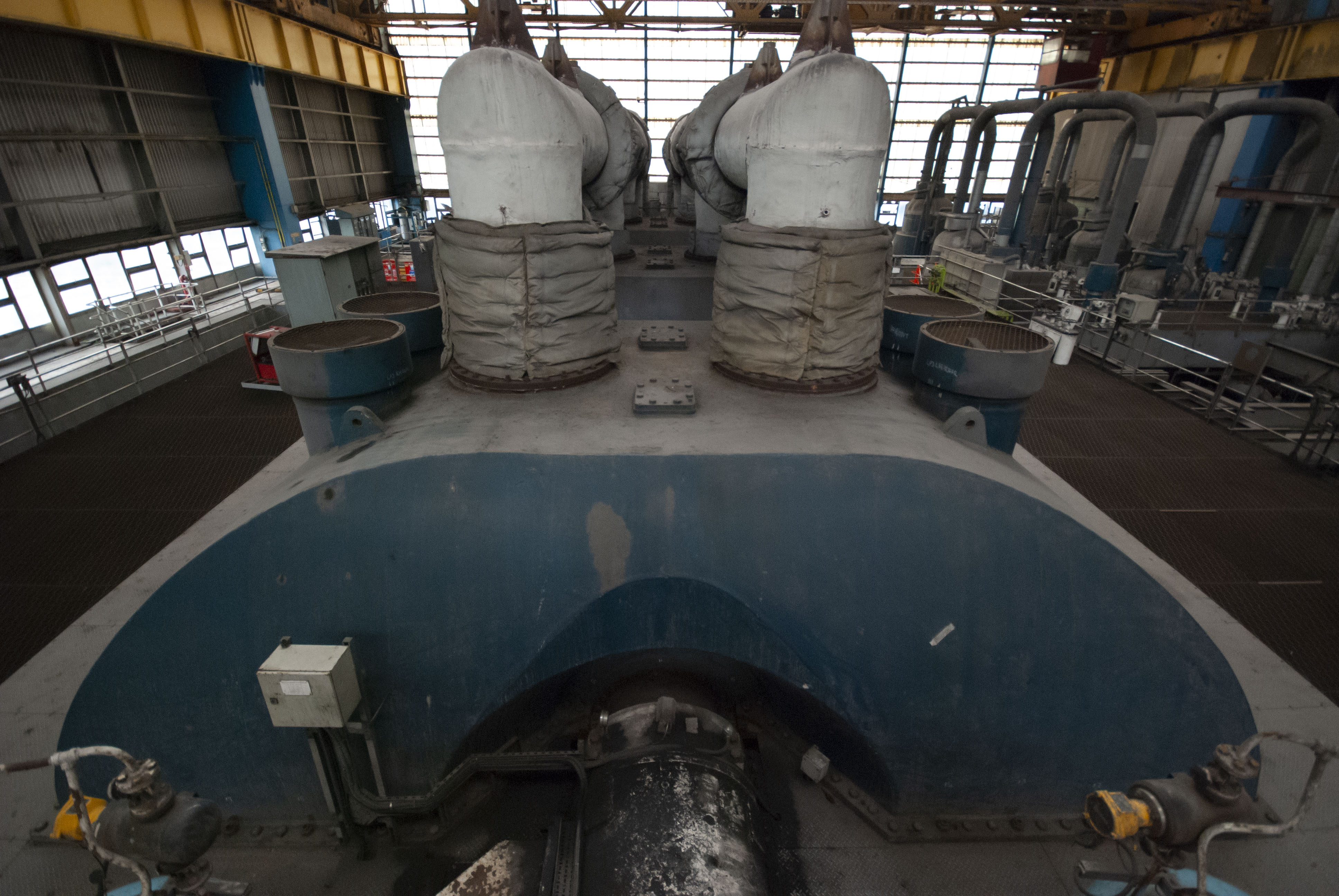 The boiler house of the power station. Dark and dusty.