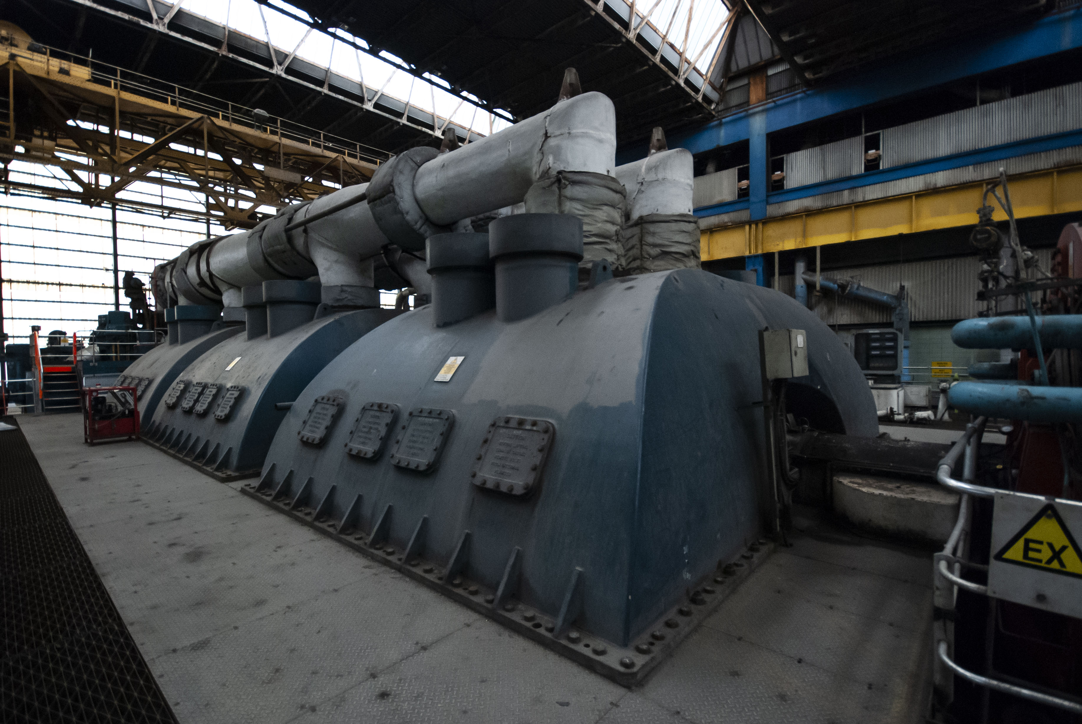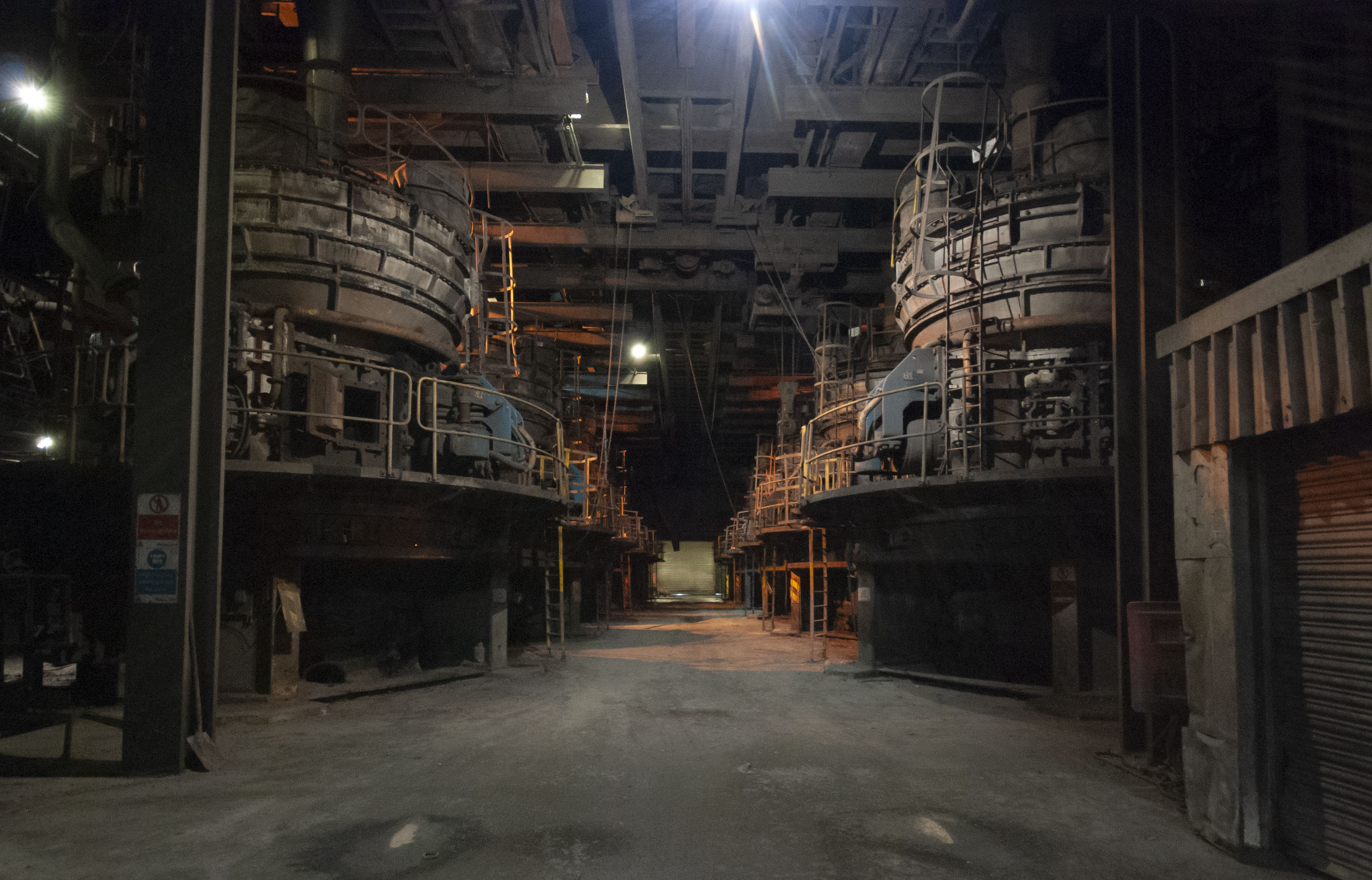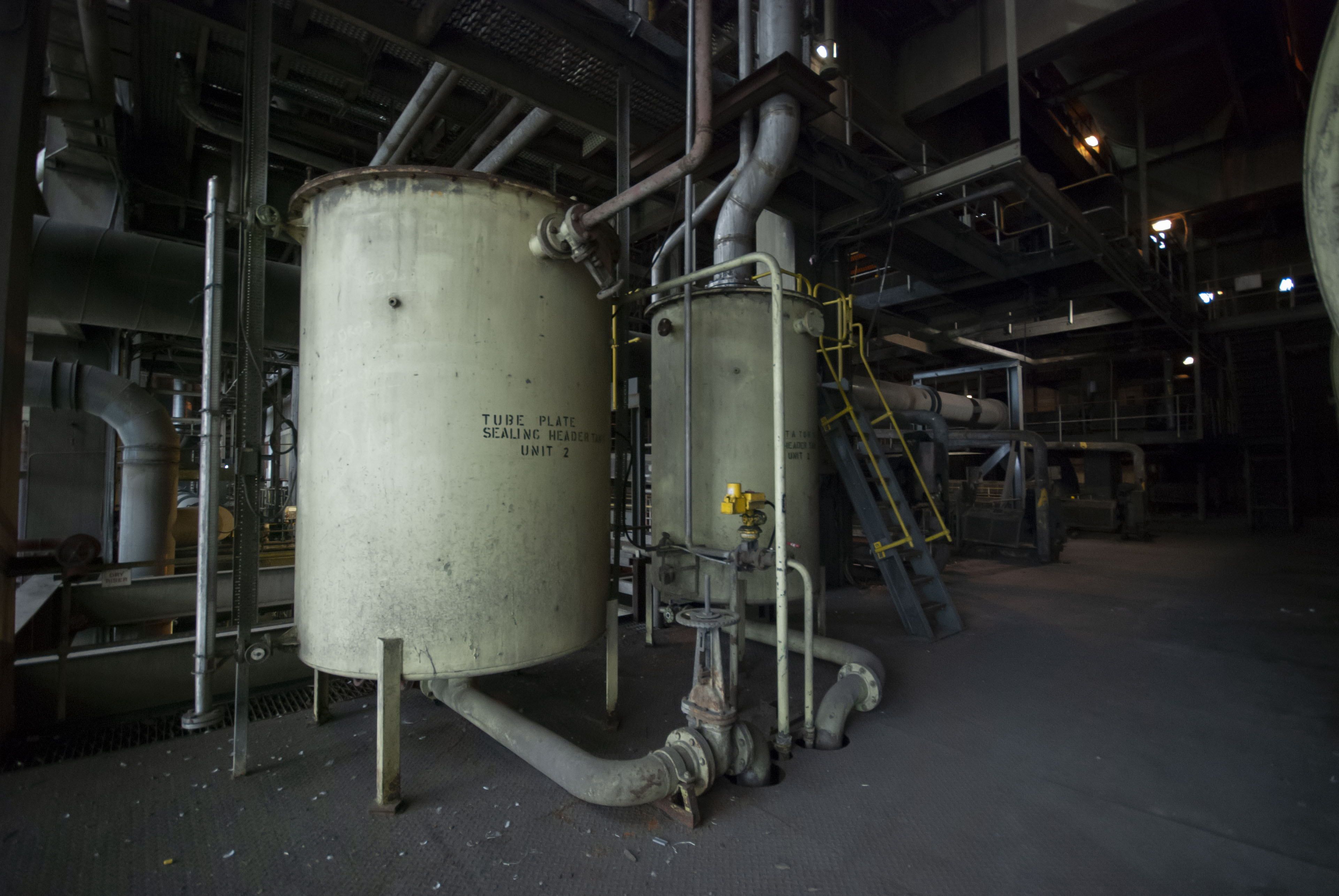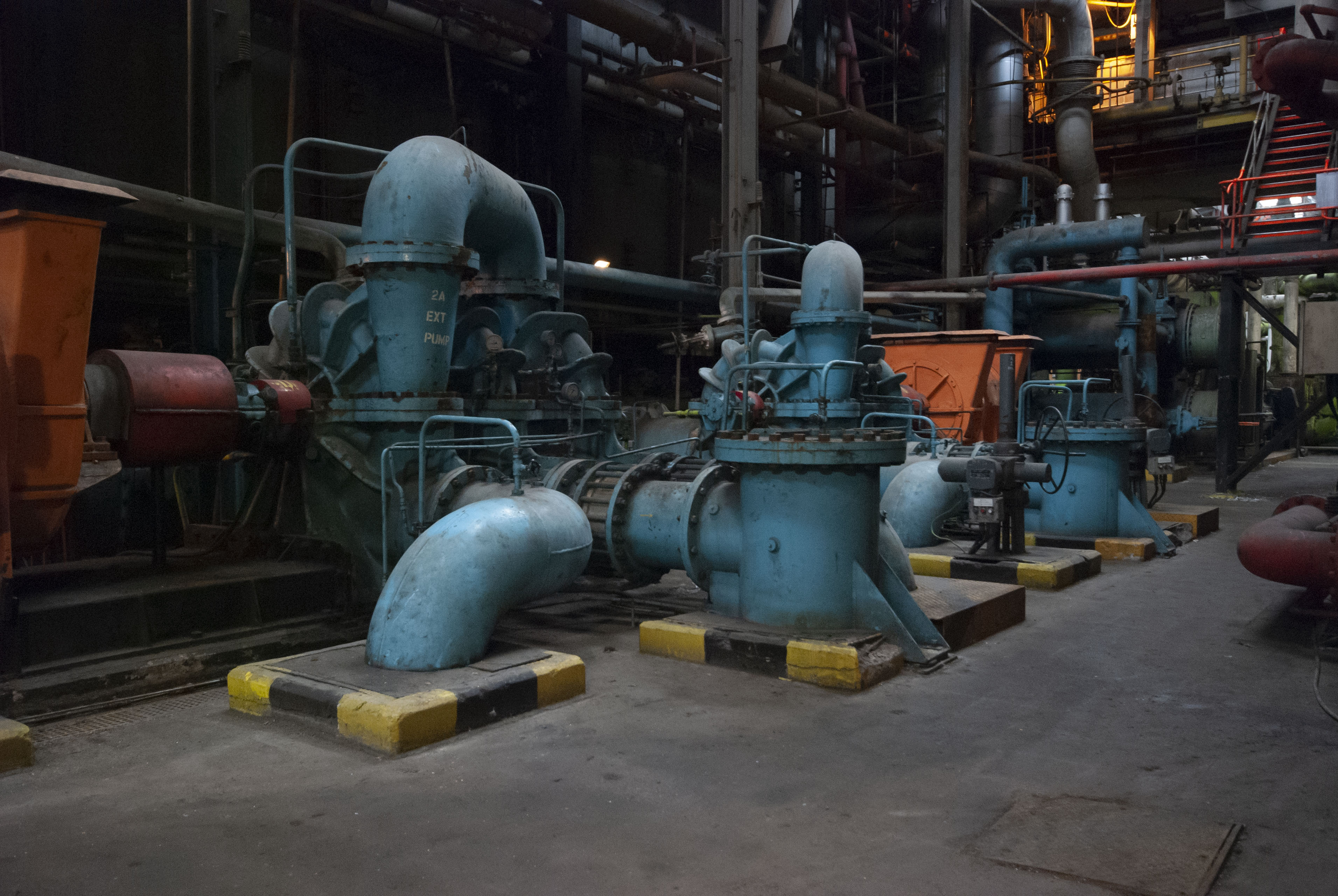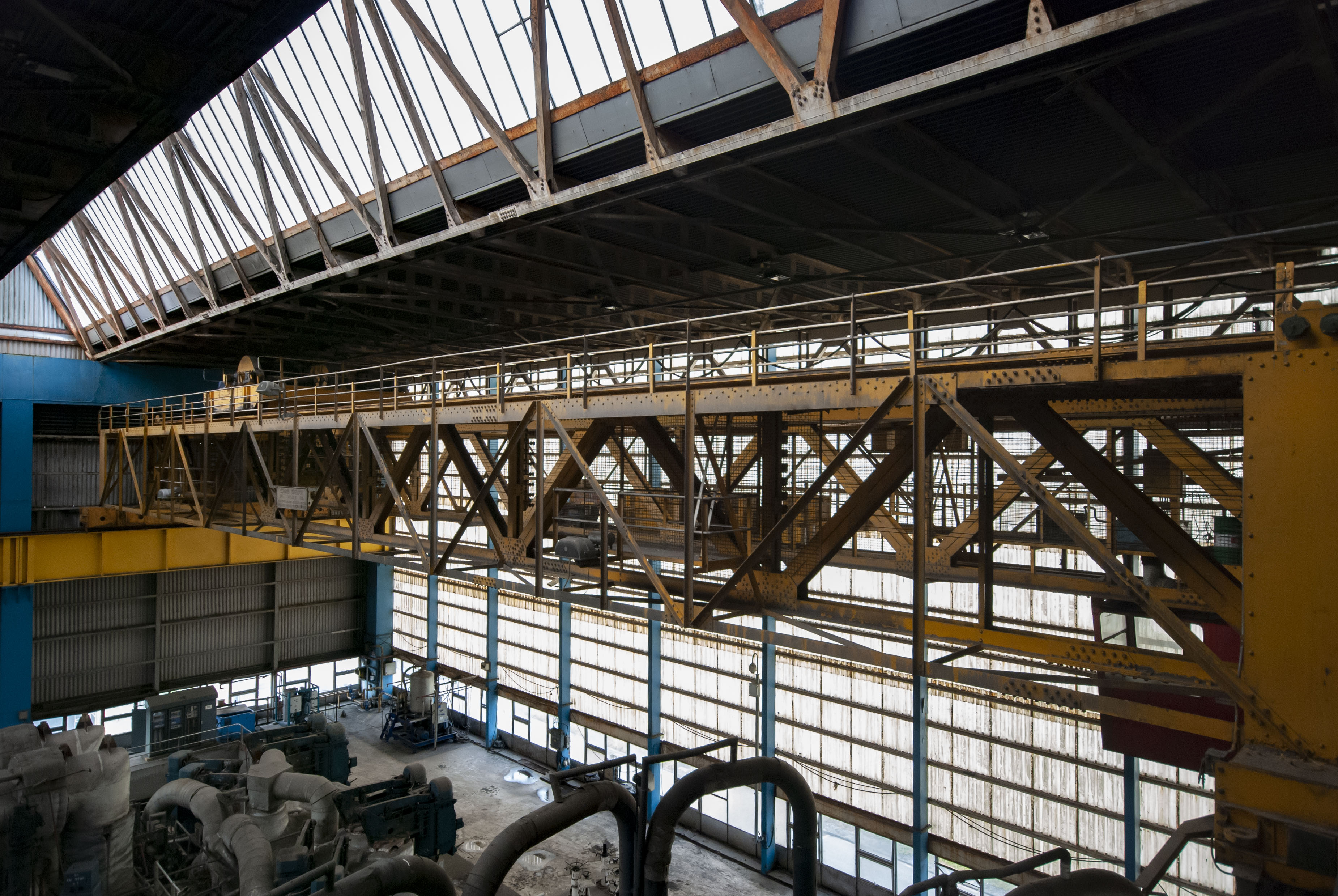 The boiler house of the power station. Dark and dusty.