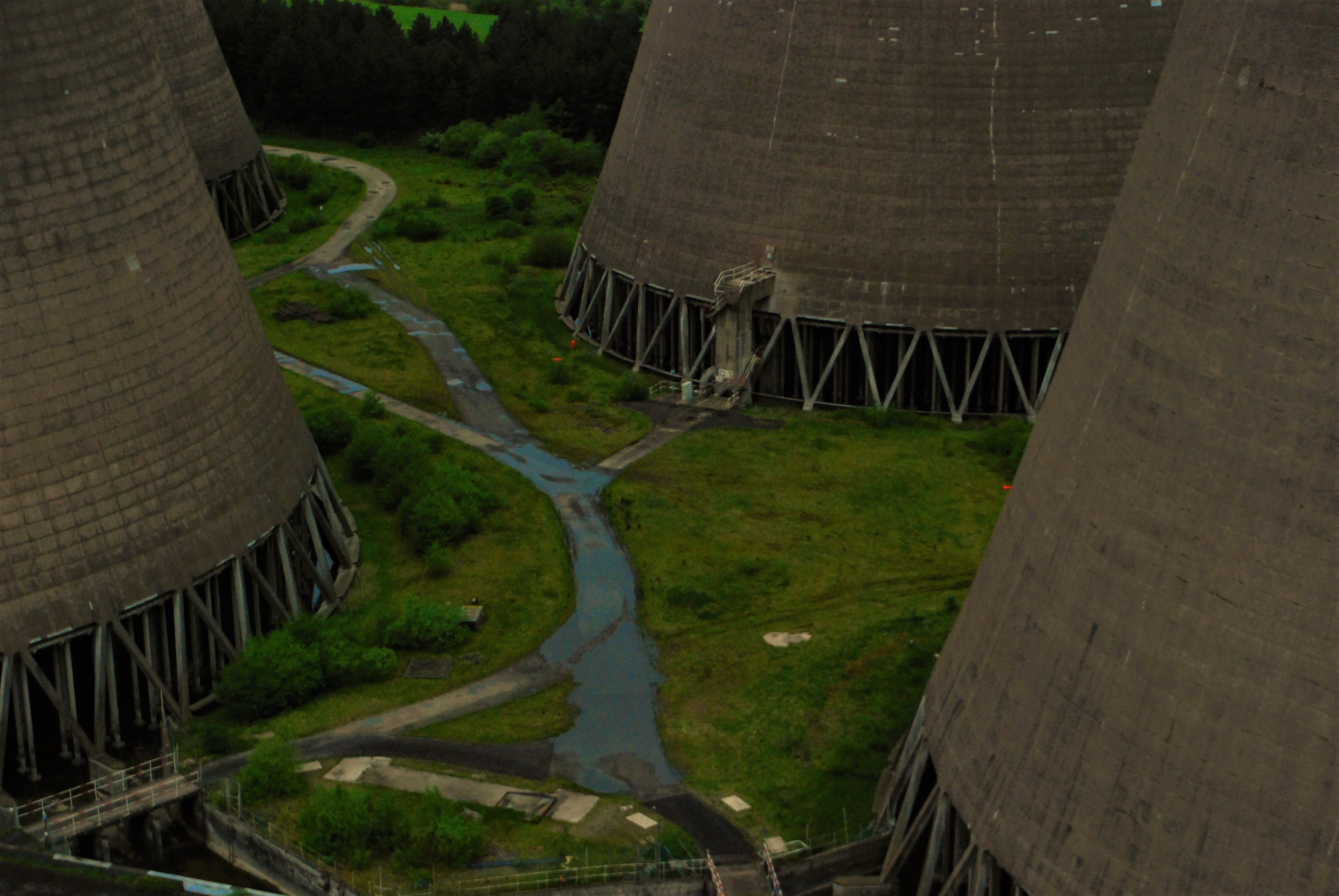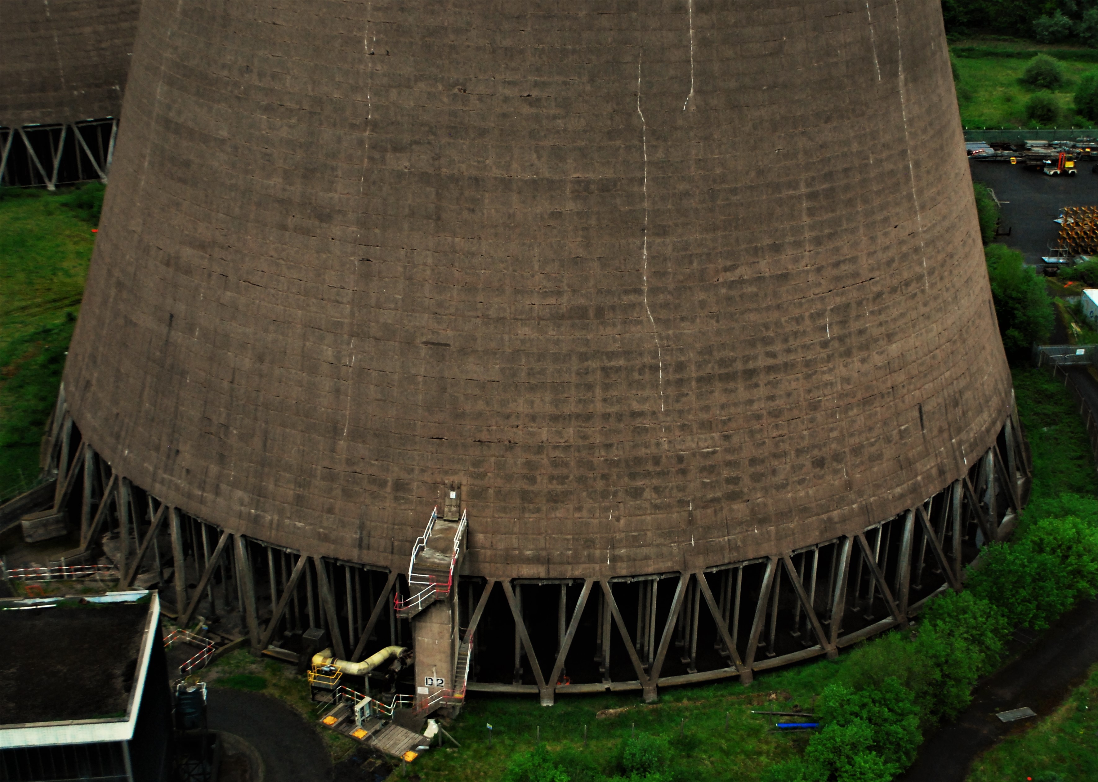 In 1984, cooling tower B2 collapsed in high winds – it was later rebuilt and the concrete used in its construction has a grey hue which stands out from the other warmer coloured towers. Between 2006 and 2008, FGD (flue gas desulphurisation) systems were added to units 2-4 in a bid to reduce pollution and comply with the EU’s ‘Large Combustion Plant Directive’ – this new machinery reduced those units’ sulphur emissions by 94%. Carbon capture systems were considered for the site, but were never implemented due to the power station’s uncertain future.