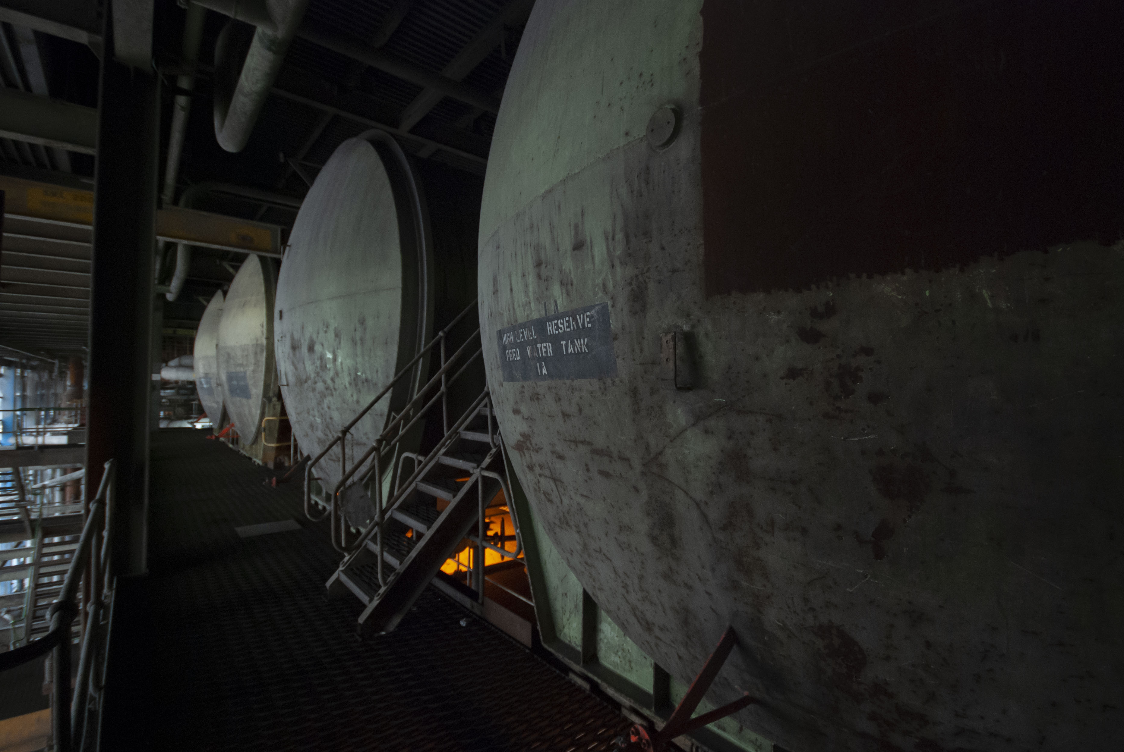 Showing the de-aerators which removed dissolved gases from boiler feedwater.