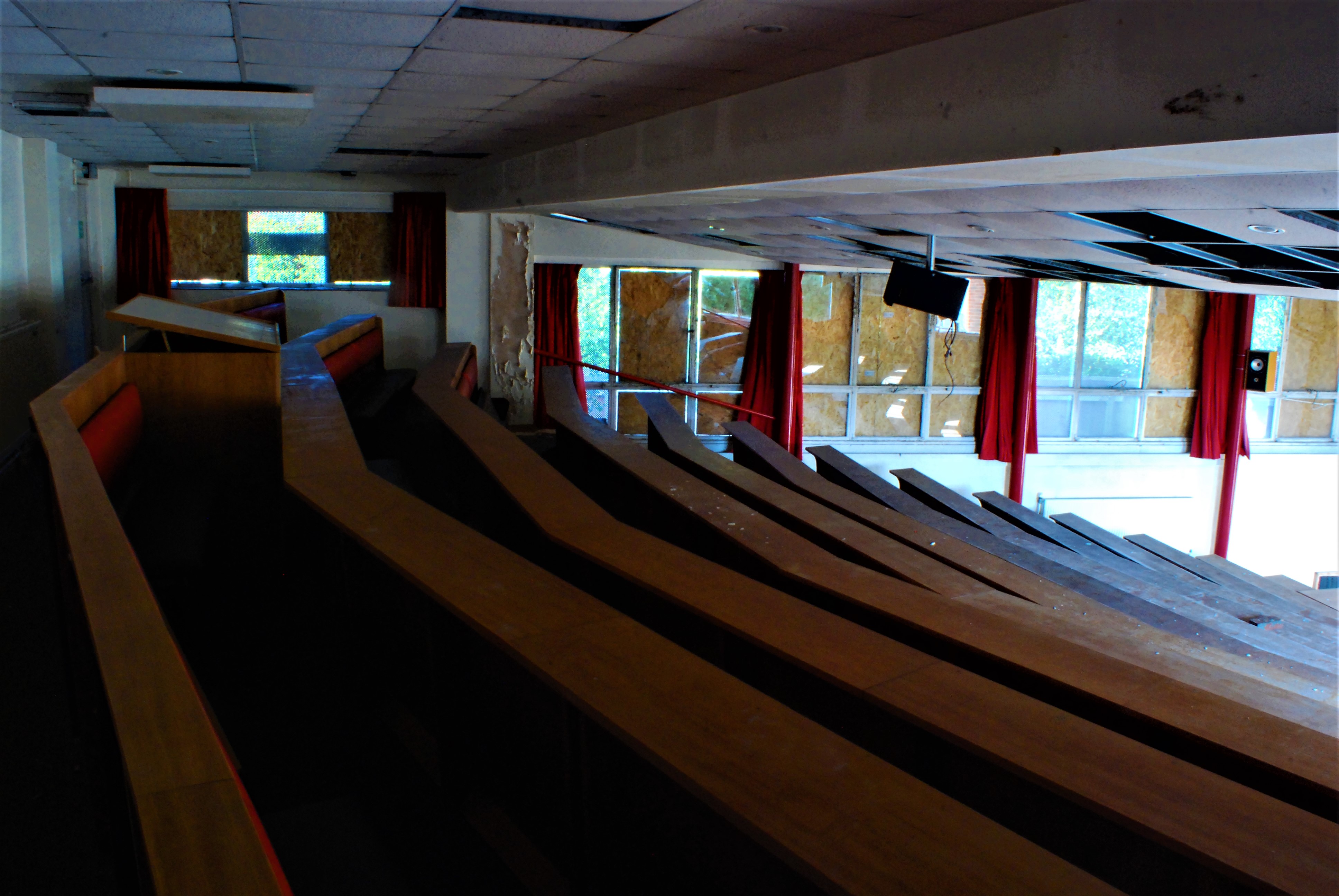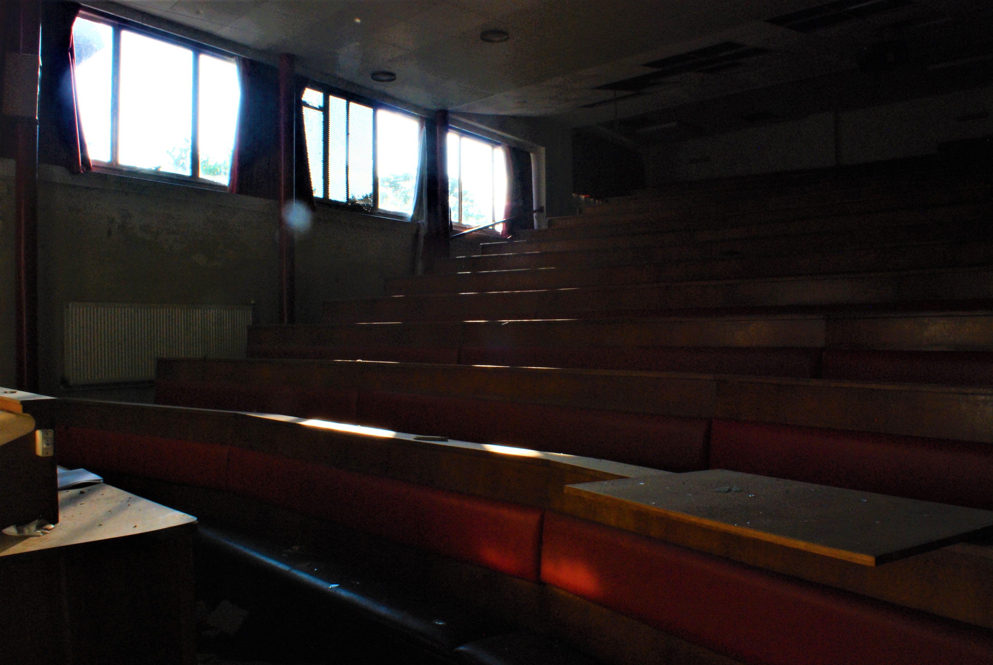 Well, recently, I explored an abandoned college once associated with a biiig university. It closed down in the 2000s and has lain derelict ever since. Recently, a developer bought the site and is planning to (drum roll please) develop it into houses. The explore was simple and relaxed, with no threats of security at all. The buildings were fascinating and really surprisingly unvandalised (apart from a fair amount of smahed windows that had been sheeted up with steel). Inside were some fascinating science laboratories and fume cupboards, along with a pretty incredible lecture theatre. That, by far, was the highlight of the explore. Enjoy the photos!