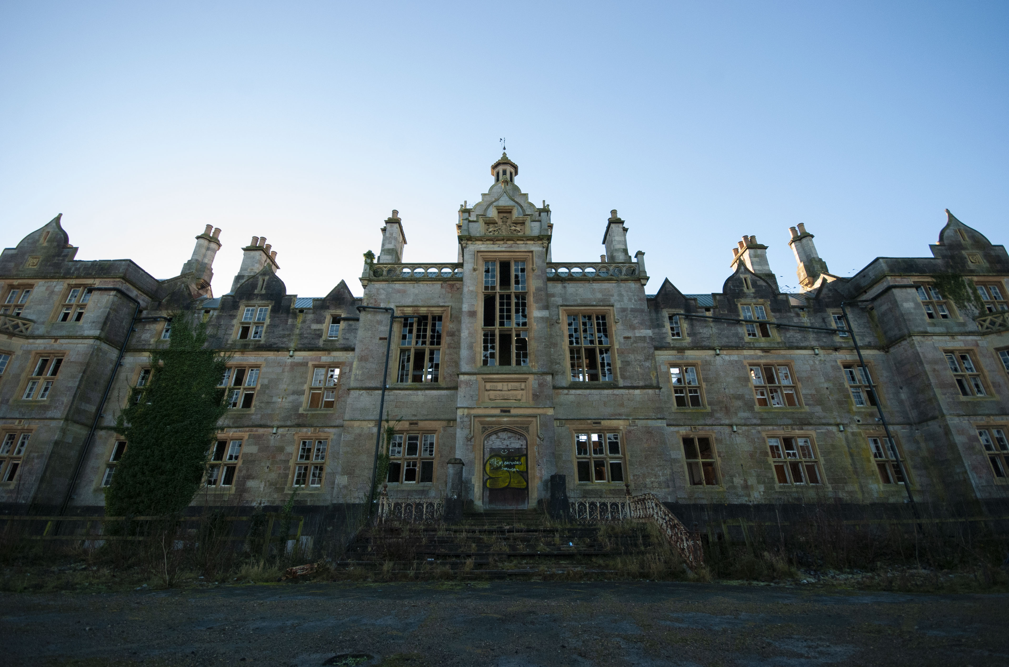 The hospital joined the newly formed NHS in 1948. However, the Care in the Community began the decline of the hospital, with plans for its closure drawn up in 1987. In 1991, the phased closure of the site began and culminated with the entire hospital’s closure in 1995. Since then, the hospital has lain derelict and at the mercy of thieves and vandals. In 2008, the hospital’s main hall was destroyed in an arson attack. Since then, many fires have reduced parts of the hospital to rubble, with lead theft from the roofs and vandalism allowing the elements into the building. As of 2022, the hospital is a completely rotted husk of what it once was.