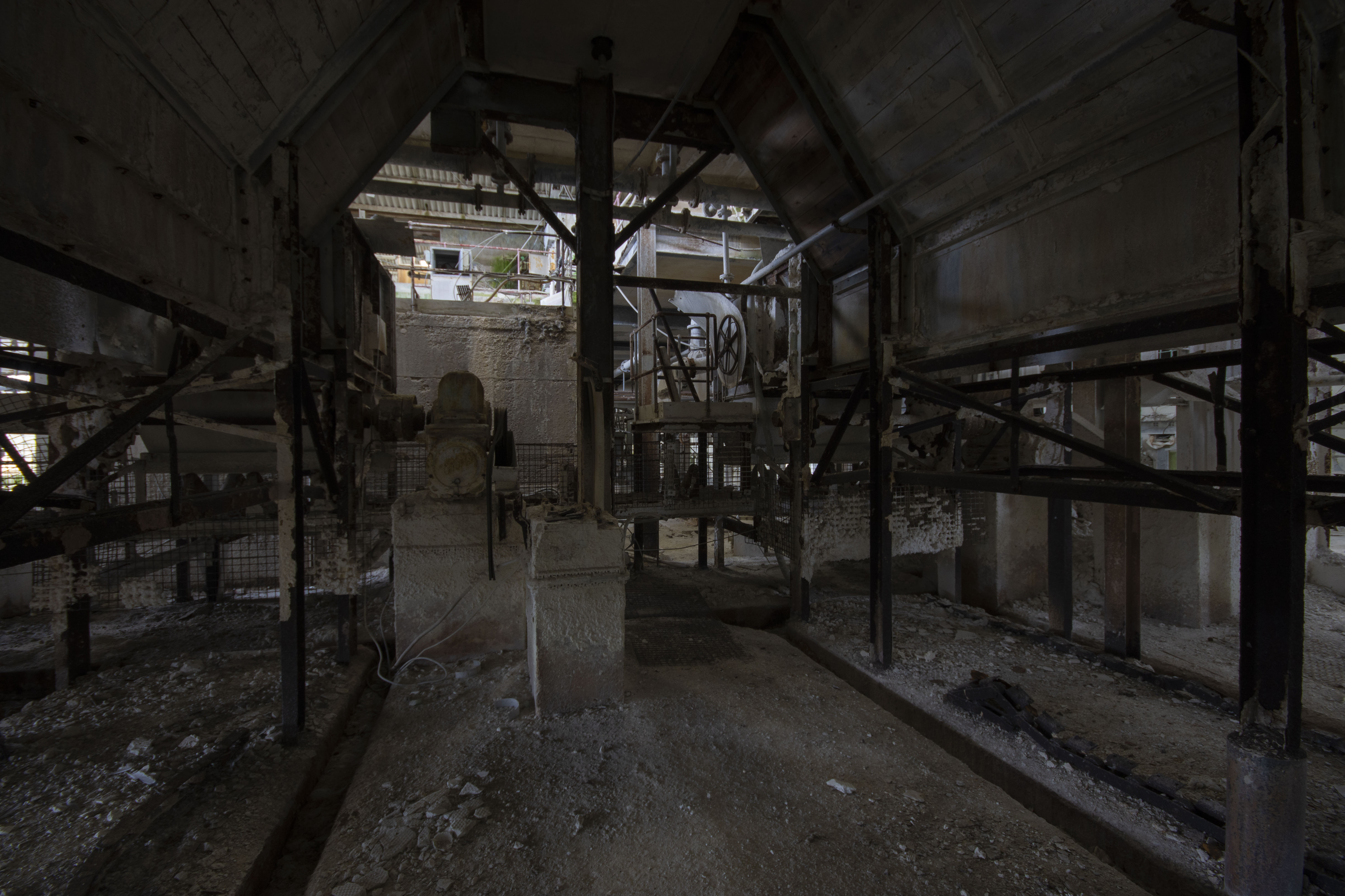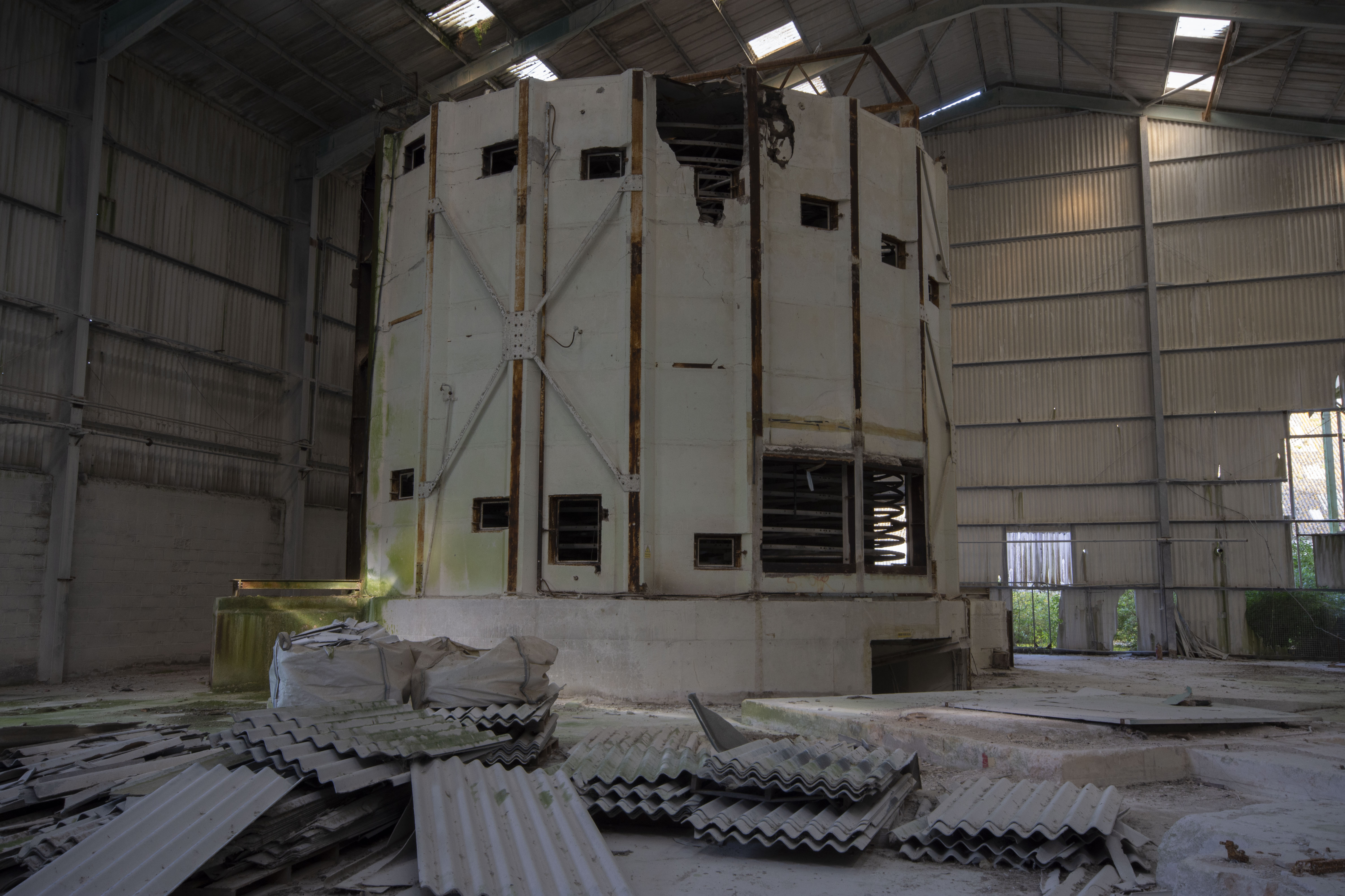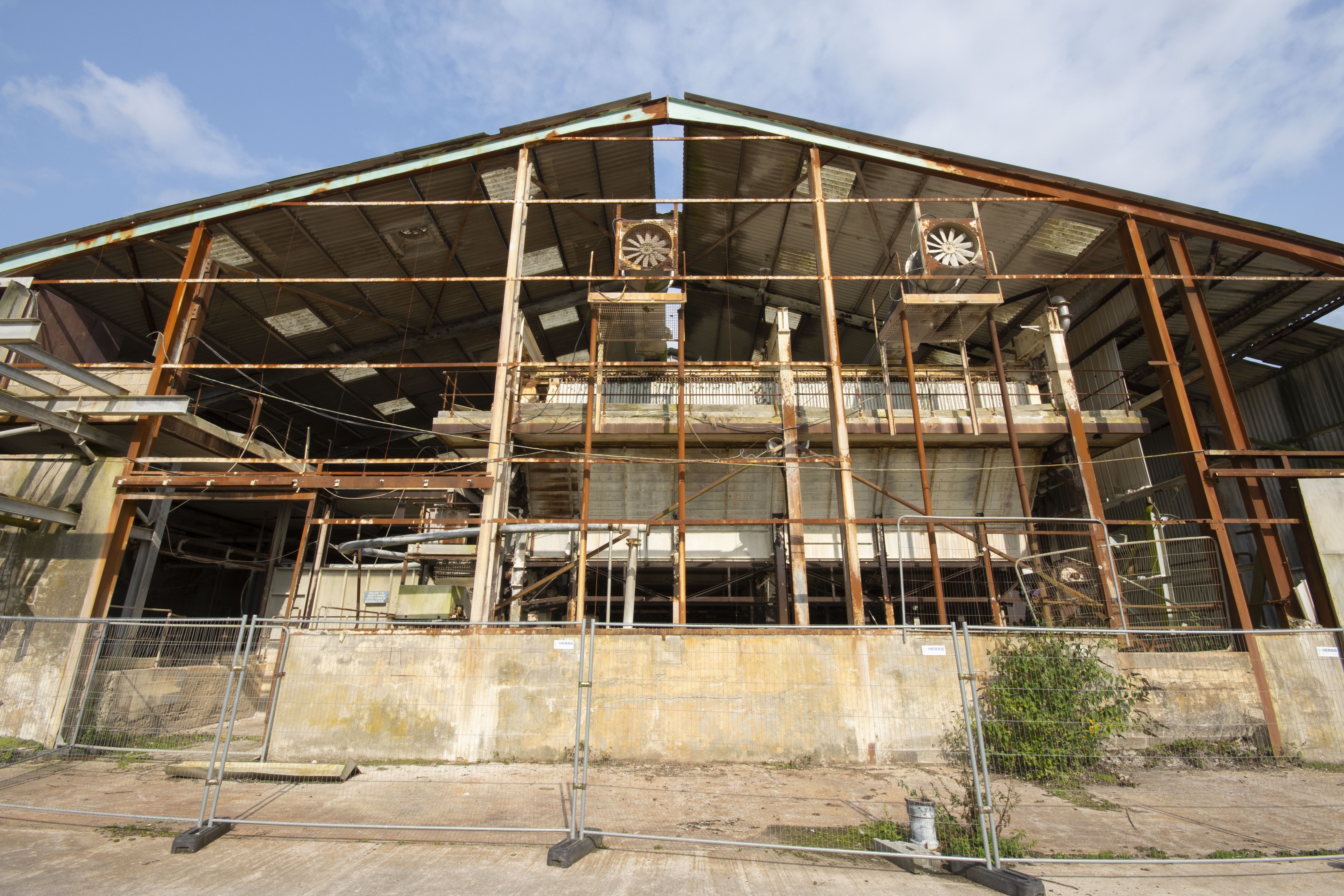 Demand for china clay peaked in the nineteenth century with Cornish china being exported across the world to places such as America. The clay would have first been quarried at mines like those visible across the landscape around St Austell, and then processed at plants like those at Par Docks. This particular clay drying works was commissioned in the early 1950s and was equipped with Buell driers which are still in situ – these are tall cylindrical driers with racks inside them for efficiency. The Par drying works operatedup until recently and the site closed down by 2008 at the latest. Since then it has sat derelict.