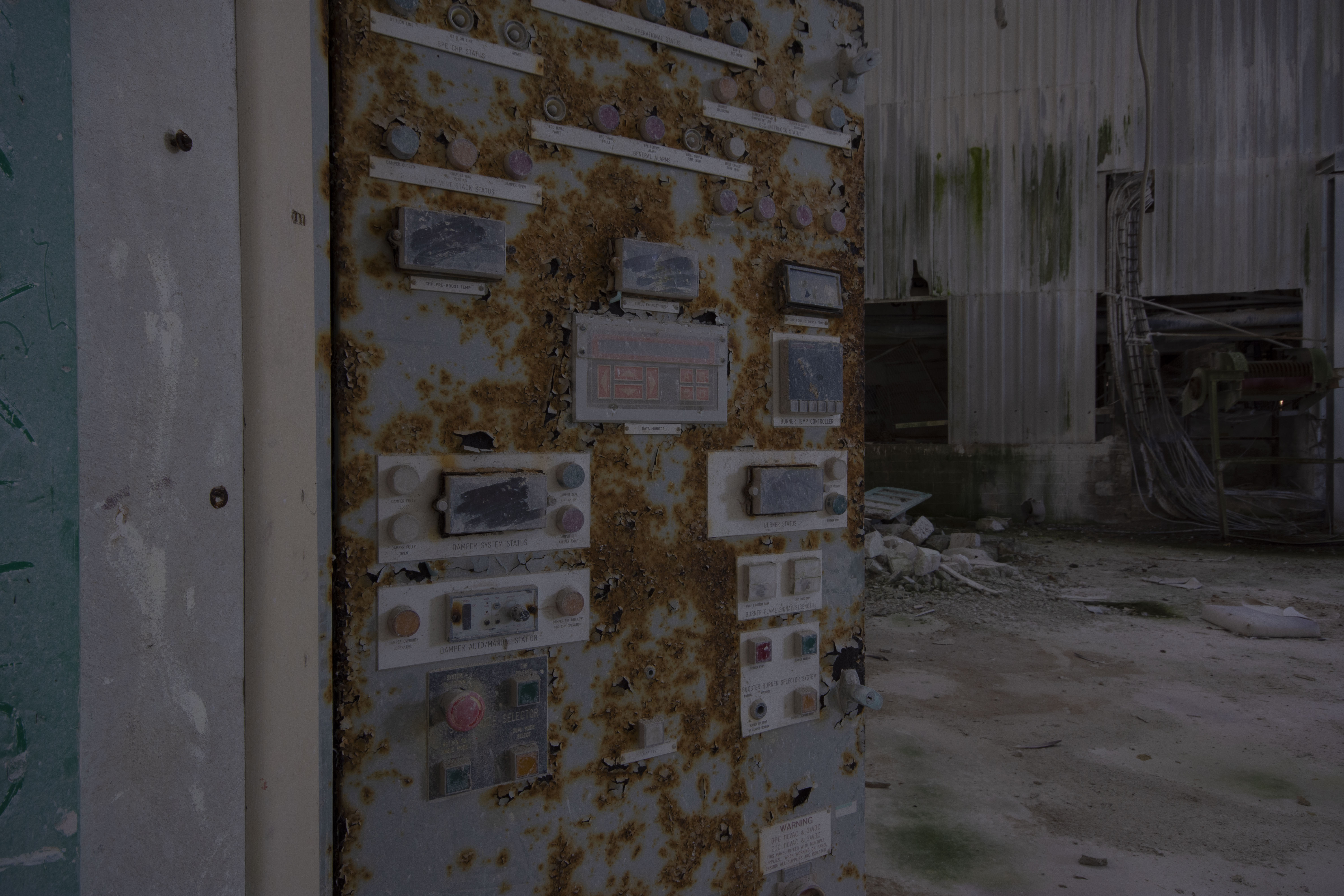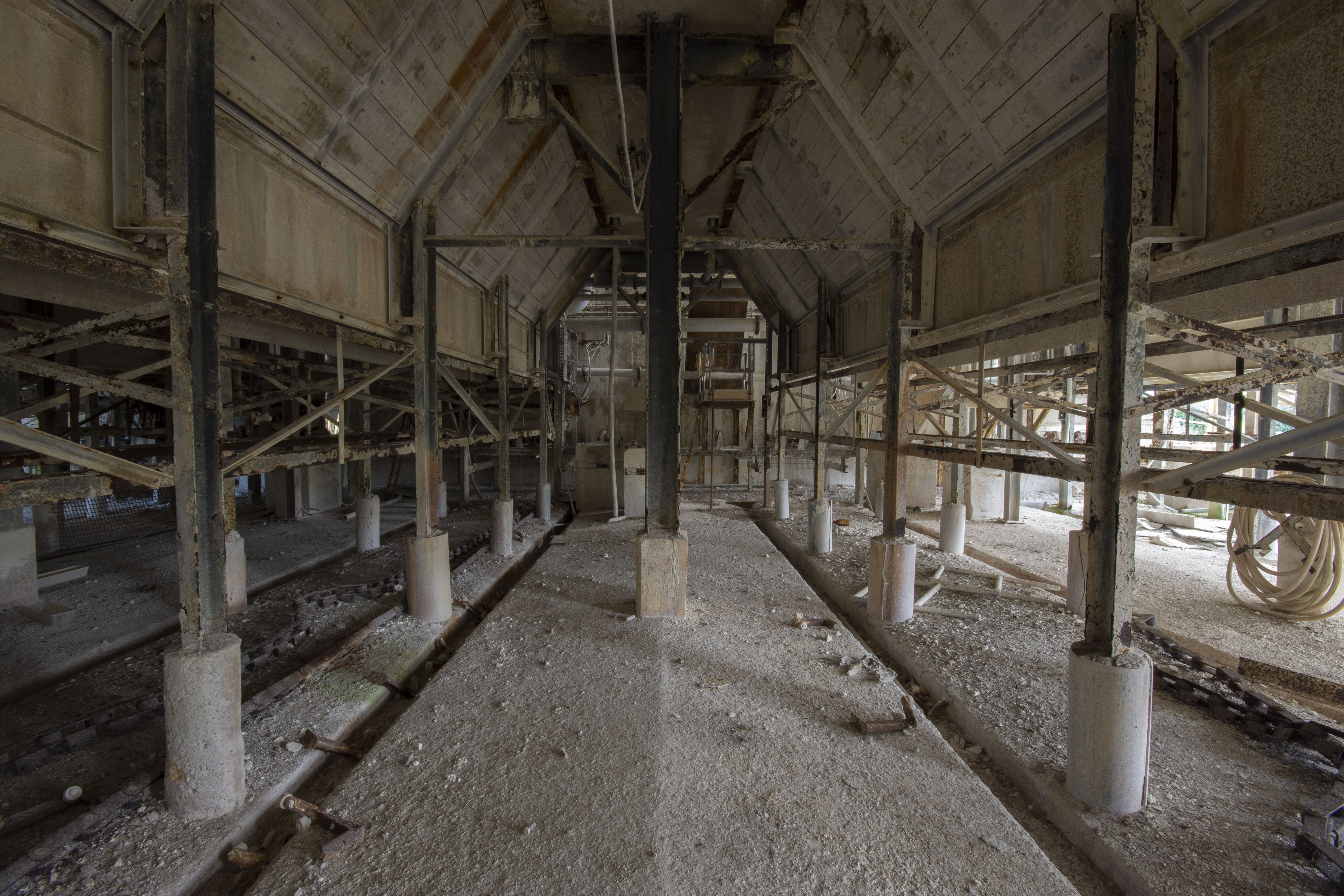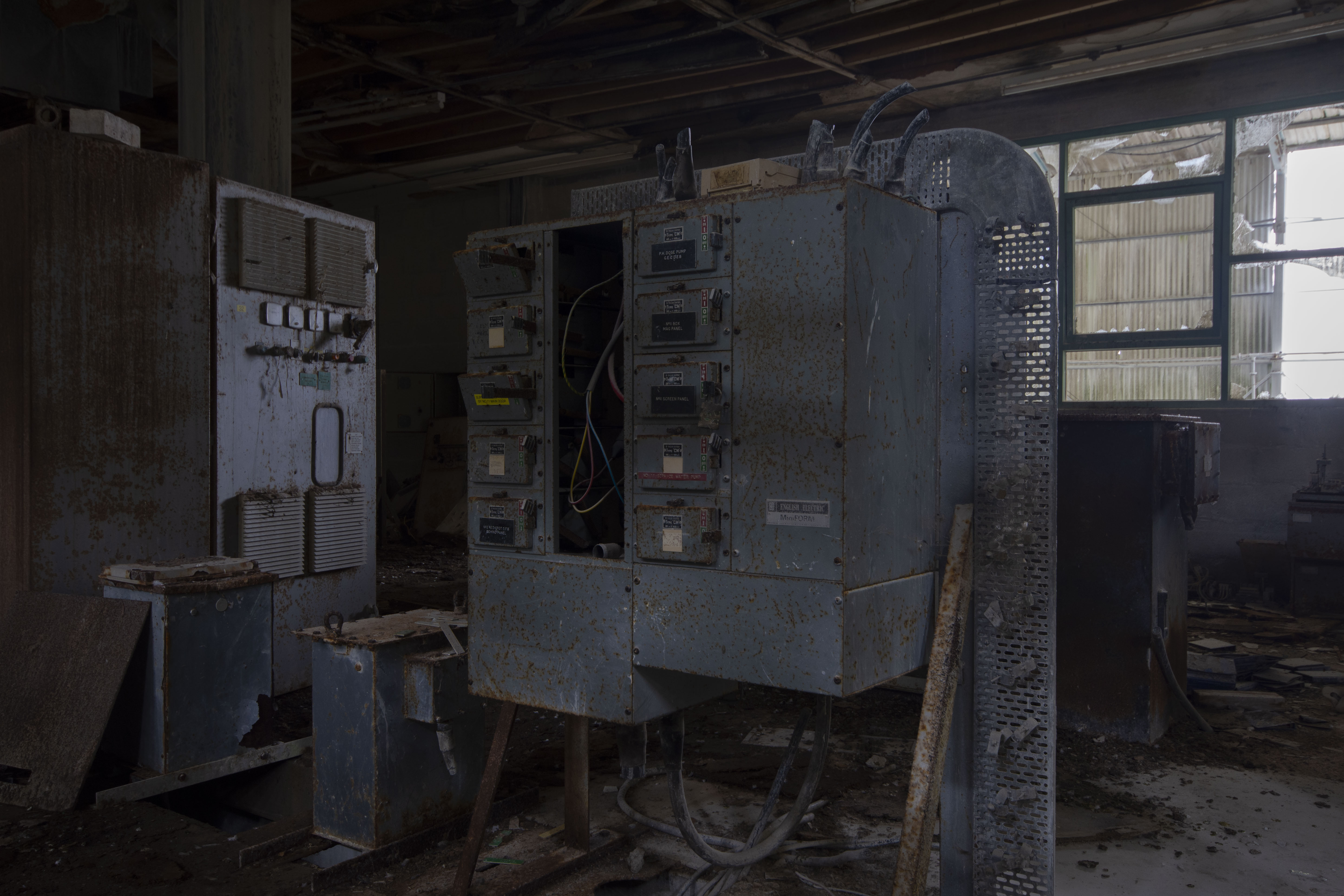 Demand for china clay peaked in the nineteenth century with Cornish china being exported across the world to places such as America. The clay would have first been quarried at mines like those visible across the landscape around St Austell, and then processed at plants like those at Par Docks. This particular clay drying works was commissioned in the early 1950s and was equipped with Buell driers which are still in situ – these are tall cylindrical driers with racks inside them for efficiency. The Par drying works operatedup until recently and the site closed down by 2008 at the latest. Since then it has sat derelict.