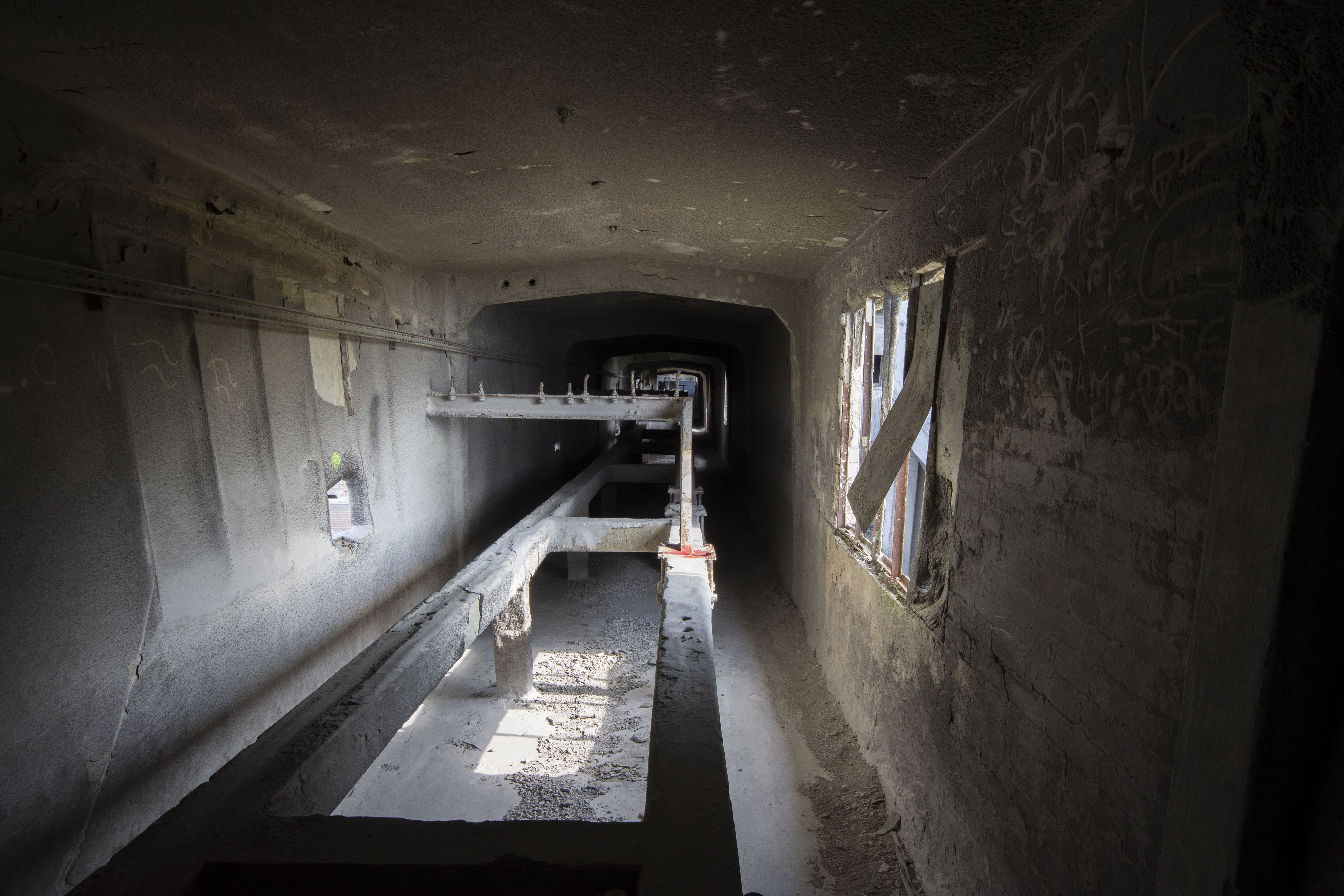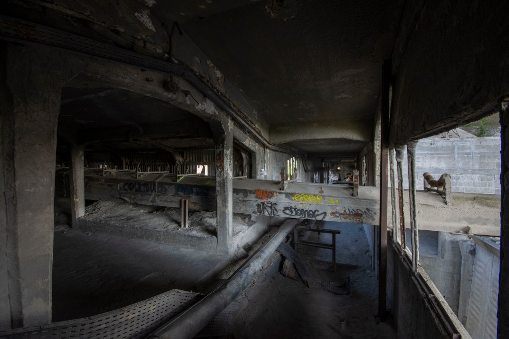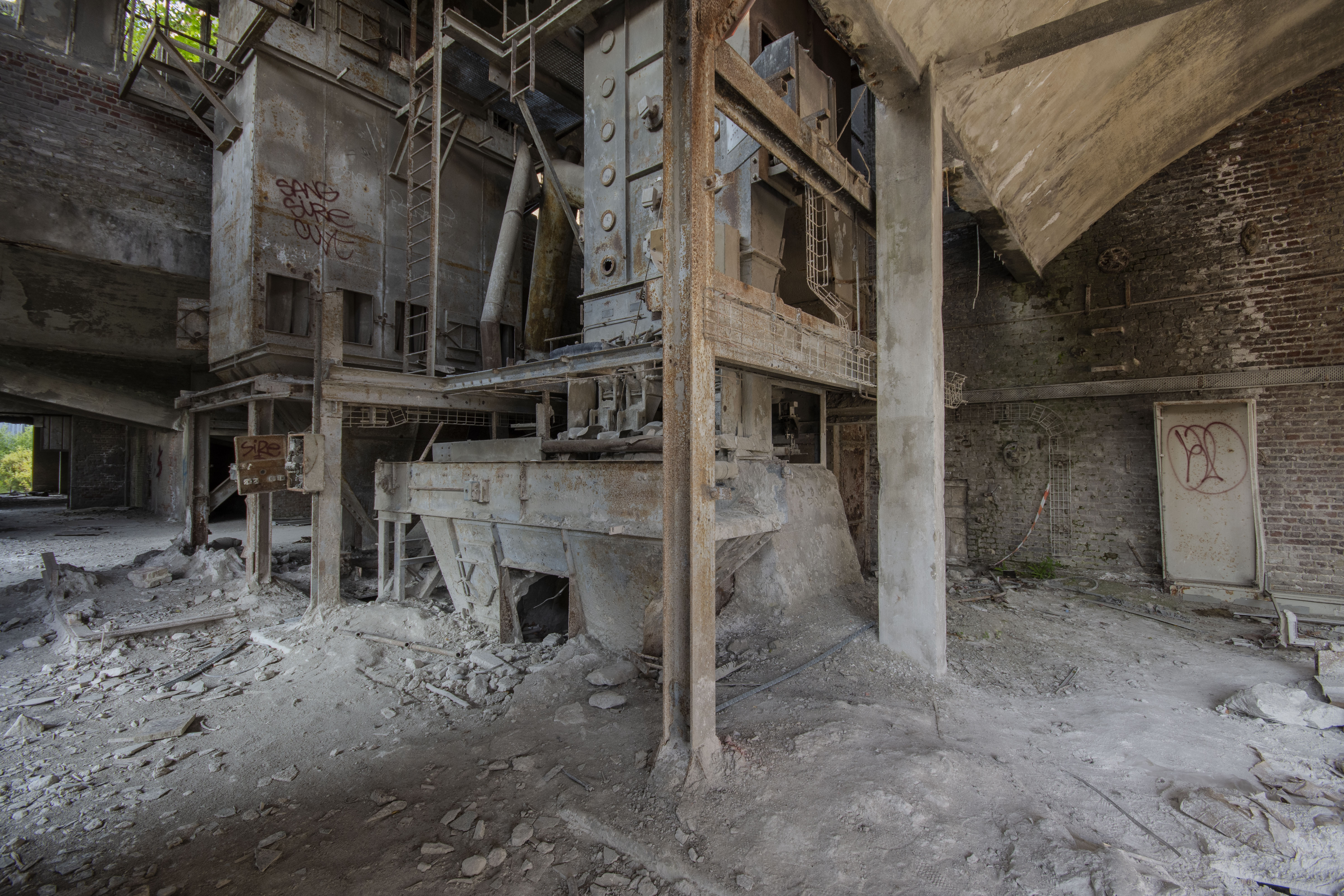 In the 1920s, the group ‘Société des Anciens Établissements Ernest Cambier’ was established with the goal of quarrying the surrounding area to make Portland cement. The cement making process is fairly simple on paper: limestone and raw materials were quarried from a neighbouring pit, and combined with clay and other materials, finely pulverised in mixing plants and blended with water to form a slurry. The slurry was then pumped into rotary kilns and then baked to form a glassy rubble called clinker. The clinker emerged from the kilns red hot and had to be cooled before it could be further processed into a fine powder in grinding mills. This process caused a lot of dust to be produced and given the nature of Portland cement, the older locals still remember the fine coating of white dust that settled on the surrounding area. The Cambier company changed hands in 1967, and was bought by the Portland Cement Company. This change of hands didn’t last long.