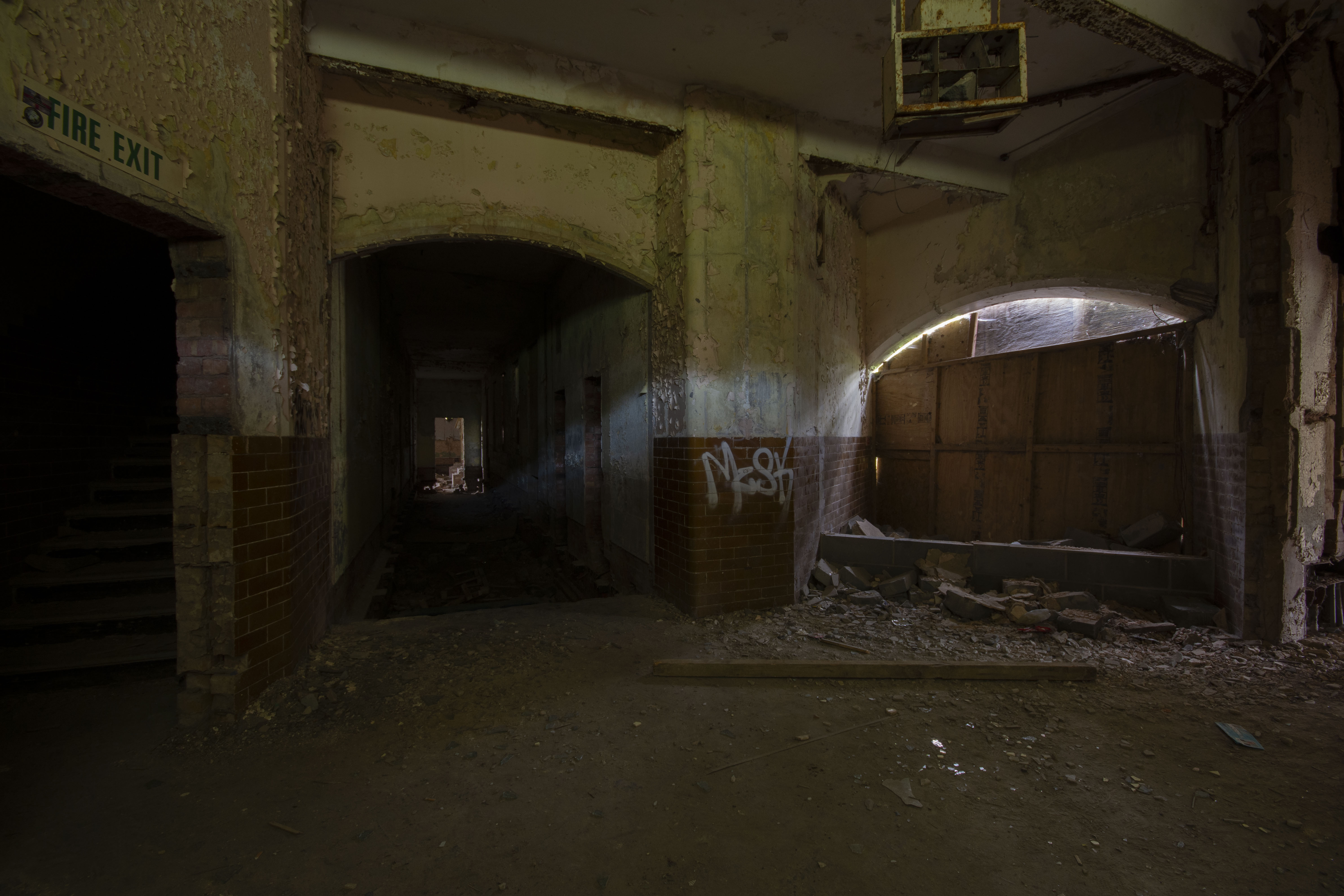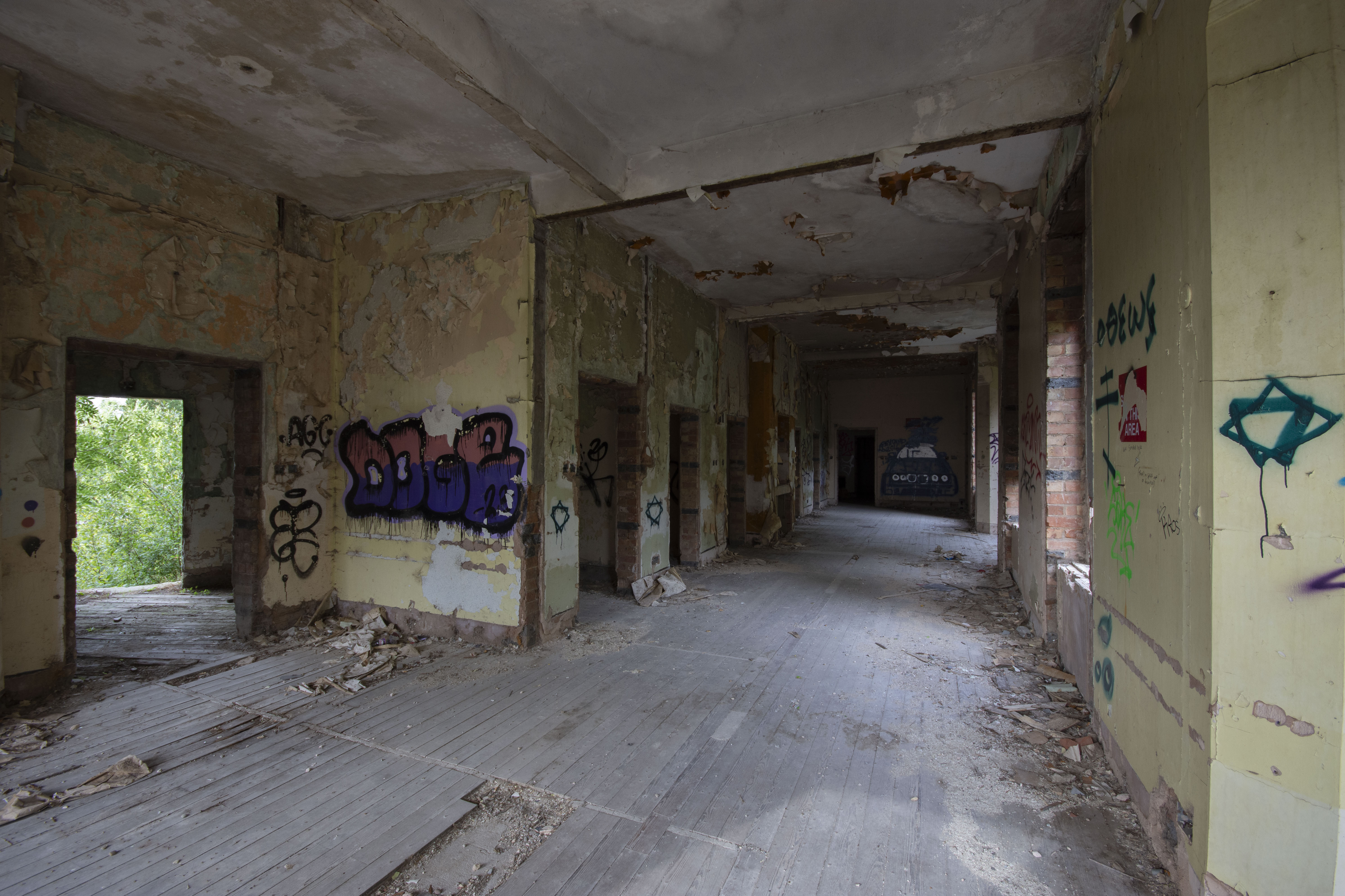 There were some local youths playing in the buildings and one of them sliced her hand open on some glass. Luckily I had a medkit in the car along with some hand sanitiser so we got her hand cleaned up and bandaged. I suppose treating a glass gash in a former hospital that hadn’t operated as a hospital since 1997 is quite ironic! Anyway, here are the photos. Enjoy!