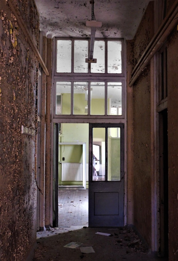 July 2021: Now this time we had a lot more success. So, the same process as before – over the fence, onto the site but this time instead of a brisk walk, we absolutely pelted it to the main hospital and squeezed under the security fencing. It wasn’t easy as I am not the thinnest! When my exploring colleague was halfway under, I looked around to check the coast and at the far end of the massive building, I could see a car and torch beam bobbling along at quite a quick pace in our direction – security! We then ran over to the structure and, as my exploring acquaintance was too busy leaning up chilling against a pile of concrete blocks having a drink, I found an access point. By that time, security was outside and looking round, torch flashing inside the windows. About ten seconds after accessing the building, security rounded the corner on foot and came right up into the building and searched for us for a while. Had I not kept at my exploring acquaintance to move his backside, we’d have been caught… again. We had hidden and stayed hidden for a good hour or so to let security wander off. After the coast had cleared enough for us to move from our hiding spot, we began the explore. It was definitely a case of “we got here just in time” because some of the 18th century section is under conversion as we speak. However, around about three quarters of the hospital remains still. The scanners are still there as well which made for a fantastic surprise! This exploration was my first use of NEF – however, I didn’t have a tripod at my disposal as it had broken literally the day before. So, handheld and with a flash gun. The only drawback was the fact that my exploring acquaintance was rushing us both around and therefore whisked us out of there after two hours. Which was not enough time to see hardly any of it. Ho hum!