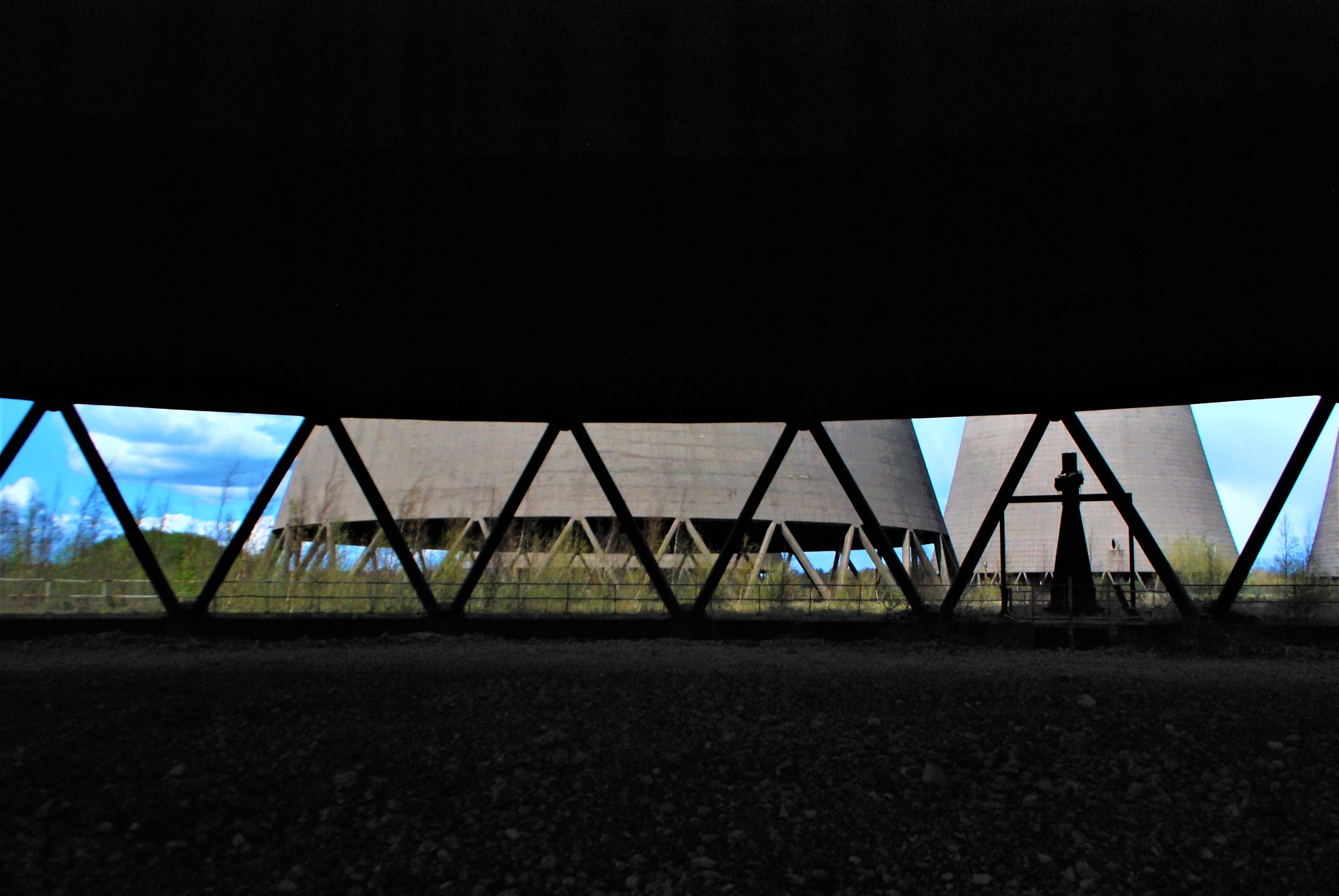 Been done a bajillion times, but here’s my take on the Five Brothers. On the same day as I did another power station, I went and explored the remnants of another former power station. The first power station on the site, dubbed the A Power Station was commissioned in 1957, with the secondary B coming online in 1962. Both plants had an output of 400MW, therefore totalling 800MW at peak output. The power station drew cooling water from a large river nearby and water was cooled in the five 330 foot tall cooling towers. Unfortunately, both the A and B station of this site have been demolished, having both closed in 1995 and 1999 respectively due to a declining efficiency (several generator sets were de-rated and made less powerful). All that remain, around 25 years on, are the five 100 meter high cooling towers. They are built of reinforced concrete. Two of the five towers have been stripped out ready for demolition (this happened a number of years ago now, so I doubt they’re going anywhere soon), allowing amazing views into the structure. The inside echoes crazily when you stand in the very middle. Definitely eerie and surreal. Apart from the cooling towers, there’s nothing else on the site apart from some heaps of rubble and a National Grid substation that is still very much in use. I looked around four of the five towers and photographed them and had a play around with the echoing inside them. Enjoy the photos.