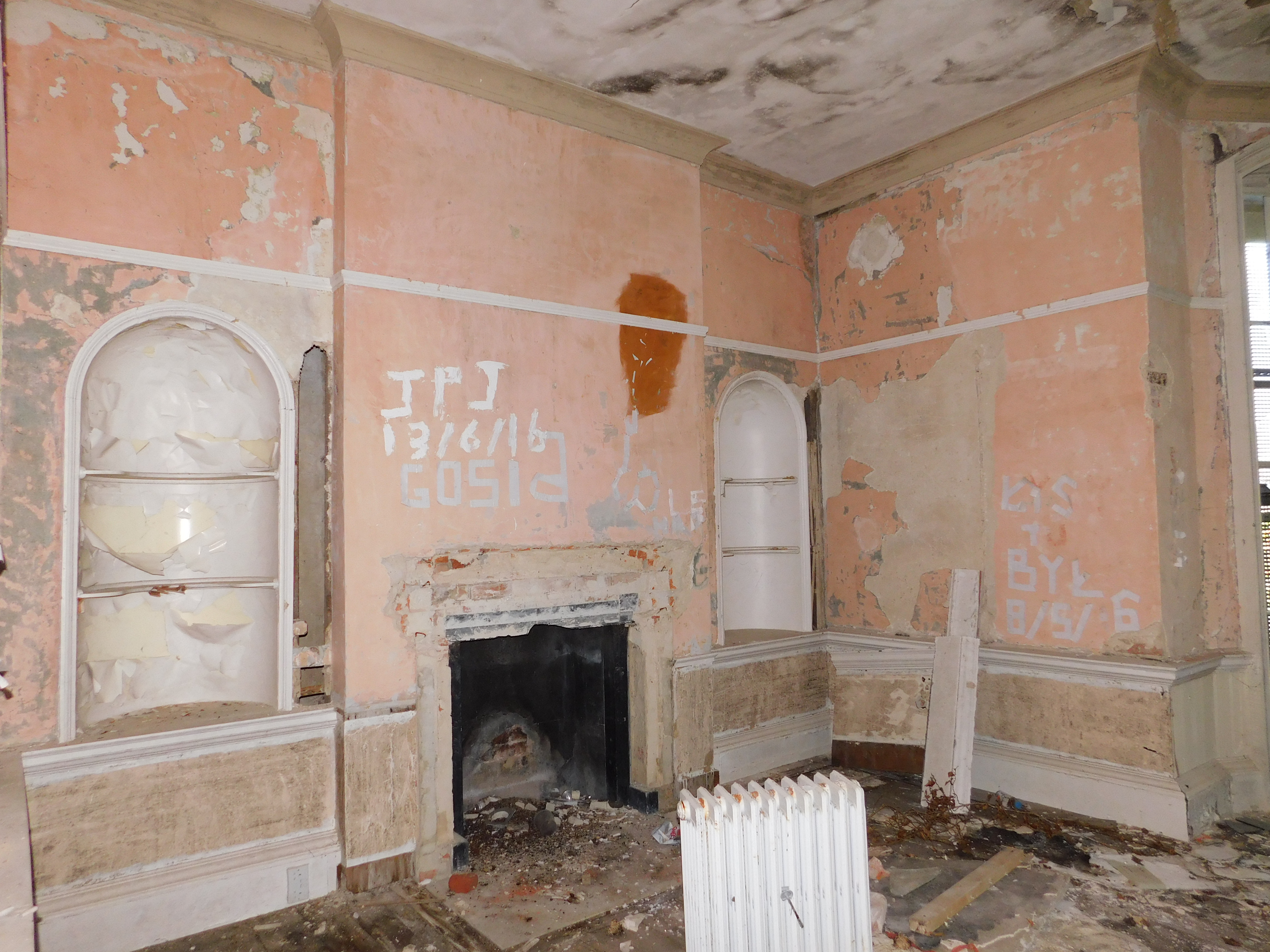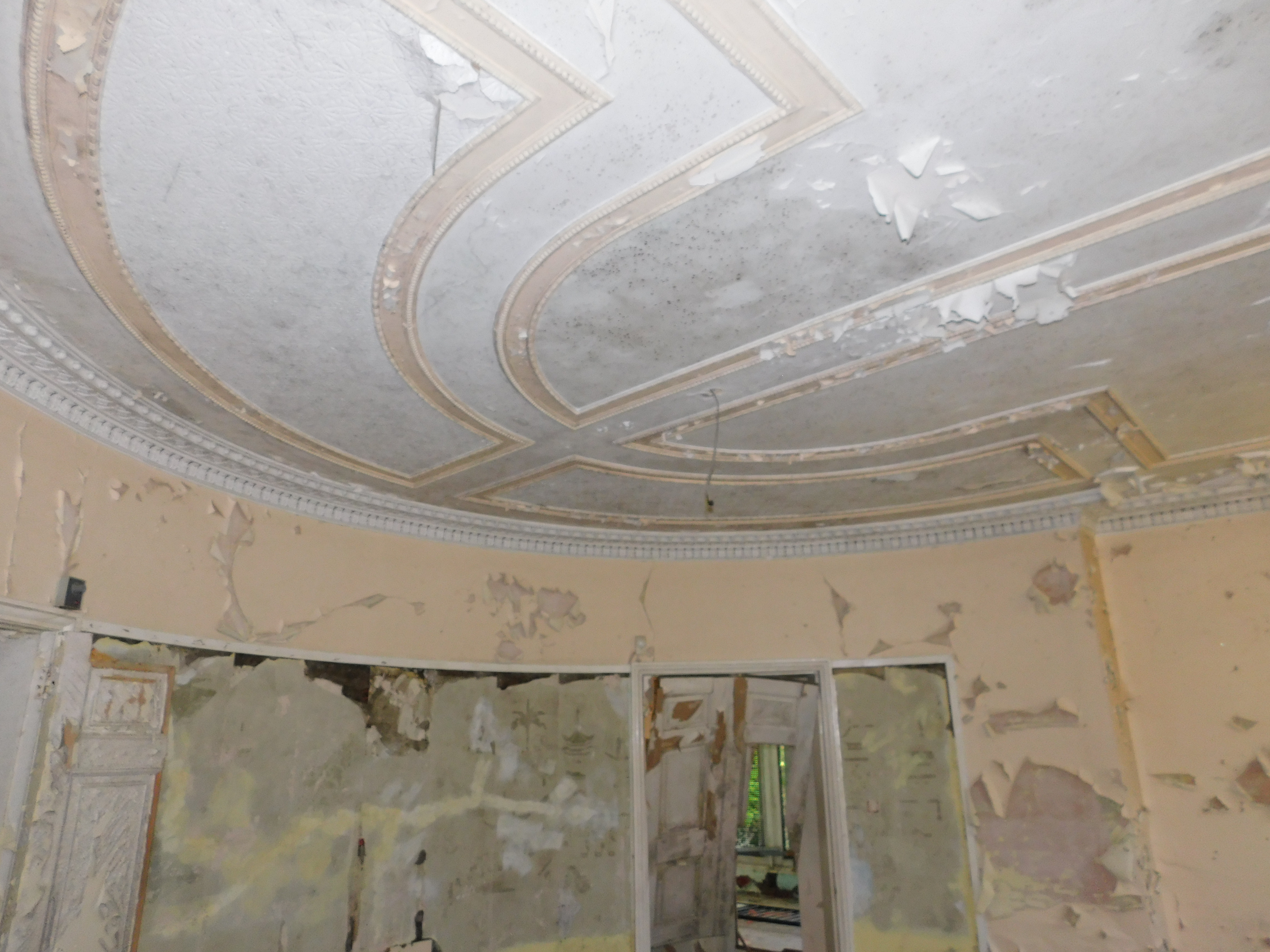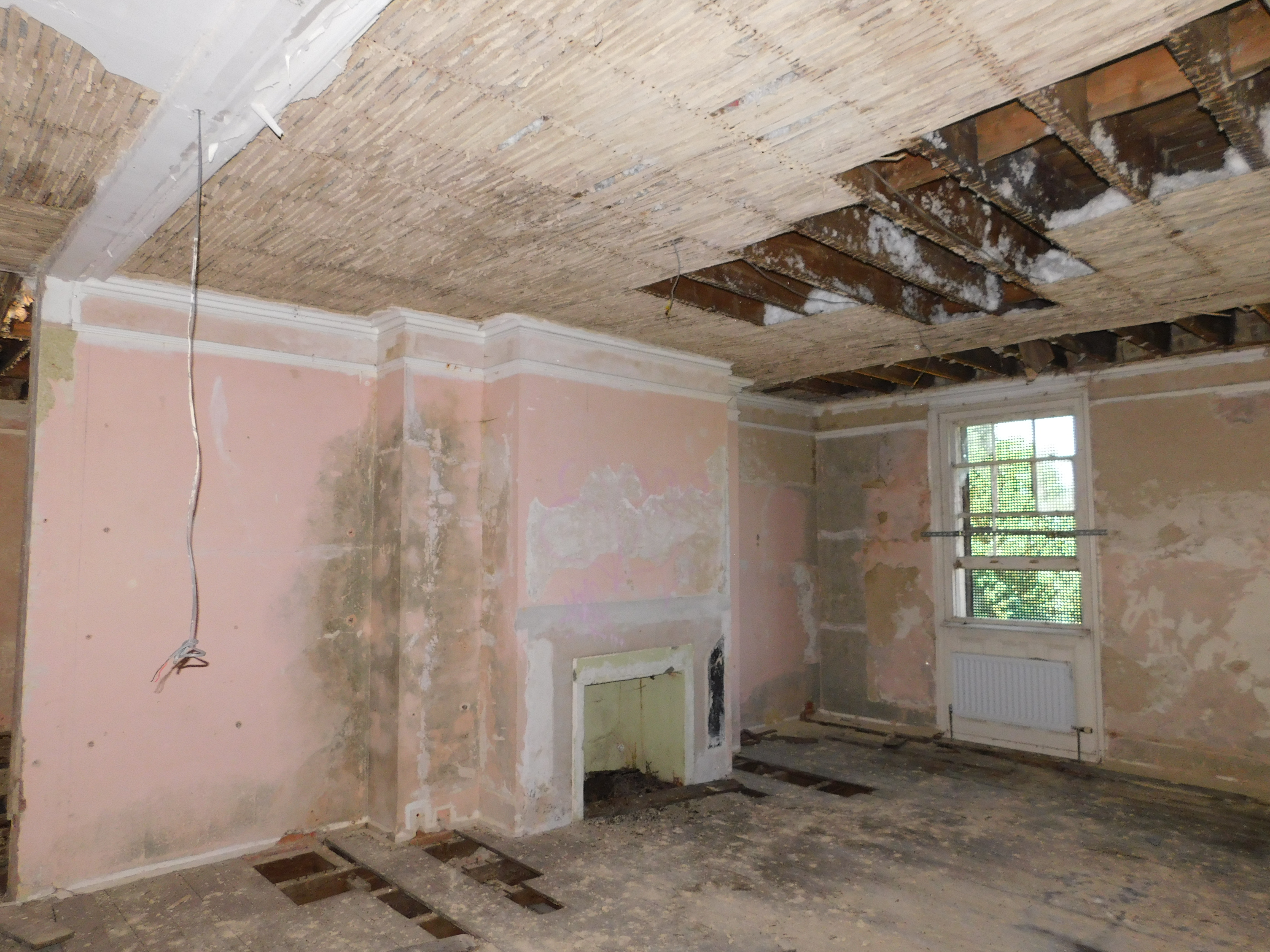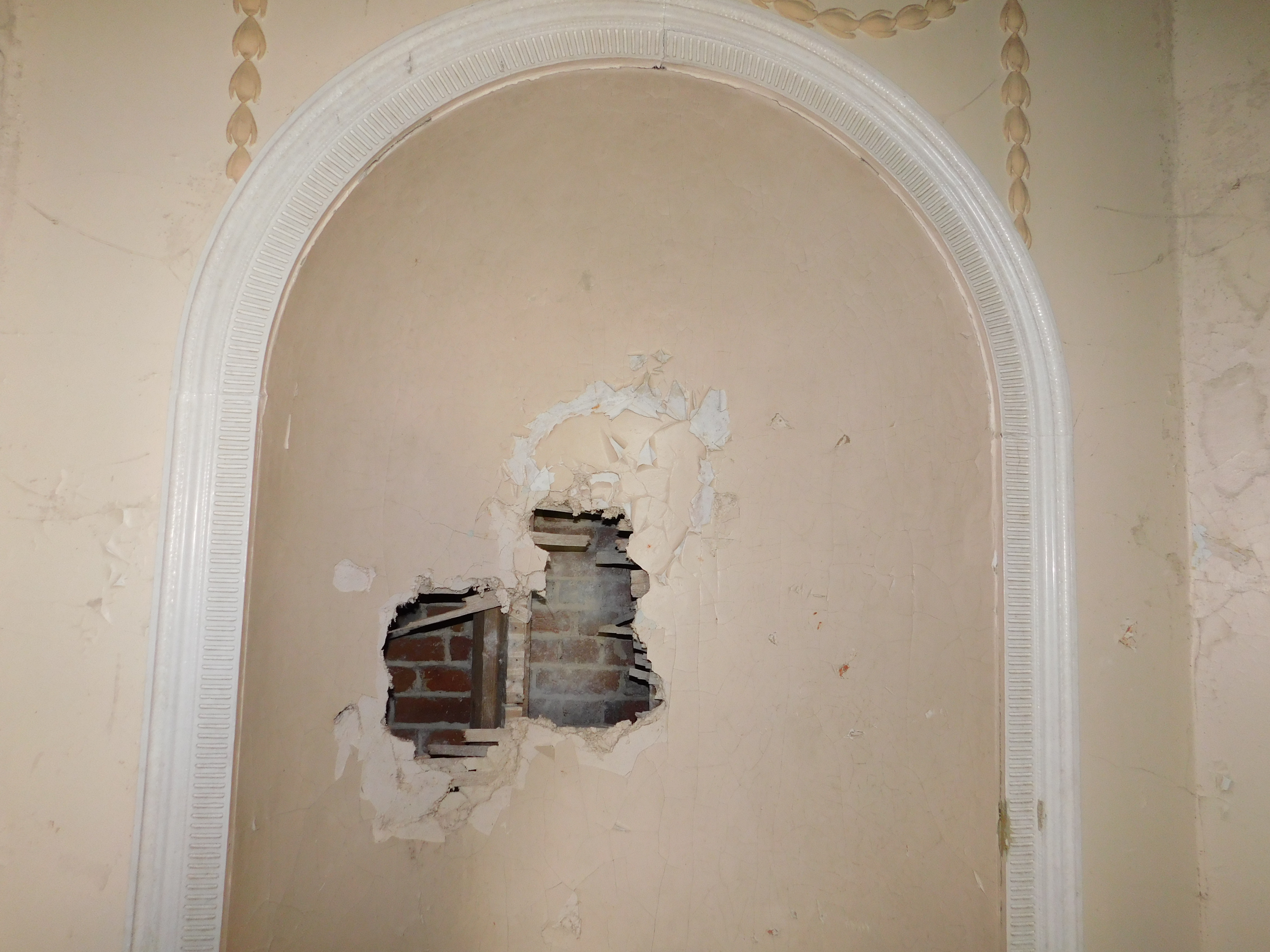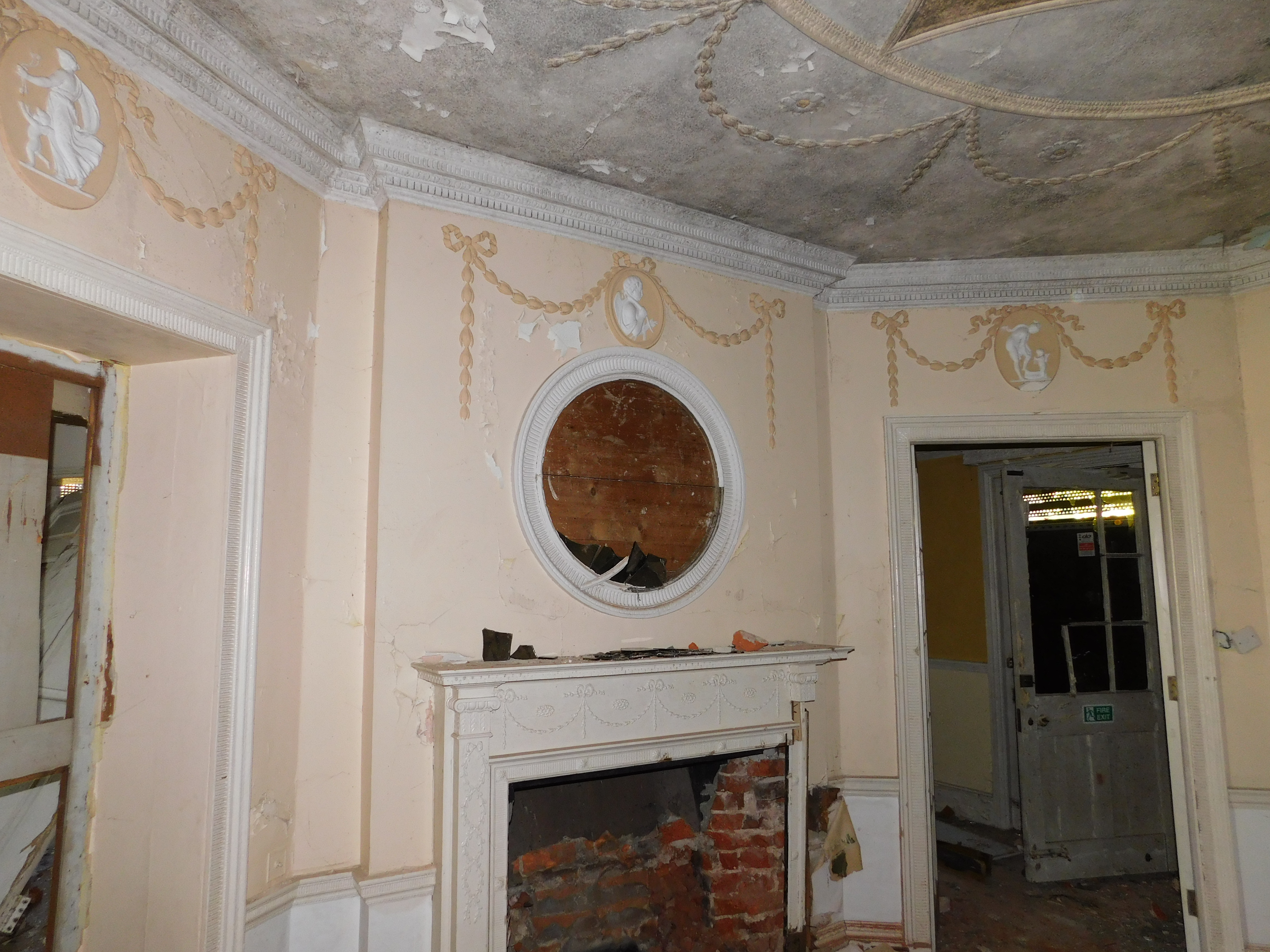 This was a nice and easy explore with easy access into the site yet slightly disappointing as a lot of the nice features within the house (such as the fireplaces) have been ripped out and stolen. It’s a great shame as those would have been rather photogenic. Having said that, there are some interesting features still left – some nice pargetted ceilings, a surviving marble fireplace, Ionic columns, some stained glass (likely gone now) and a rather lovely vista down towards the Thames. The house is… a confusing place to say the least!! The layout is very evident that it was added to numerous times – short flights of stairs branching off here and there, windows into rooms, blocked up doors etc.
