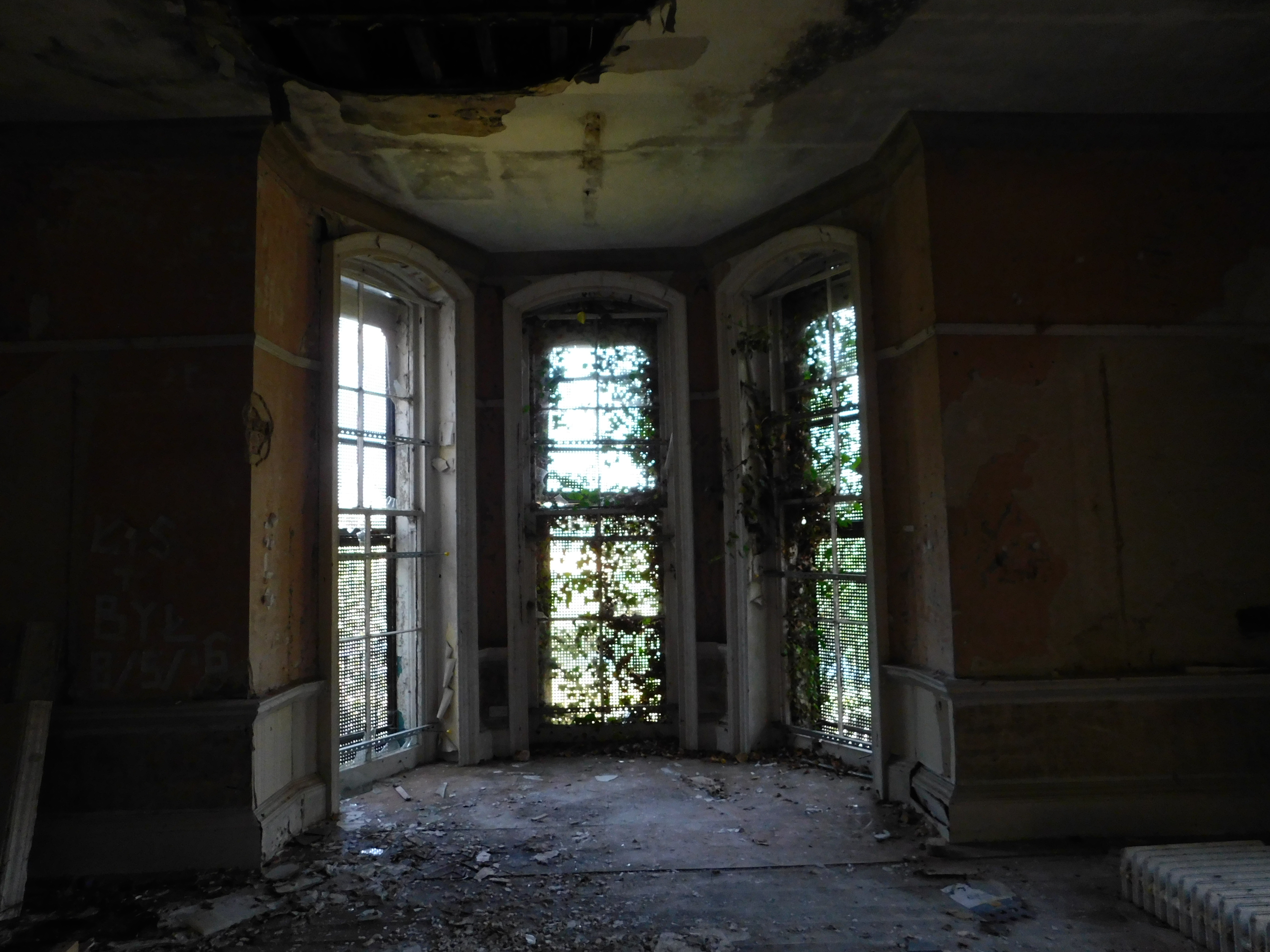 The Grotto is a large 18th century country house on the banks of the River Thames near Pangbourne in Berkshire. It was extended a few times in the mid-19th century and in the 20th century. It was abandoned in 2011 (as far as I know) after serving as the headquarters of ILAM. It is now partly sealed with SitexOrbis steel sheeting but its “popularity” with the local teenagers means that whenever it is sealed, it is usually unsealed within a week. It was destroyed by fire in 2021.