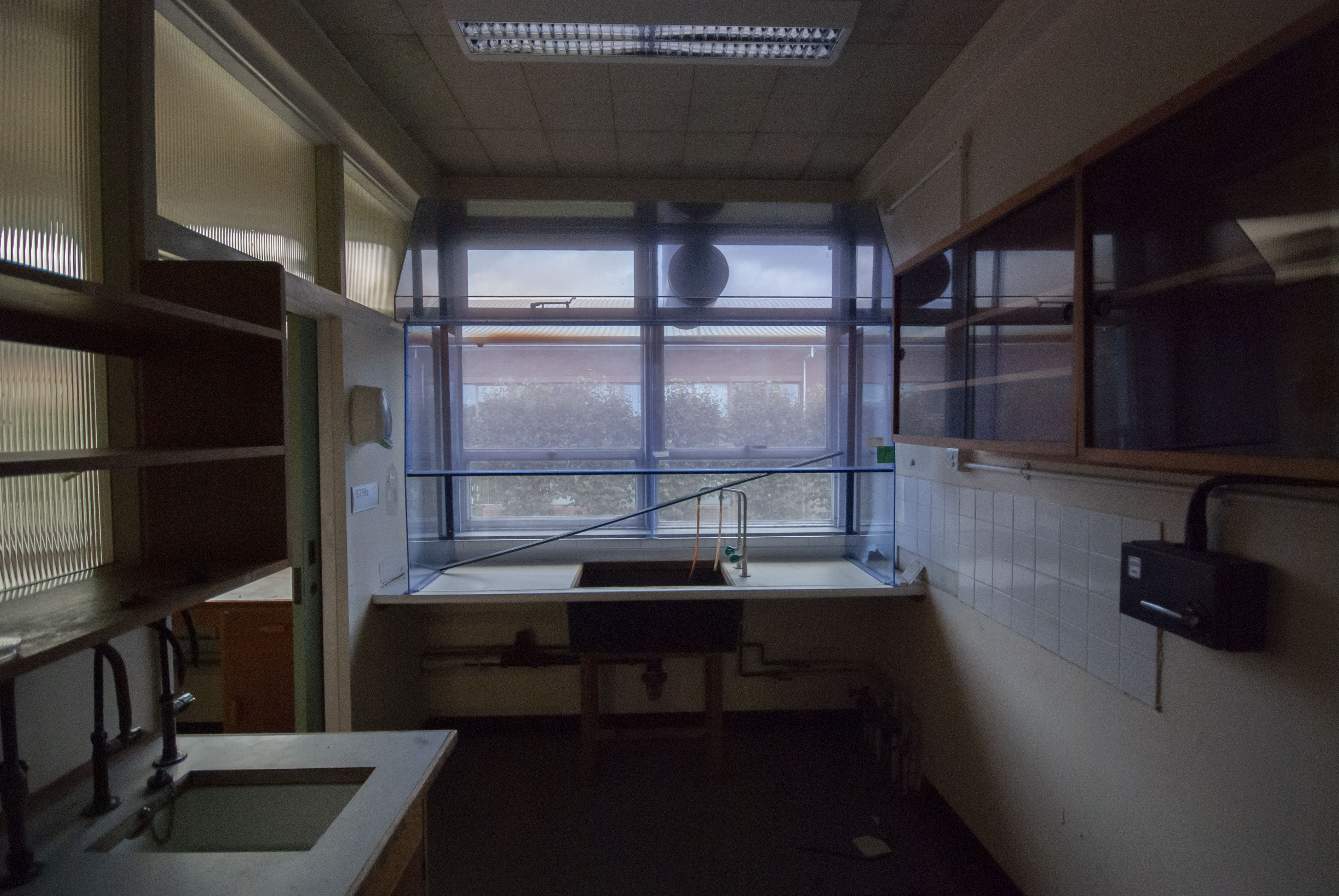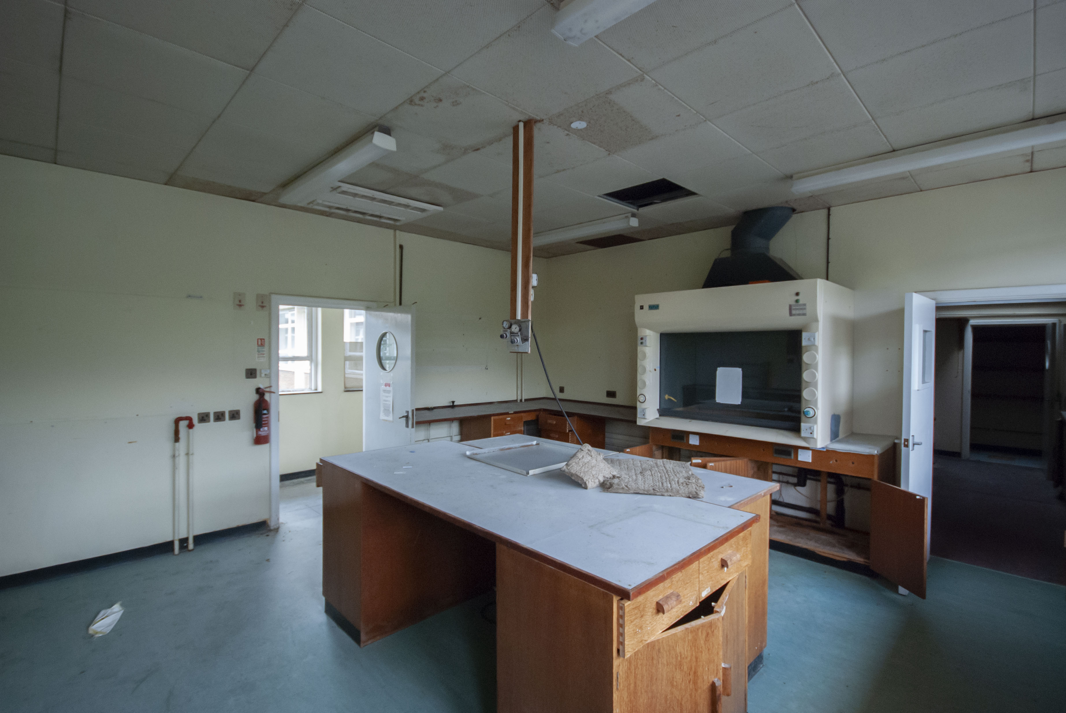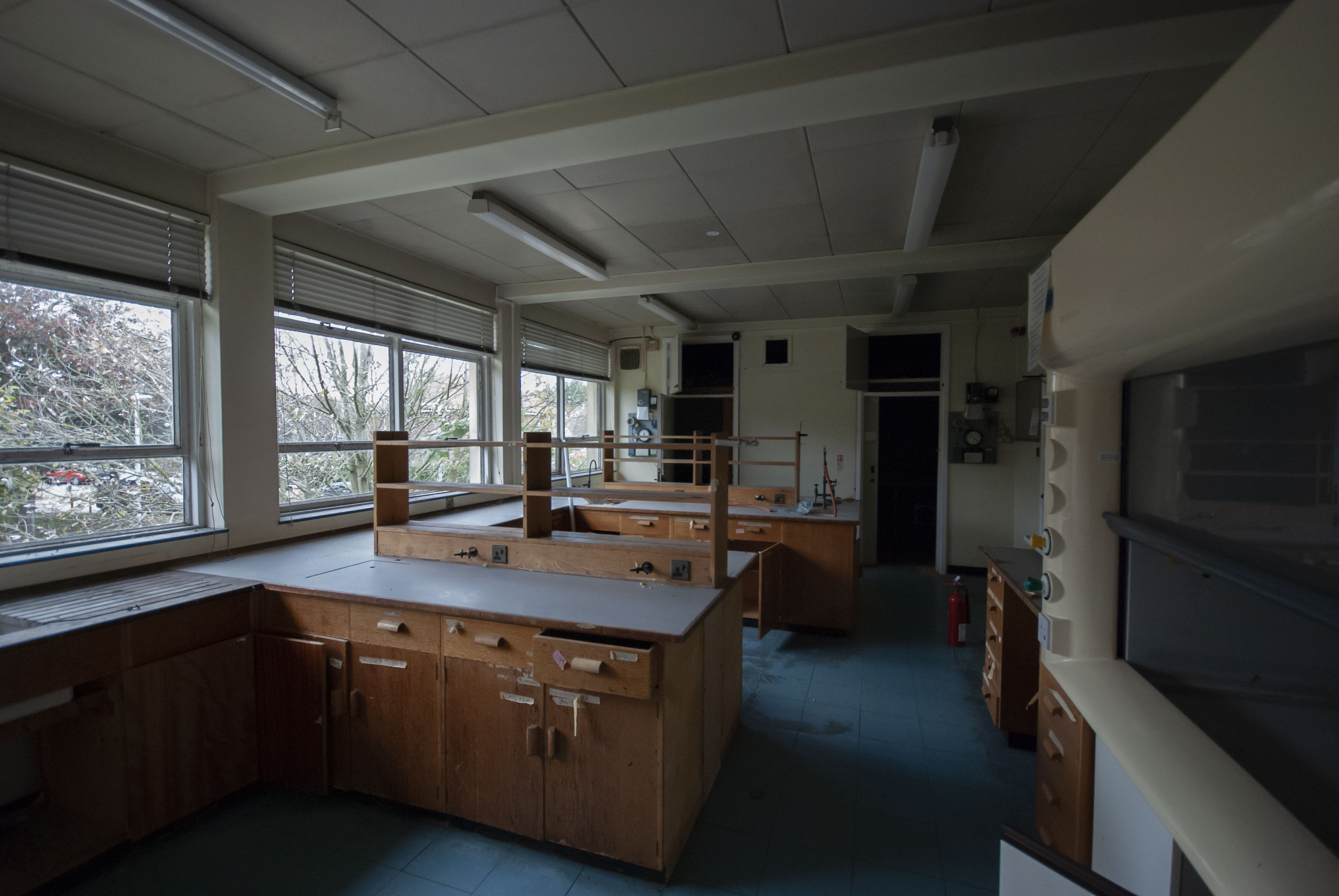 This building makes up a small cluster of derelict places in a small village. It is a former laboratory complex of a college, with many old labs left to rot. There is not much history about this place whatsoever and I can only hazard a guess at how old the buildings are – looking at the architecture, I was say either late 1960s or early to mid 1970s.